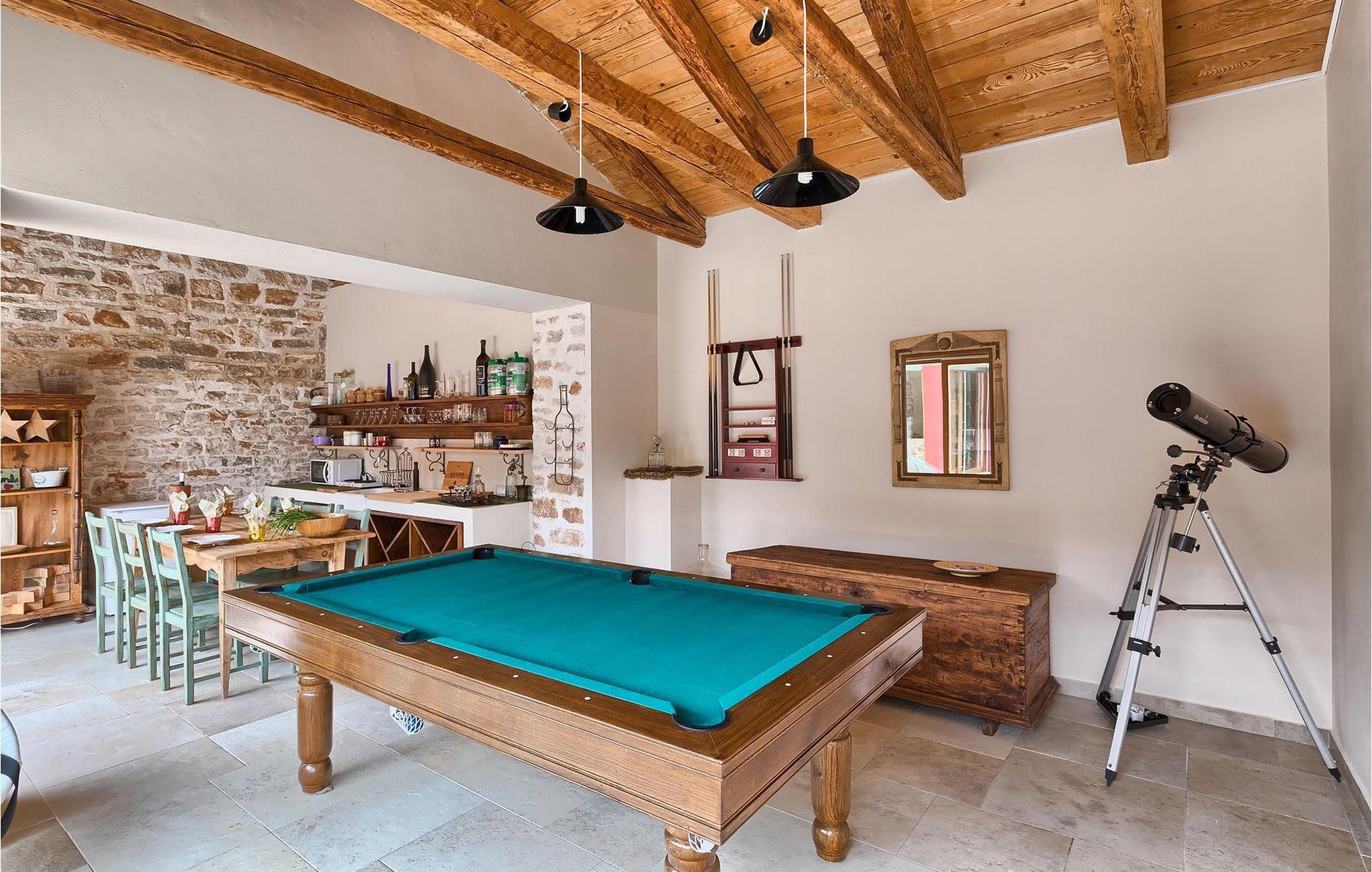 Denne vakkert innredede villaen i nærheten av Porec vil ta pusten fra deg med sitt elegante interiør og eksteriør. Det første du vil legge merke til er det store bassenget som ligger midt i den velstelte hagen. Her kan barna tilbringe tiden i frisk luft, leke og ha det gøy.