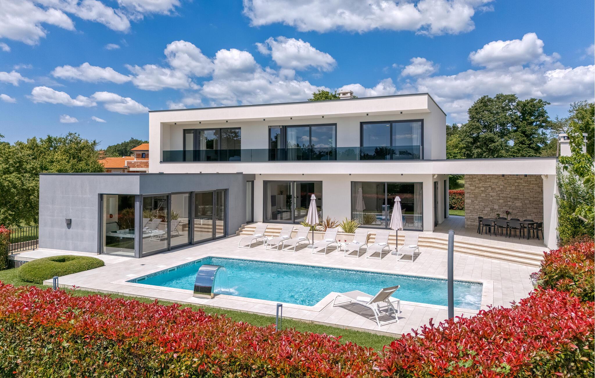 Hvis du er på utkikk etter en moderne luksusvilla som oppfyller alle dine ønsker, trenger du ikke lete lenger - vi har akkurat det du trenger, og den heter Villa Blanka! Denne fantastiske nye villaen ligger like utenfor Kringa, omgitt av fredelig, uberørt natur i en liten landsby i Istria. Villaen har en stor, velstelt hage med et vakkert, innbydende basseng der du kan nyte solen dag etter dag. Du har også tilgang til en overbygd utendørsterrasse og en gassgrill - her kan du tilberede deilige måltider og nyte dem utendørs på varme sommerkvelder!
