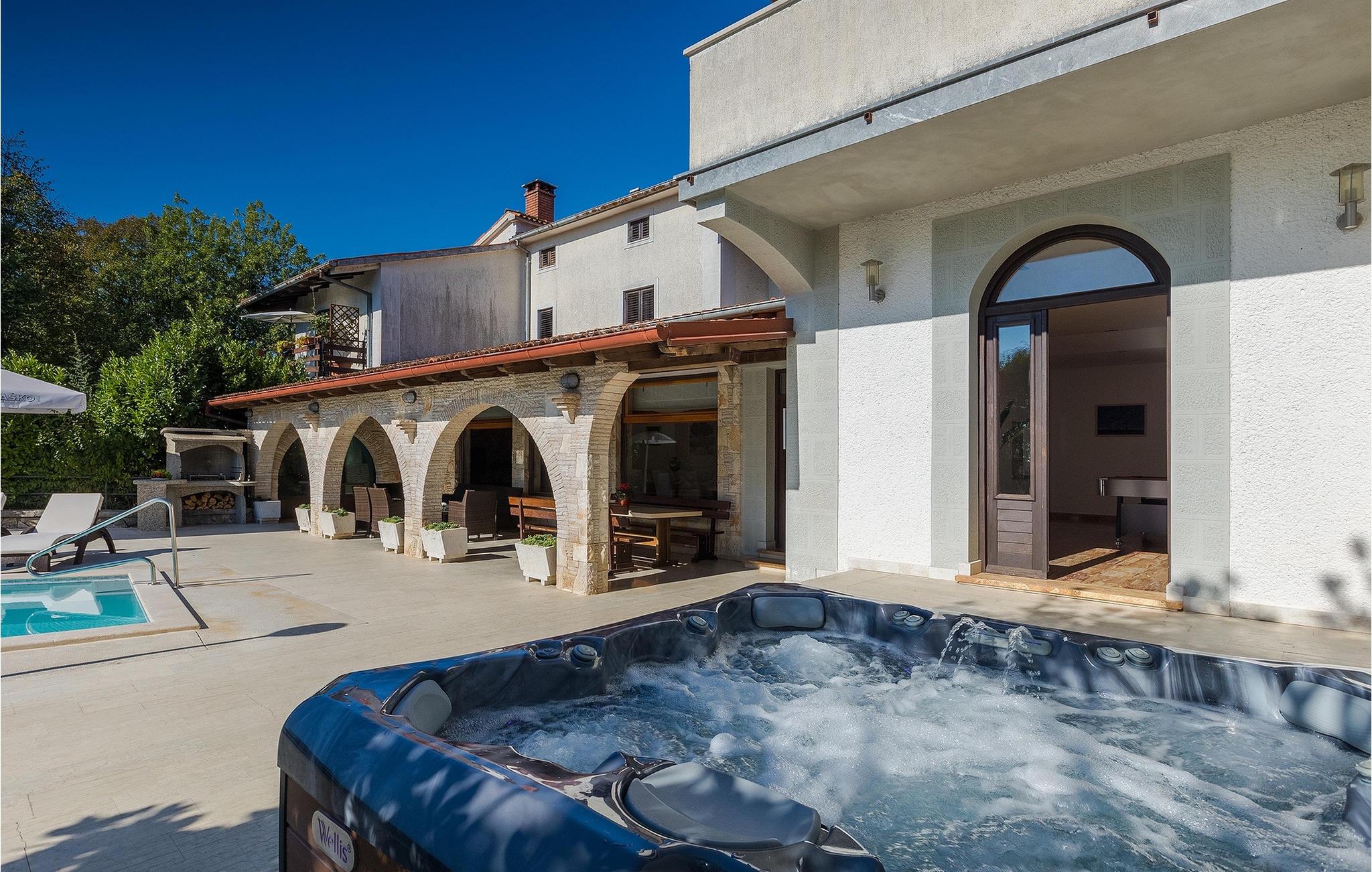 Den vakre Villa Casa Travertina ligger i nærheten av byen Tinjan i det sentrale Istria, med utsikt over den uberørte naturen i Limdalen. Denne romslige villaen er et ideelt reisemål for en avslappende ferie på Istria-halvøya. Villa Casa Travertina har plass til opptil 10 personer fordelt på 5 soverom, alle med eget bad. Interiøret i villaen utstråler en leken eleganse som skyldes samspillet mellom varme farger, nøye utvalgte kunstverk og en følelse av romslighet. Første etasje består av en badstue, et treningsstudio, et bad, et biljardrom, en vakker stue med spiseplass, minibar, et fullt utstyrt kjøkken med alt du trenger for å tilberede deilige måltider til familie og venner, og et soverom med eget bad. I andre etasje er det 4 soverom, og alle har eget bad. Husets indre åpner seg mot en stor veranda som rommer uteservering og grillplass, en stue og et luksuriøst boblebad for 7 personer med tilhørende solterrasse rundt saltvannsbassenget. Atmosfæren forsterkes av en stor hage der det vokser forskjellige treslag og typiske middelhavsurter. Villa Casa Travertina egner seg både til en ekte hedonistisk ferie og til en aktiv ferie der du kan utforske de vakre omgivelsene.