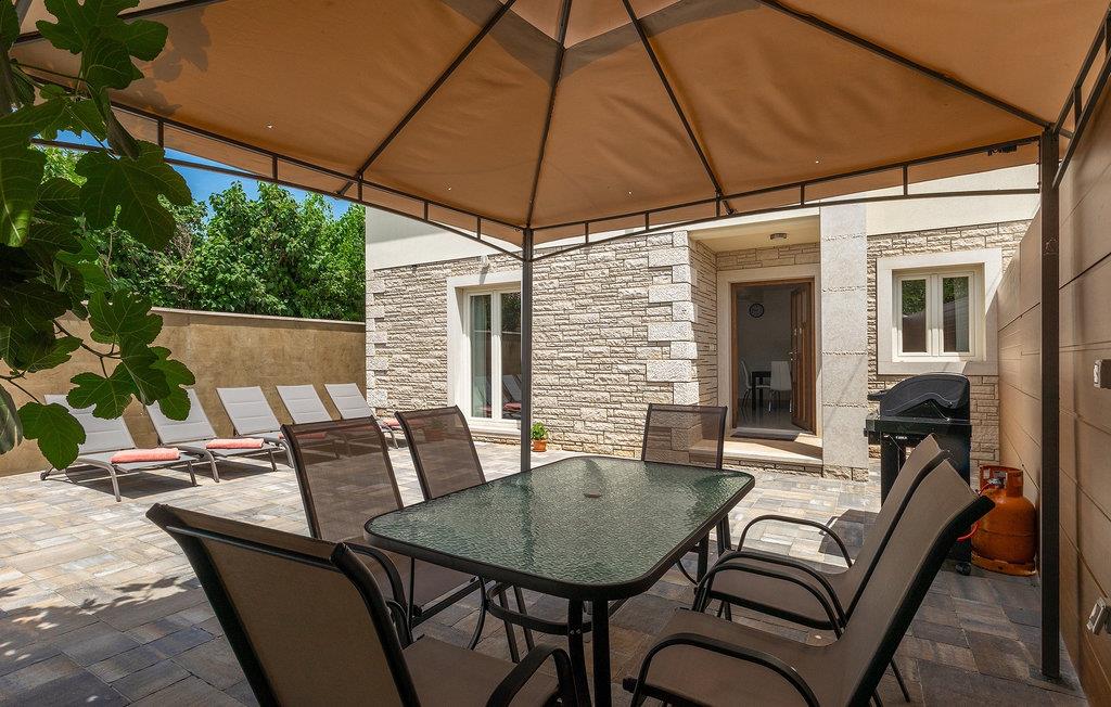 Villa Leni Kringa ligger i den sentrale delen av Istria, i nærheten av Tinjan og Pazin, samt i nærheten av Pore. Villaen tilbyr fred og privatliv for opptil 5 personer som kan tilbringe tiden sin her og nyte det unike istriske landskapet. Husets uteområde består av en stor terrasse hvor du kan tilberede tradisjonelle istriske retter på grillen, et svømmebasseng som gir forfriskning i sommertemperaturer og solsenger hvor du kan slappe av og fange solstrålene. Fra terrassen har du direkte tilgang til den indre delen av huset. I første etasje av den fullt klimatiserte villaen er det en romslig stue med en koselig sofa og TV, en spiseplass og et fullt utstyrt kjøkken. Trappen fører til øverste etasje, hvor det er 3 komfortable soverom og et bad med dusjkabinett. To av rommene har enkeltsenger, og det er også et stort rom med dobbeltseng. Bestill Villa Leni Kringa og nyt ferien med privat basseng sammen med dine kjære! Villa Leni Kringa ligger sentralt i Istria, i nærheten av byene Porec og Pazin. Byen Rovinj ligger også i umiddelbar nærhet. Sentrale Istria er kjent for sine små, attraktive og middelhavsnære byer. I nabolaget Kringa finnes det utmerkede restauranter, kafeer, vinbutikker og lokale butikker. Dette sjarmerende og fredelige området er ikke bare kjent for sine historiske og kulturelle severdigheter, men også for sitt utmerkede og deilige istriske kjøkken. Det finnes mange sykkel- og turstier i området, og de berømte strendene langs den vakre kystlinjen ligger bare en kort kjøretur unna gjennom det idylliske landskapet. For moro og latter på familieferien er adrenalinparken Kringa, som ligger rett ved siden av villaen, det ideelle stedet!