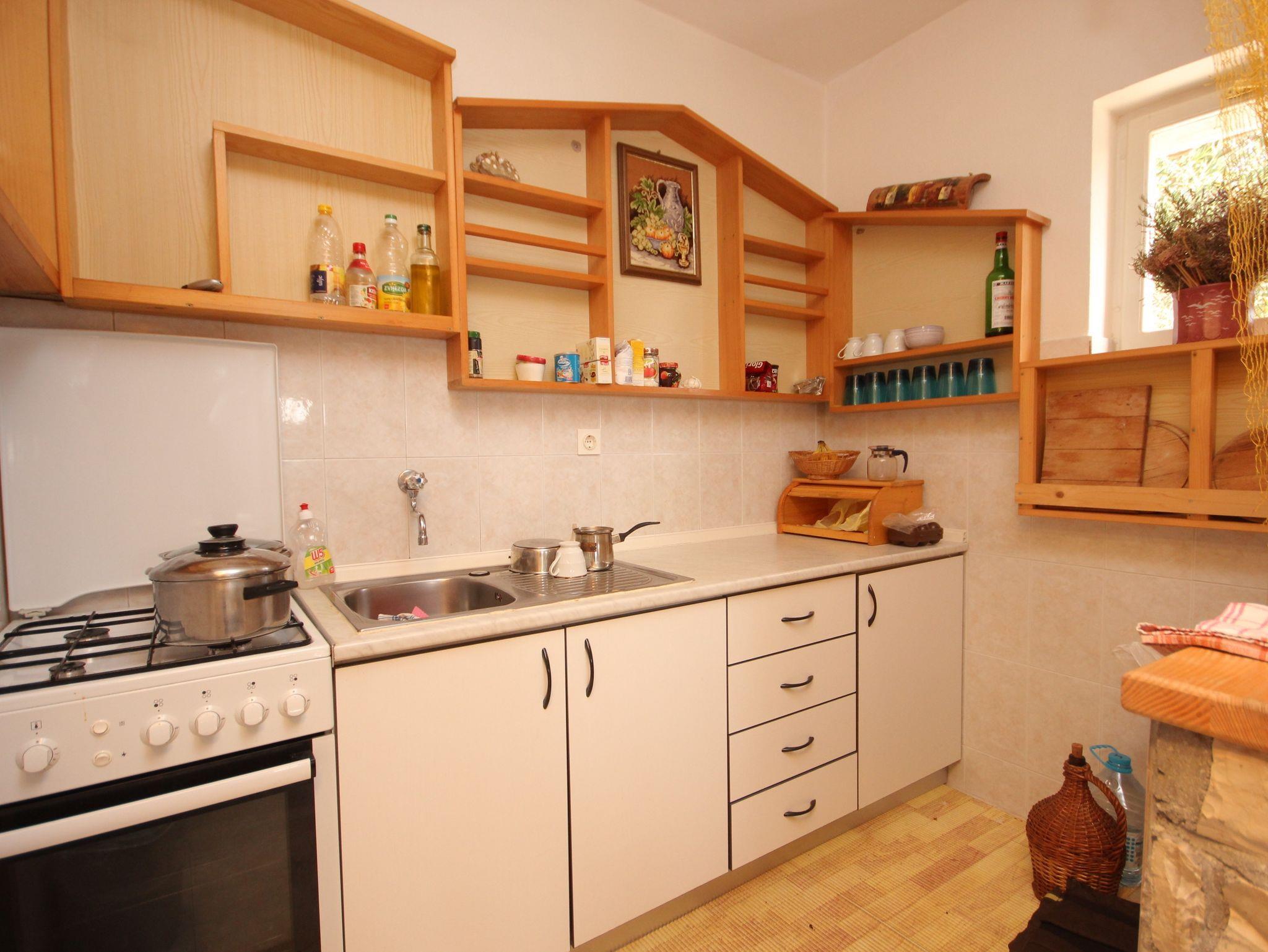 Haus bietet Platz für 6 Gäste. Die Betten sind in Schlafzimmern, die es 3 gibt, innerhalb einer Gesamtfläche von 78m2, angeordnet. Die Gäste haben eine eigene Terrasse zur Verfügung, auf der sie in warmen Sommernächten genießen können. Das Haus bietet Meerblick. Für vollen Genuss und Entspannung gibt es einen privaten Grill für Gäste dieser Unterkunft. In der Unterkunftseinheit besteht die Möglichkeit des Mitbringens von Haustieren gegen Aufpreis. IM PREIS INBEGRIFFEN: Kurtaxe, Endreinigung, Bootsanlegeplatz, Sonnenschirm, Liegestühle. VERBINDLICHE ZUSÄTZLICHE KOSTEN: Aufzahlung für Kurzaufenthalte (prozentualer Zuschlag pro Nächtigungsanzahl: 30% - 1, 20% - 2, 10% - 3). UNVERBINDLICHE ZUSÄTZLICHE KOSTEN: Haustiere (5,00 € pro Nacht), 2 Kinderbettchen (7,00 € Person/Tag). Die Verfügbarkeit zusätzlicher Dienstleistungen in Ihrem reservierten Termin und die Preise derselben (falls nicht aufgeführt) müssen im Voraus überprüft werden. Zusätzliche Dienstleistungen die in der Zahlungsaufforderung nicht aufgeführt sind werden direkt beim Vermieter bezahlt, angenommen der Gast nutzt auch diese.