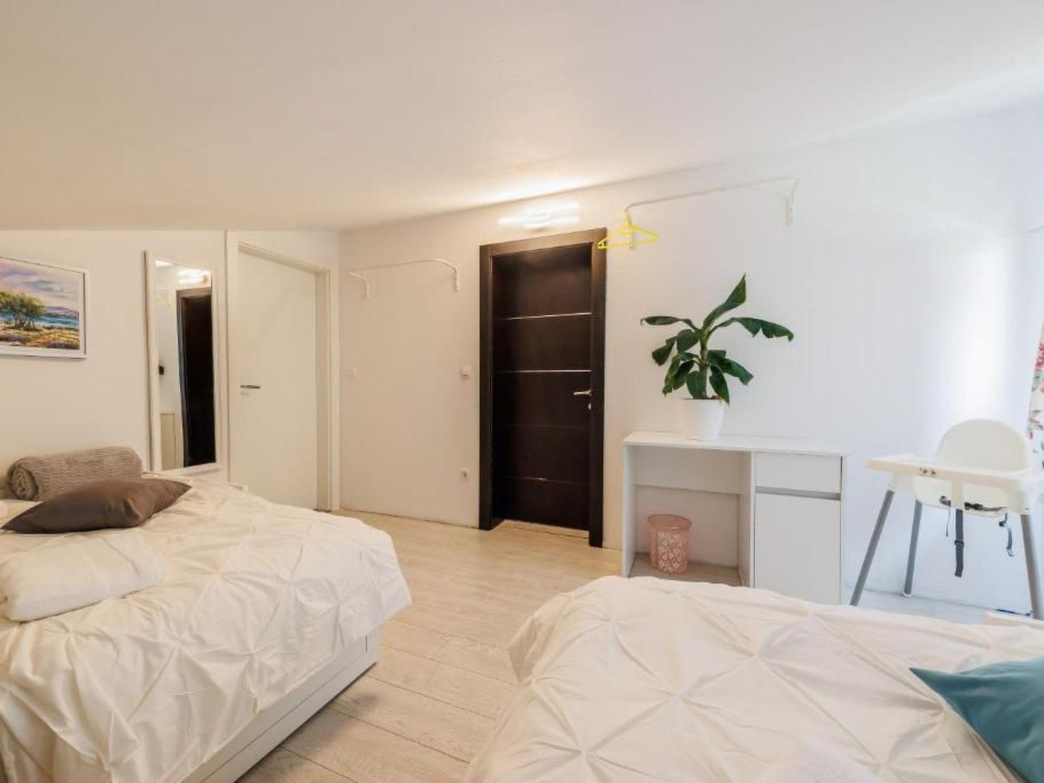 Stepping outside, the apartment boasts not just a terrace but a private roof terrace, offering you an exclusive space to unwind or dine under the stars. The seasonal outdoor swimming pool, shared with other guests, offers a refreshing respite from the warm Dalmatian sun, making it a favorite communal spot. The proximity to both a beach and a dedicated dog beach, each only a short walk away, promises endless fun and relaxation by the sea's edge.