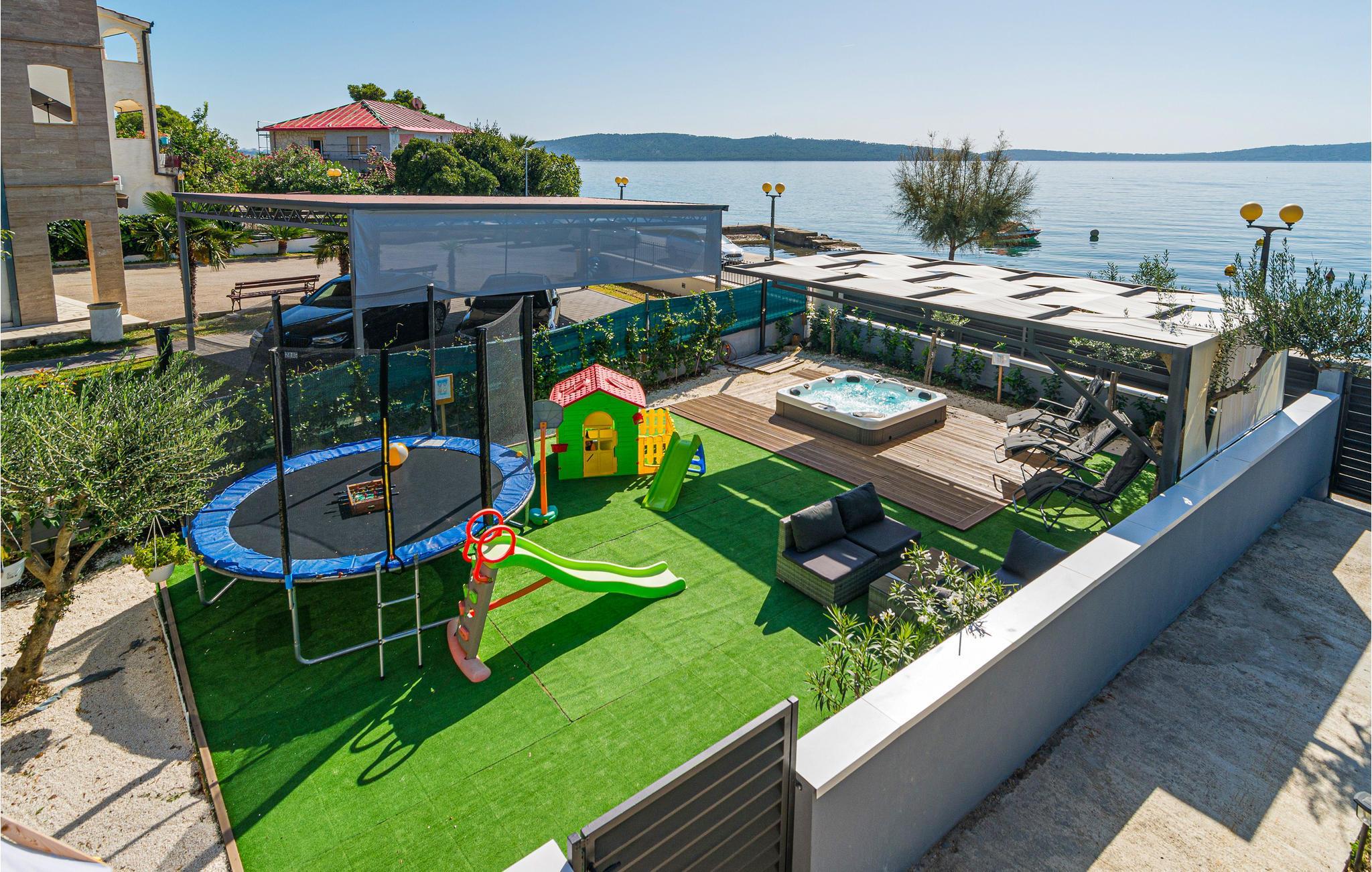 Denne komfortable og romslige ferieleiligheten ligger i Kastel Kambelovac, i nærheten av Trogir. Ankom 1. etasje i leilighetsbygningen og føl deg som hjemme sammen med den store familien. De komfortable og attraktive møblene gir deg alt du trenger for å føle deg hjemme og nyte morgenkaffen på balkongen. Den inngjerdede eiendommen er kun adskilt fra sjøen av en gågate. Nyt lekeplassen, som vil glede barna dine, og slapp av i boblebadet.