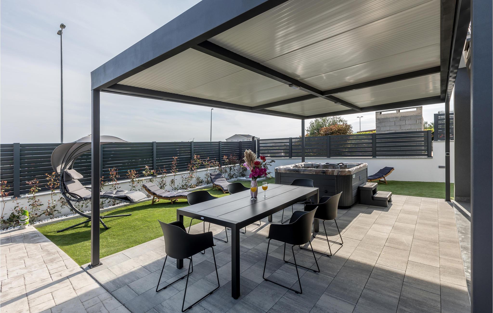 Gled dere til ferien i denne flotte ferieleiligheten. Som familie kan dere føle dere som hjemme i den komfortable innkvarteringen. Hvis du reiser sammen med venner eller storfamilien, kan du bestille flere ferieleiligheter. Møbler og utstyr av høy kvalitet innbyr til avslapping. Den omsorgsfulle innredningen skaper en tiltalende atmosfære. Du kan også glede deg til en privat hage med overbygd terrasse, muret grill og boblebad. Du kan også friske deg opp i utendørsdusjene etter å ha utfordret deg selv i et slag bordtennis. Planlegg aktivitetene for neste dag under grillmiddagene om kvelden.