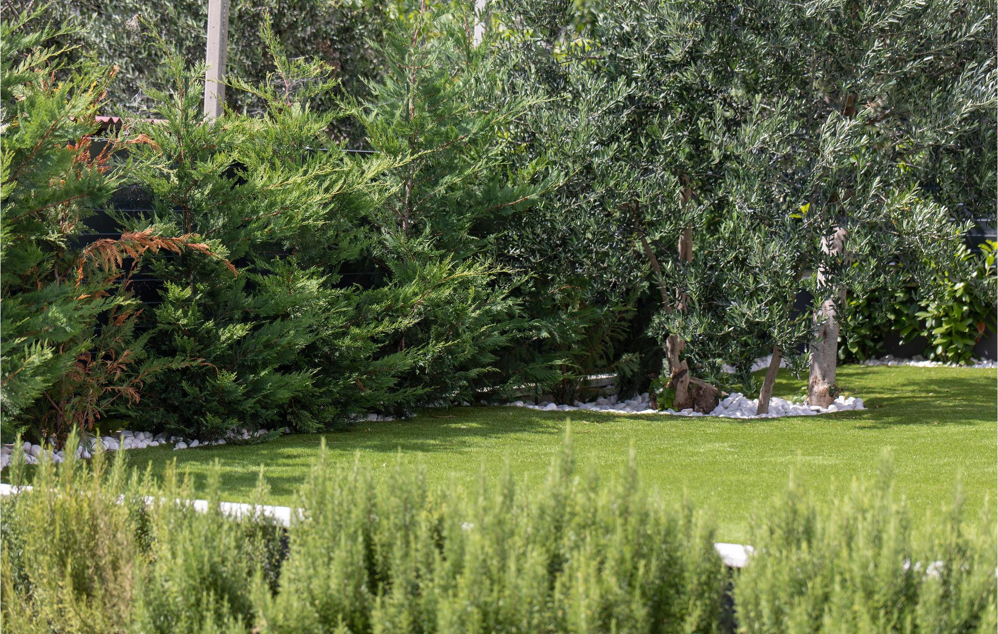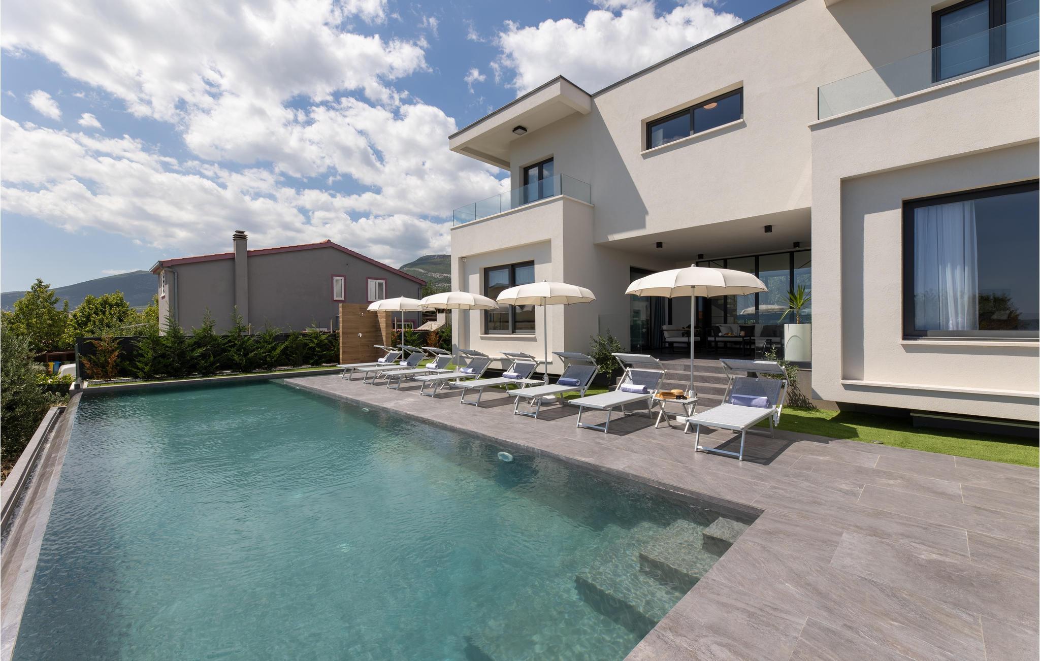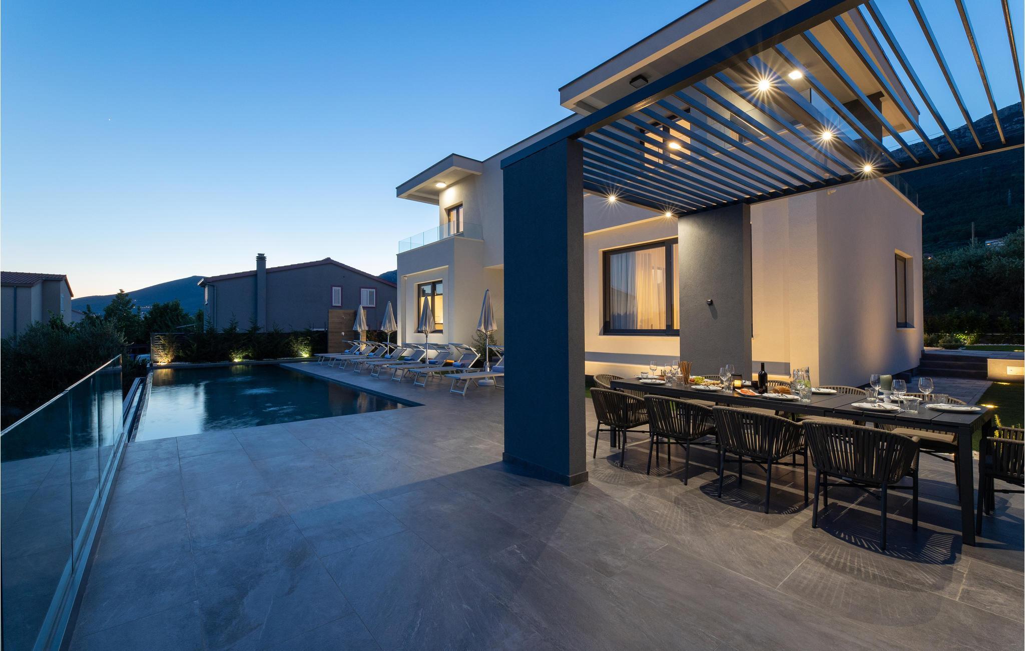 Flere terrasser inviterer deg til å nyte solen og utsikten over den omkringliggende naturen til det fulle. Gå ut så snart du våkner og la blikket vandre over havet. Slapp av i en solstol ved bassenget, og inviter hele familien på en middag under åpen himmel.