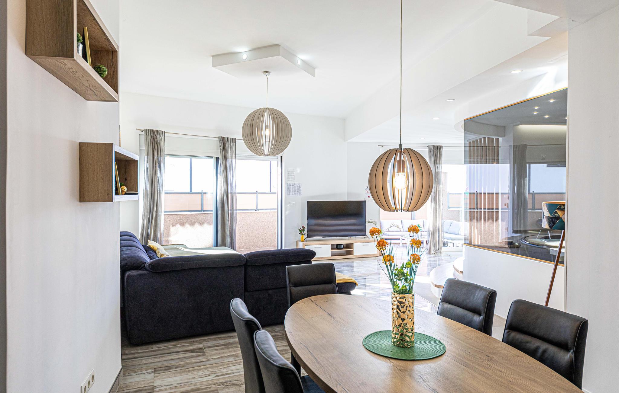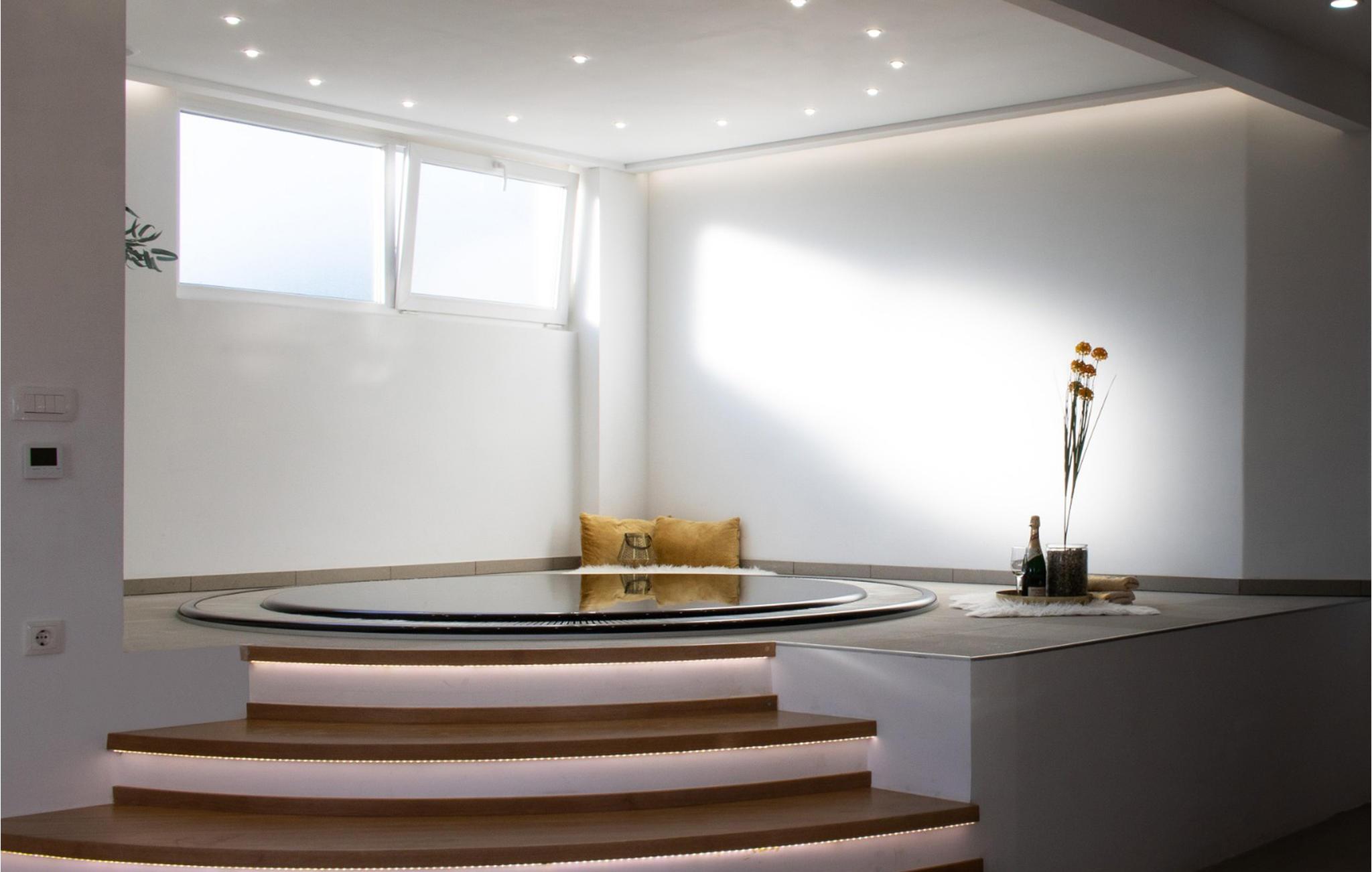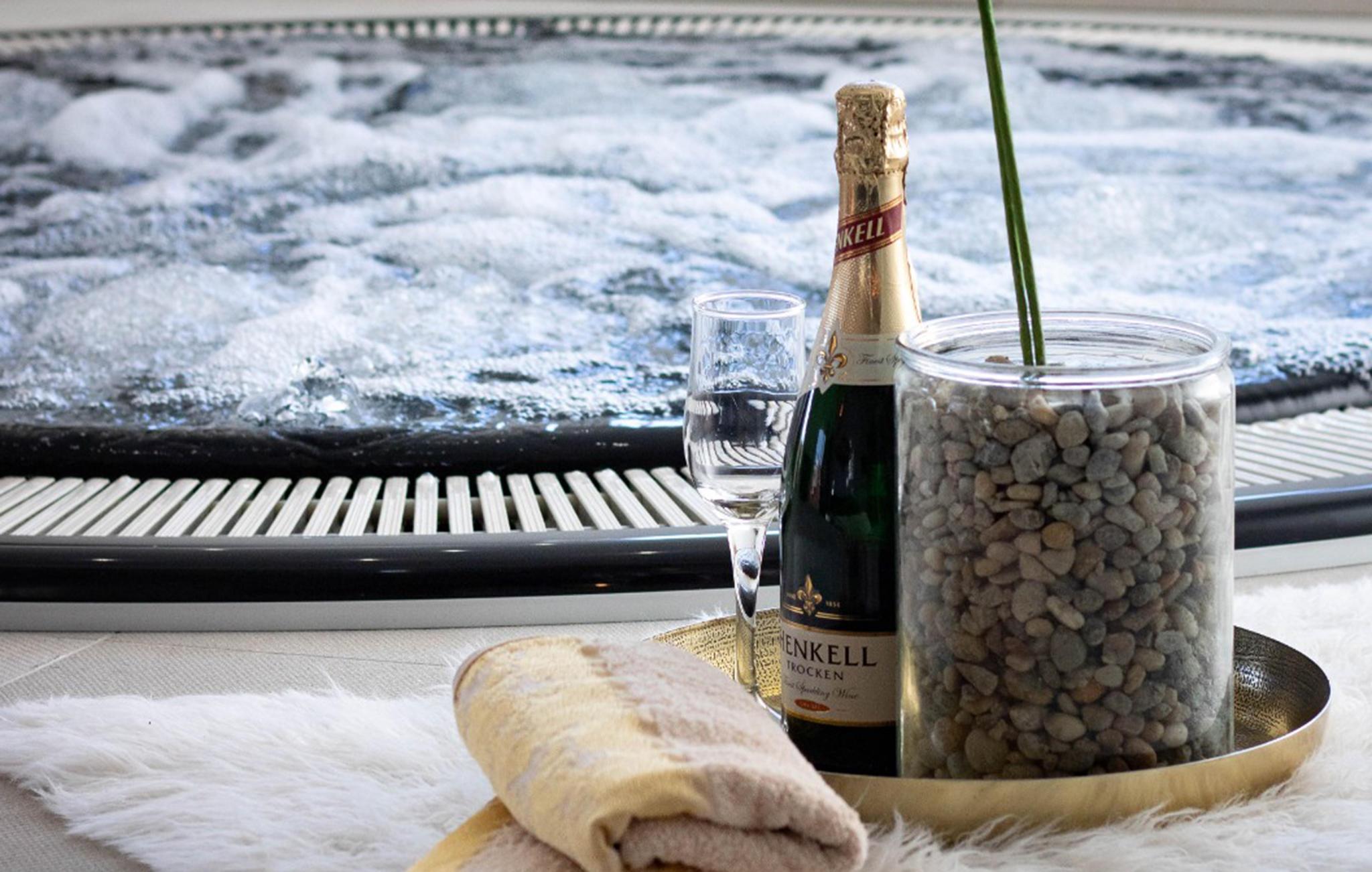 Det komfortable interiøret består av en romslig stue og kjøkken, to soverom og et bad. Høydepunktet her er helt klart boblebadet i stuen, hvor du kan slappe av og flykte fra hverdagens stress.