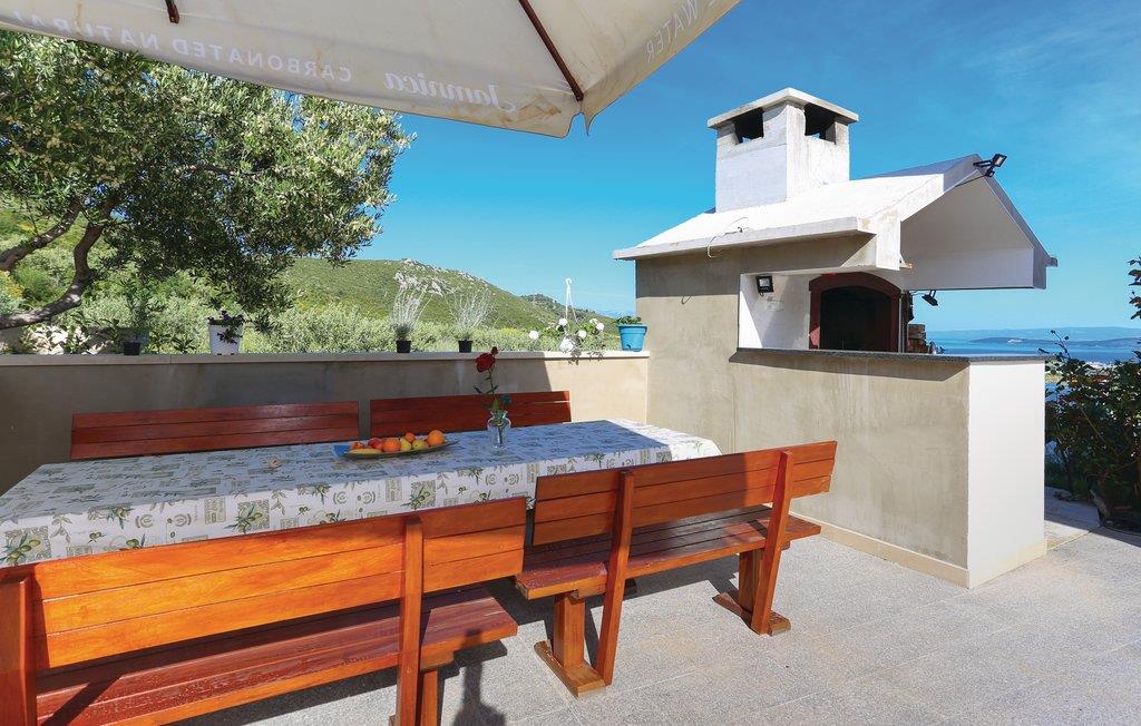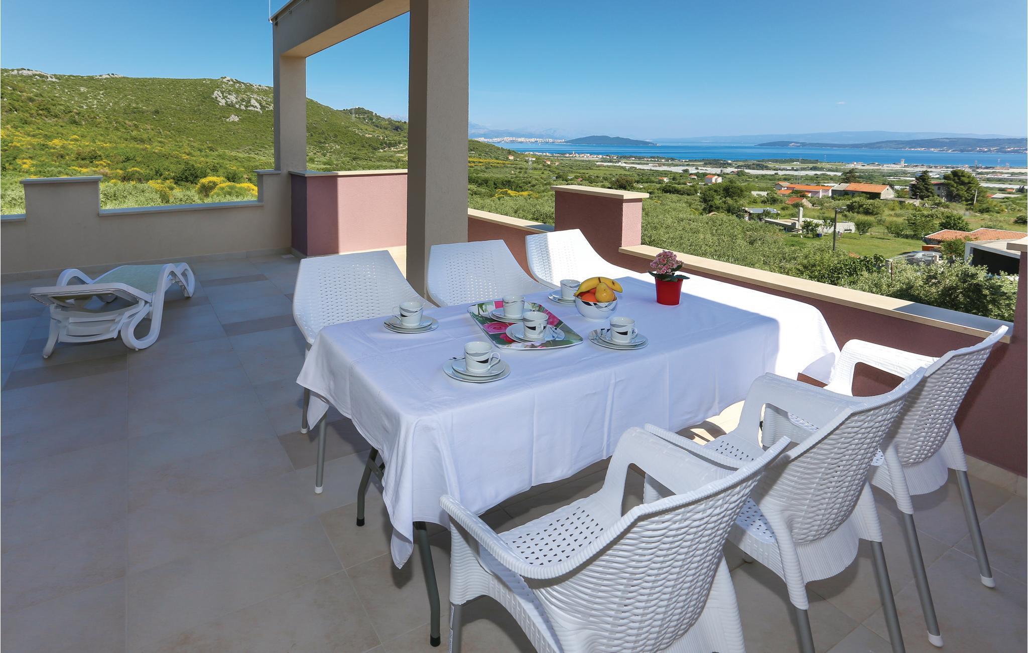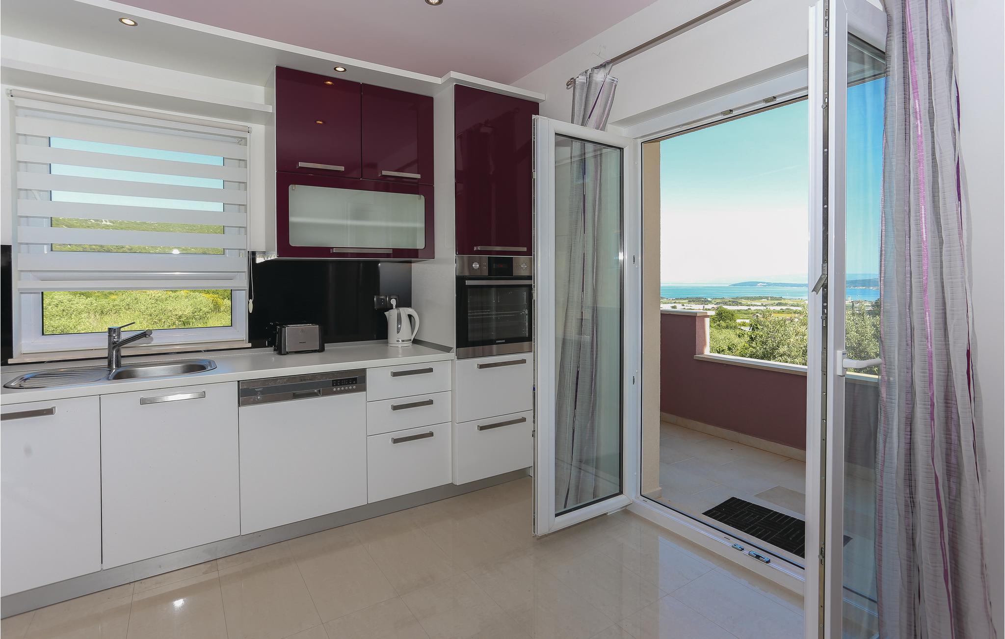 Feriehuset med hydrolysebasseng ligger ca 6 km fra sentrum av Trogir, i området Trogir-Plano. Huset er omgitt av en velholdt hage med mye grønt, det er langt borte fra byens støy og mas og er egnet for en avslappende ferie. De tre oppholdsrommene i huset har separate innganger, den mer romslige enheten ligger i øverste etasje, første etasje deles av to boenheter. På terrassene har du en vakker havutsikt. Verdt å se er den fantastiske byen Trogir, som skylder sin spesielle stil og sjarm til romerne, som satte sitt preg på hvert hjørne. Snirklete smug trekker deg inn i den rike historien og tilbyr kirker, museer, byporter og pittoreske små hus å beundre. Klatre opp i tårnet på St. Laurentius-katedralen og nyt den fantastiske utsikten over byen.
