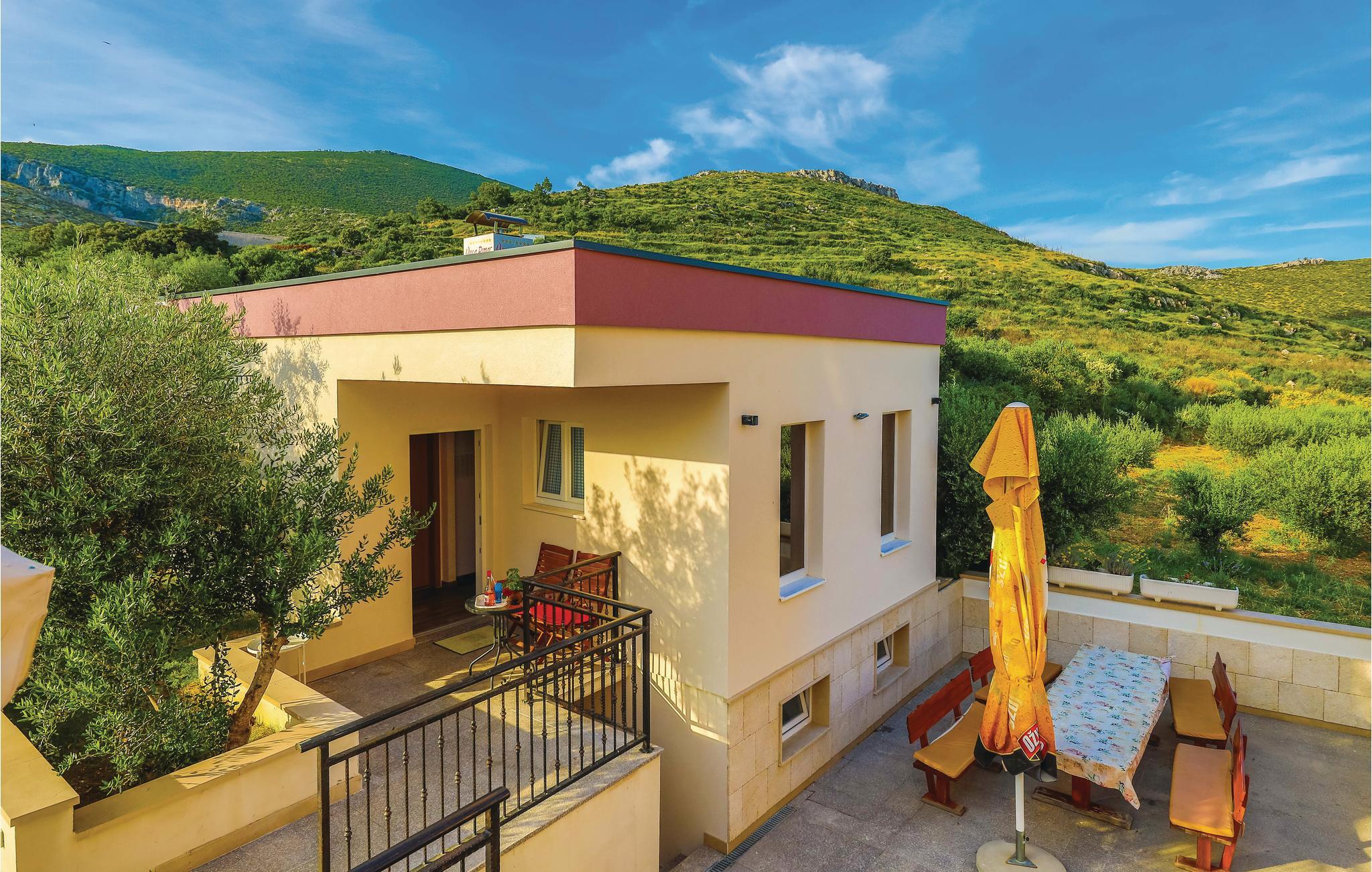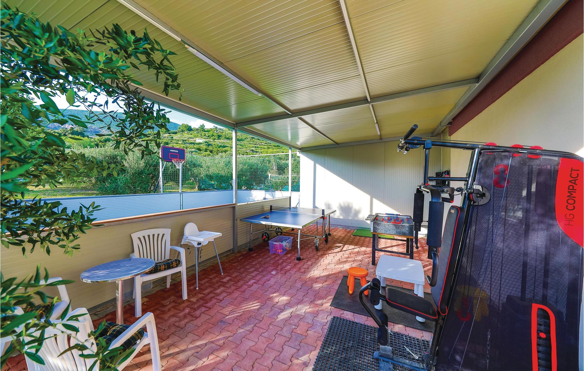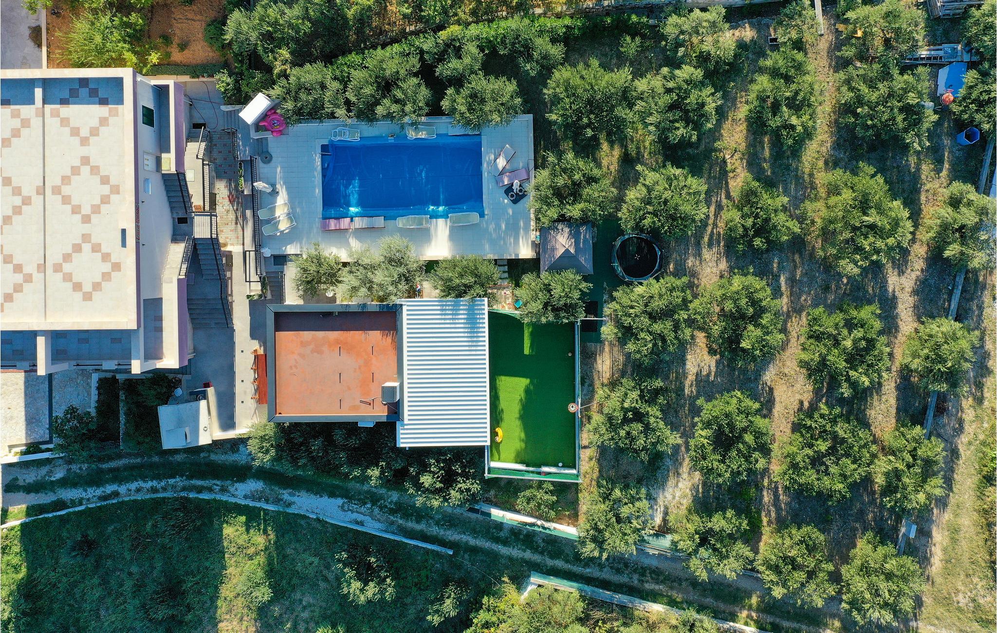 Feriehuset med hydrolysebasseng ligger ca 6 km fra sentrum av Trogir, i området Trogir-Plano. Huset er omgitt av en velholdt hage med mye grønt, det er langt borte fra byens støy og mas og er egnet for en avslappende ferie. De tre oppholdsrommene i huset har separate innganger, den mer romslige enheten ligger i øverste etasje, første etasje deles av to boenheter. På terrassene har du en vakker havutsikt. Verdt å se er den fantastiske byen Trogir, som skylder sin spesielle stil og sjarm til romerne, som satte sitt preg på hvert hjørne. Snirklete smug trekker deg inn i den rike historien og tilbyr kirker, museer, byporter og pittoreske små hus å beundre. Klatre opp i tårnet på St. Laurentius-katedralen og nyt den fantastiske utsikten over byen.