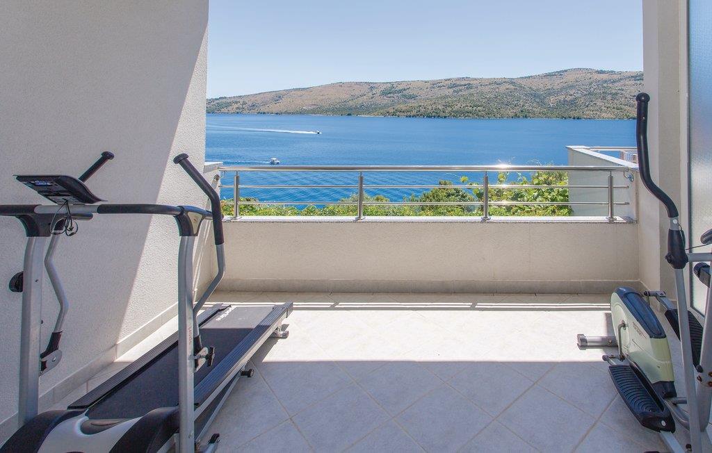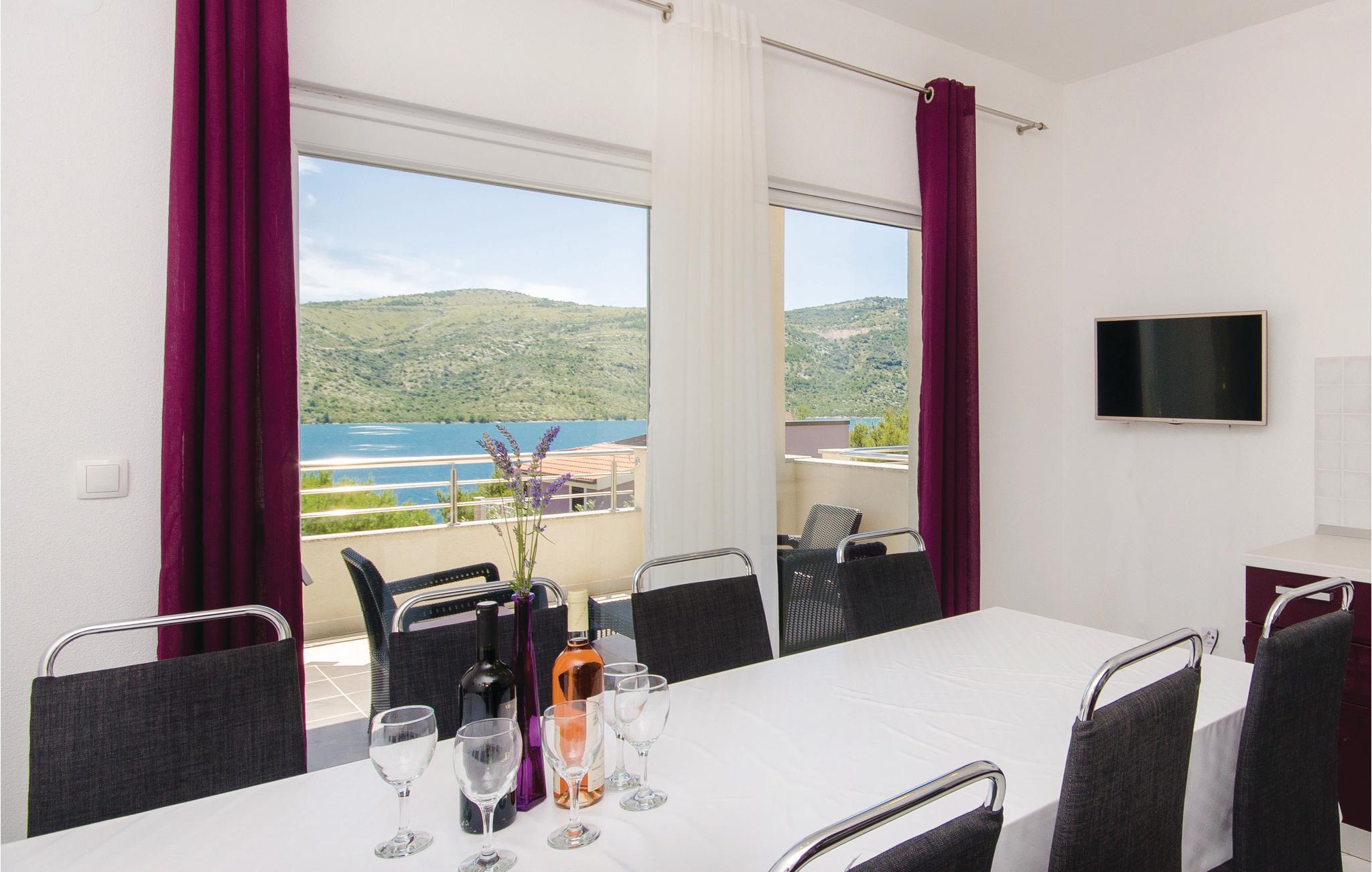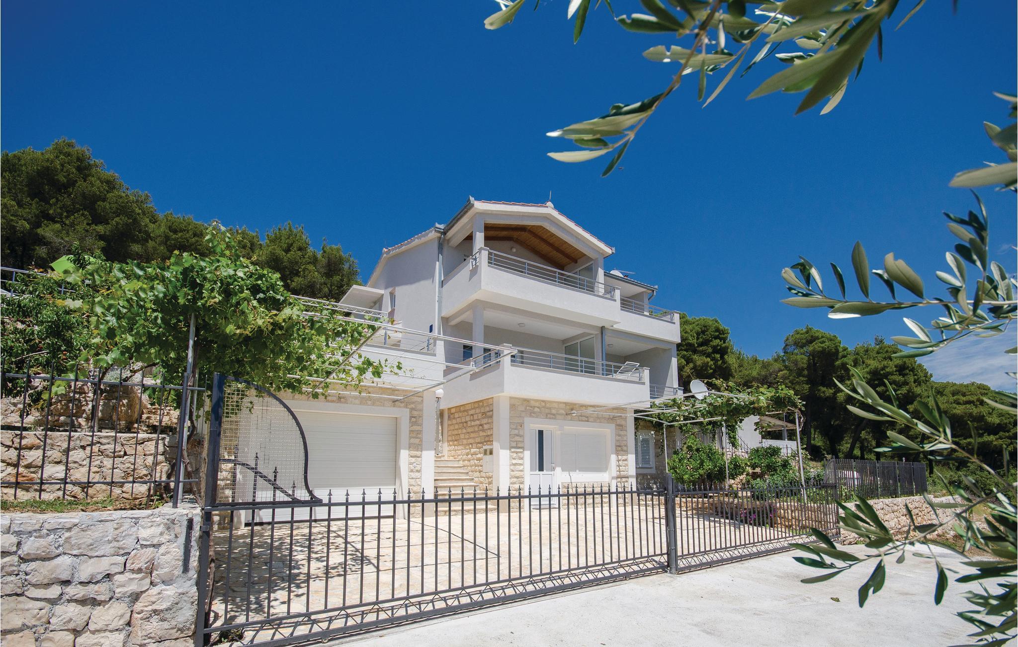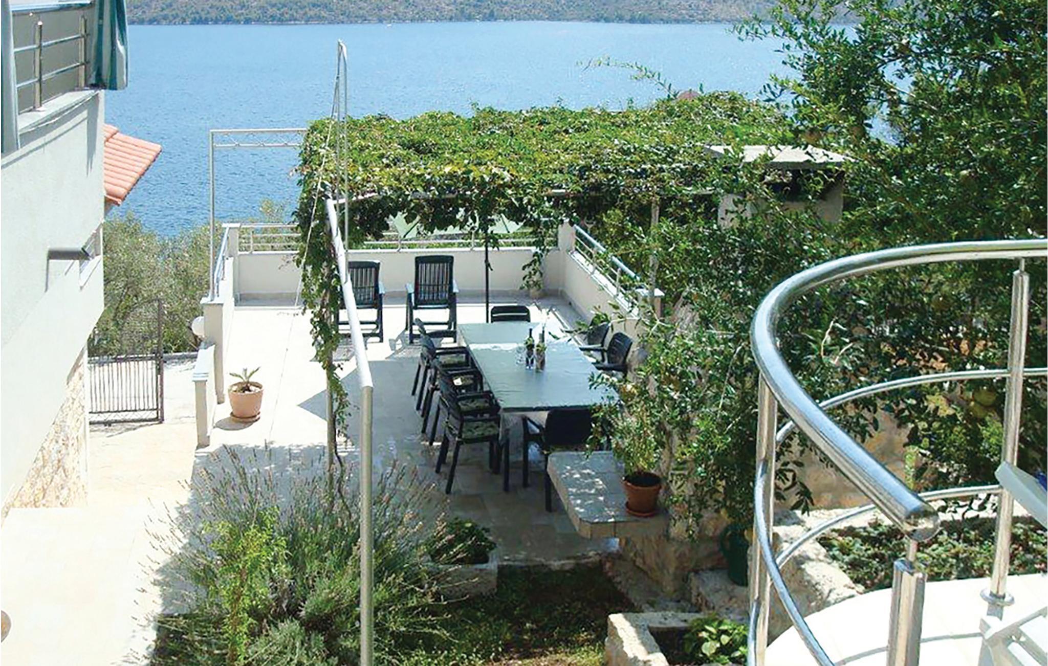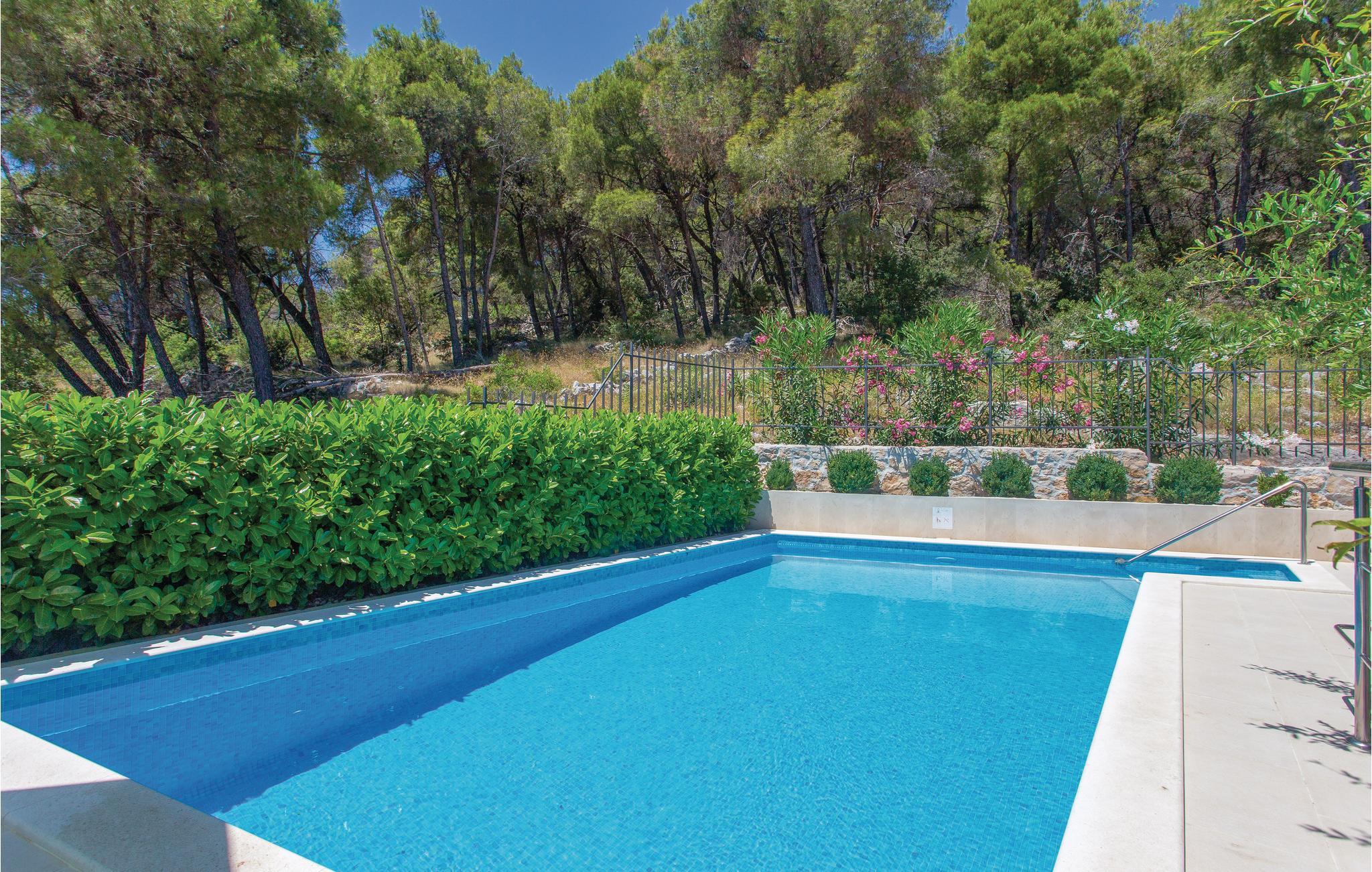 Dette vakkert møblerte feriehuset ligger i en liten og rolig landsby på en høyde. Det er omgitt av natur og bare 80 m skiller deg fra det krystallklare havet. Feriehuset er spredt over to etasjer, som er forbundet med utvendige trapper, noe som gjør det ideelt for flere familier å tilbringe ferien sammen. Forfriskning finner du i bassenget ved siden av huset, hvorfra du har en flott panoramautsikt over havet. Gamlebyen i Trogir, som er på UNESCOs verdensarvliste, ligger bare 8 km unna. De siste 150 m av adkomstveien er ikke asfaltert. I tillegg til en 20 m² garasje er det 3 P-plasser.
