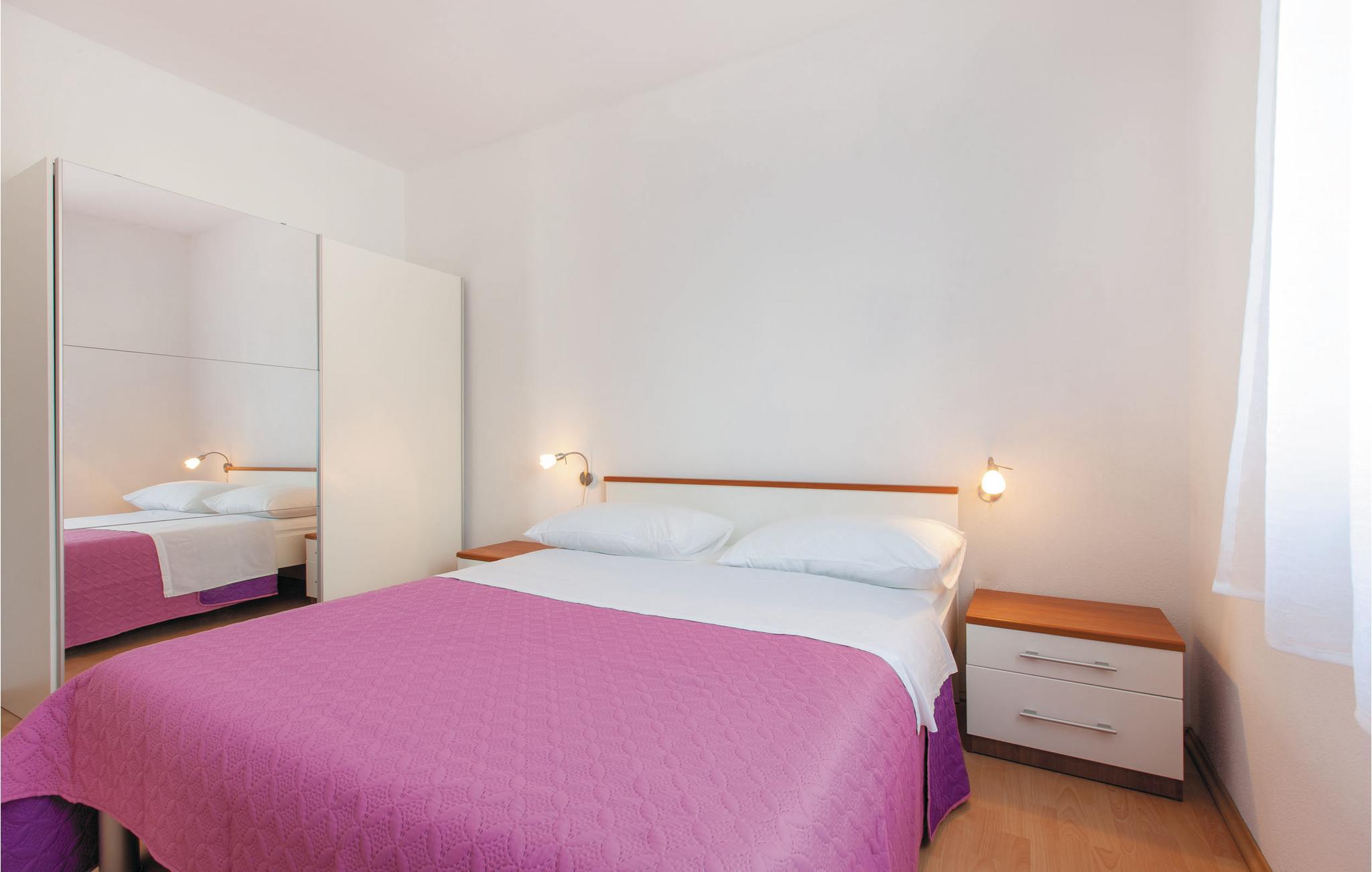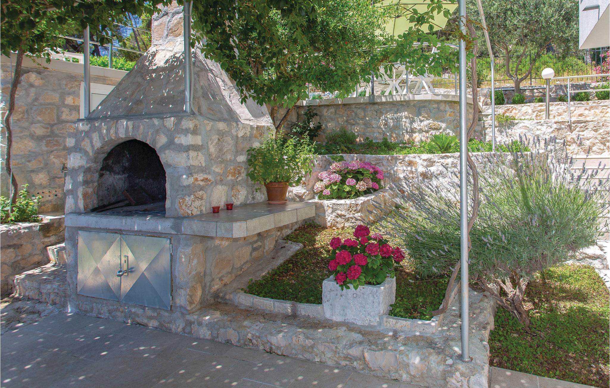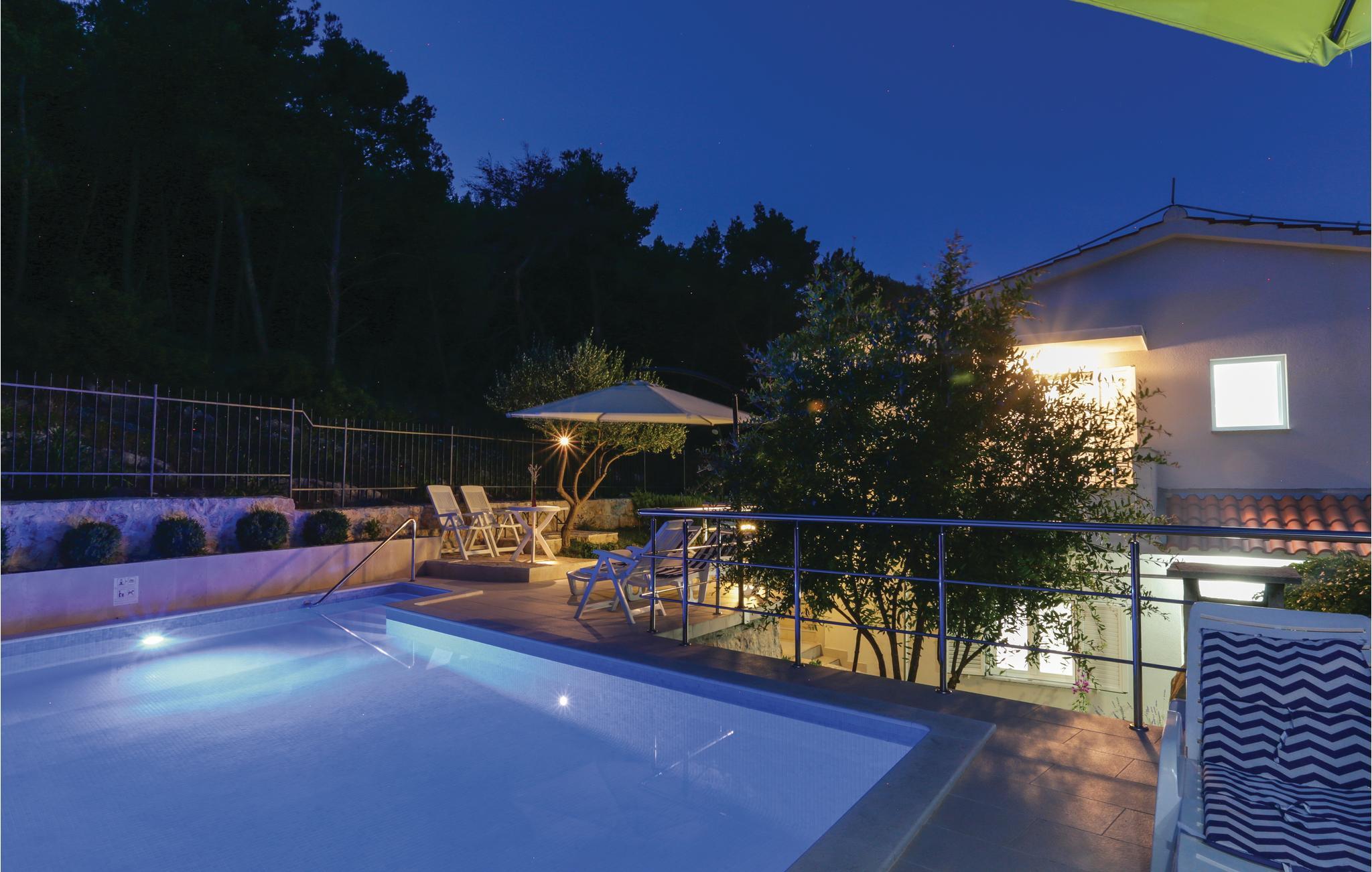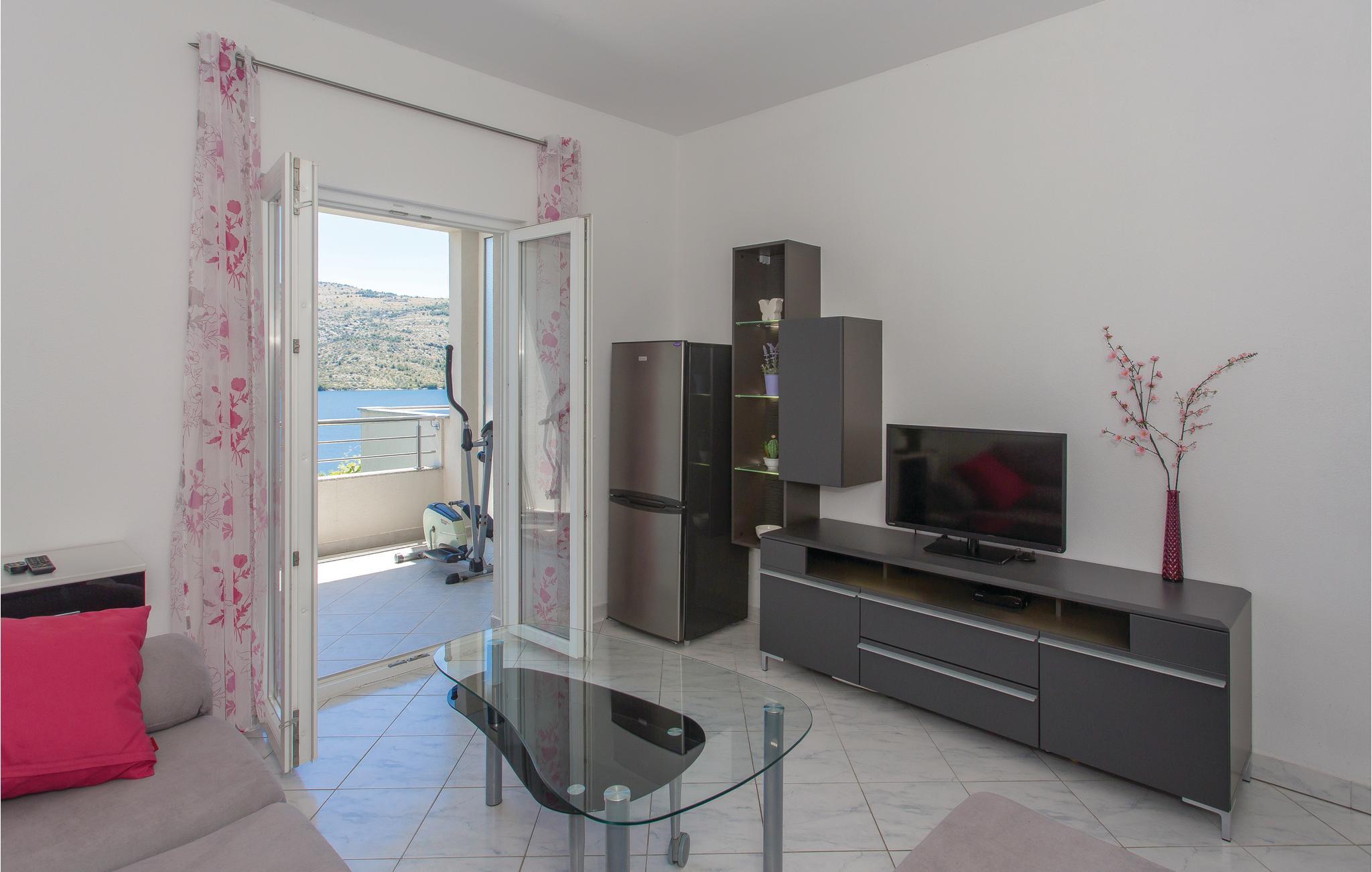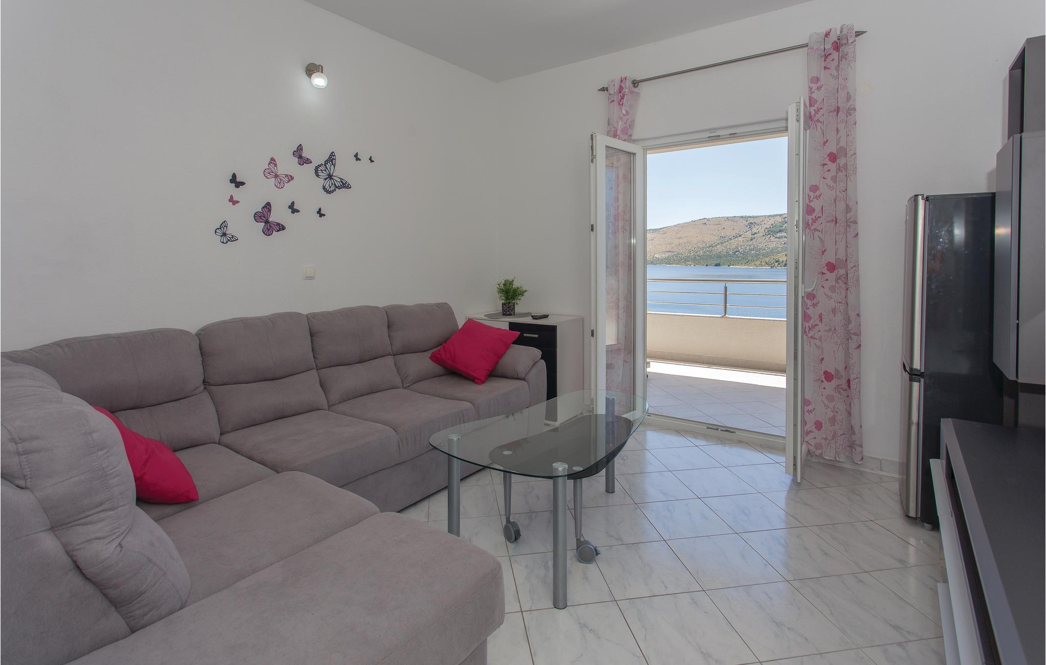 Dette vakkert møblerte feriehuset ligger i en liten og rolig landsby på en høyde. Det er omgitt av natur og bare 80 m skiller deg fra det krystallklare havet. Feriehuset er spredt over to etasjer, som er forbundet med utvendige trapper, noe som gjør det ideelt for flere familier å tilbringe ferien sammen. Forfriskning finner du i bassenget ved siden av huset, hvorfra du har en flott panoramautsikt over havet. Gamlebyen i Trogir, som er på UNESCOs verdensarvliste, ligger bare 8 km unna. De siste 150 m av adkomstveien er ikke asfaltert. I tillegg til en 20 m² garasje er det 3 P-plasser.