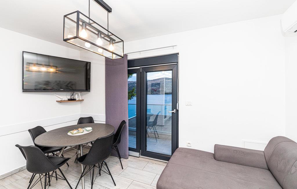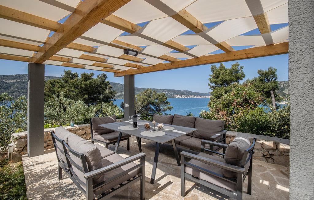 Verbringen Sie Ihren Urlaub in Meeresnähe. Dieses schöne Ferienhaus ist zum Entspannen konzipiert und befindet sich im kleinen Ferienort Poljica. Mit zwei Wohneinheiten ist das Feriendomizil perfekt für zwei Familien oder eine Freundesgruppe geeignet. Das Erdgeschoss besteht aus einer Küche mit Esszimmer, zwei Schlafzimmern und Bad, während im ersten Stock, eine Küche mit Esszimmer, drei Schlafzimmer und zwei Badezimmer sind. Besonders hervorzuheben ist der Pool mit herrlichem Panoramablick aufs Meer, der für Ihre Erfrischung an heißen Sommertagen sorgen wird. Nur die Straße trennt Sie vom Meer und einem herrlichem Kiesstrand.