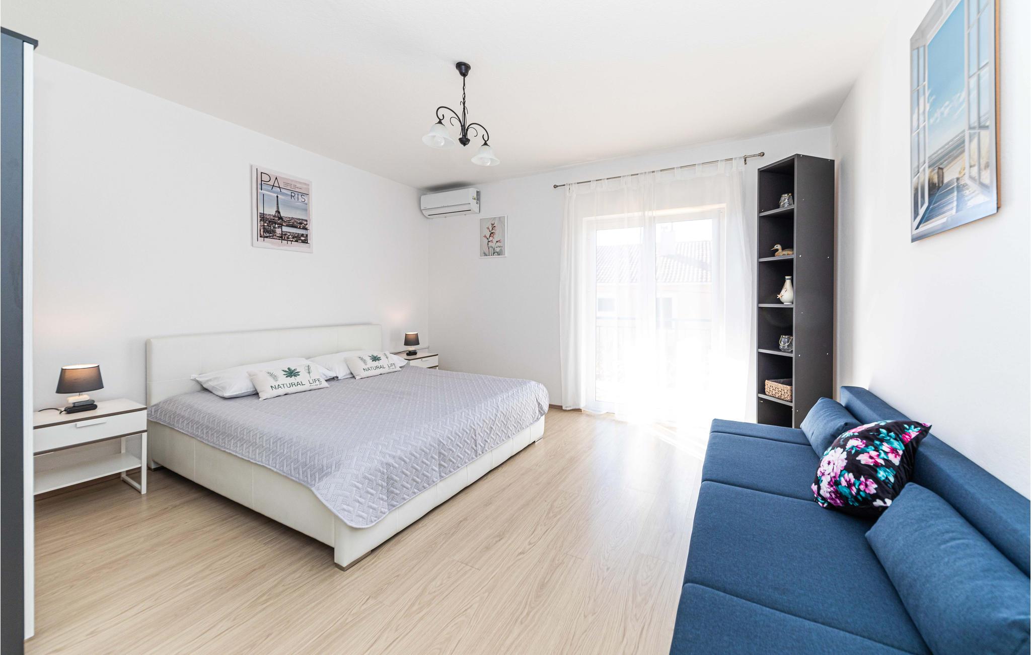 Du kan også ta dagsturer til Trogir og Split. Du kan nå begge byene raskt med bil. Trogir tiltrekker seg med sin historiske gamleby og de små smugene, den gamle katedralen og den livlige strandpromenaden. I Split kan du enkelt tilbringe timer med shopping eller bading på vakre strender. Begge byene tilbyr deg et rikt gastronomisk tilbud.