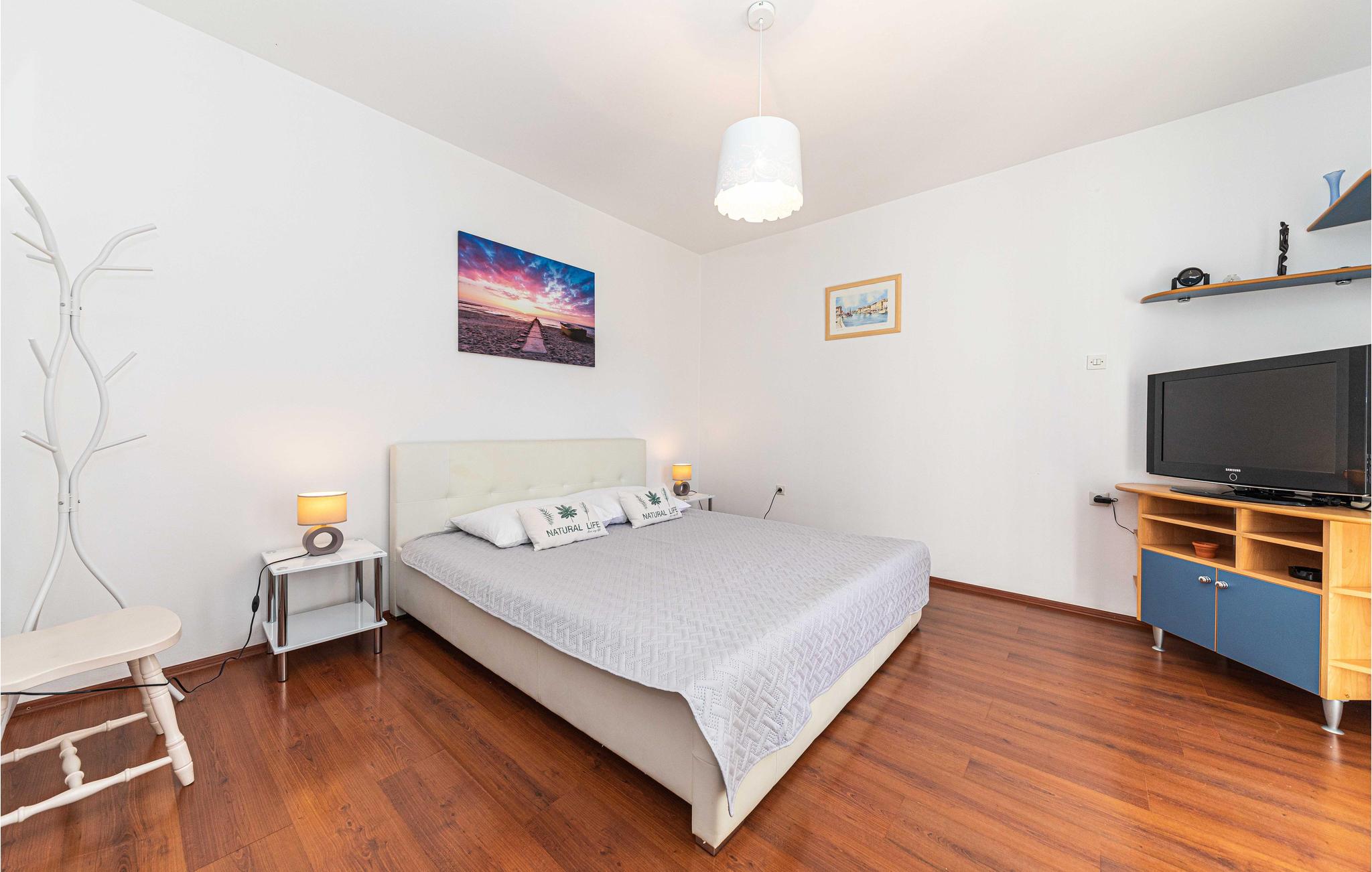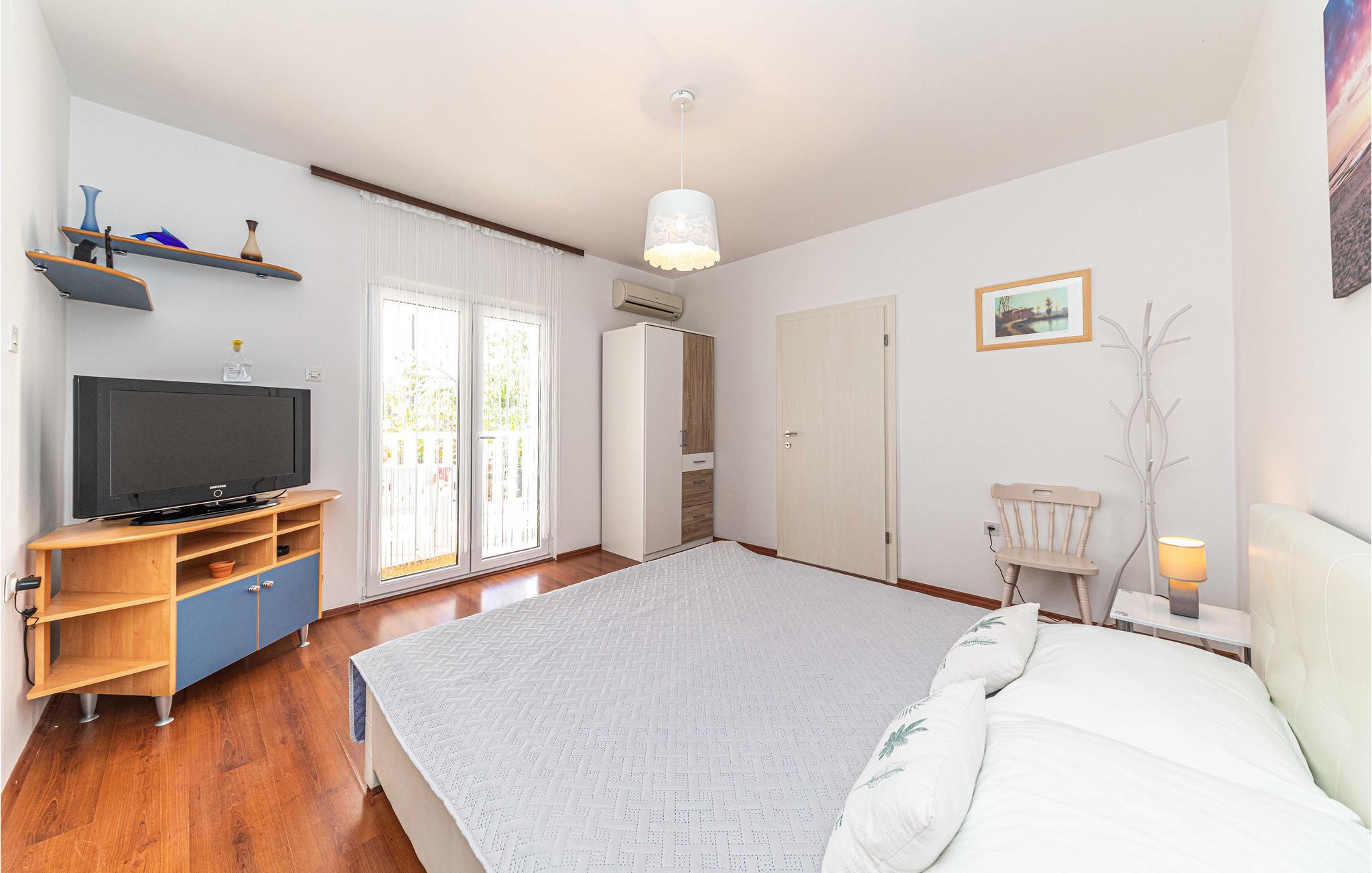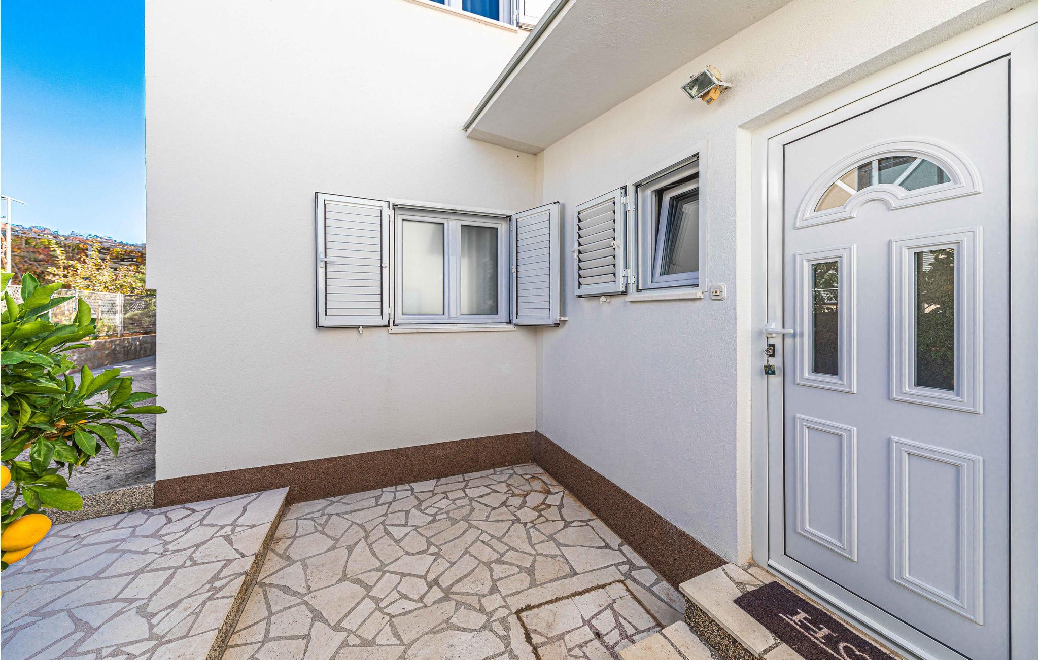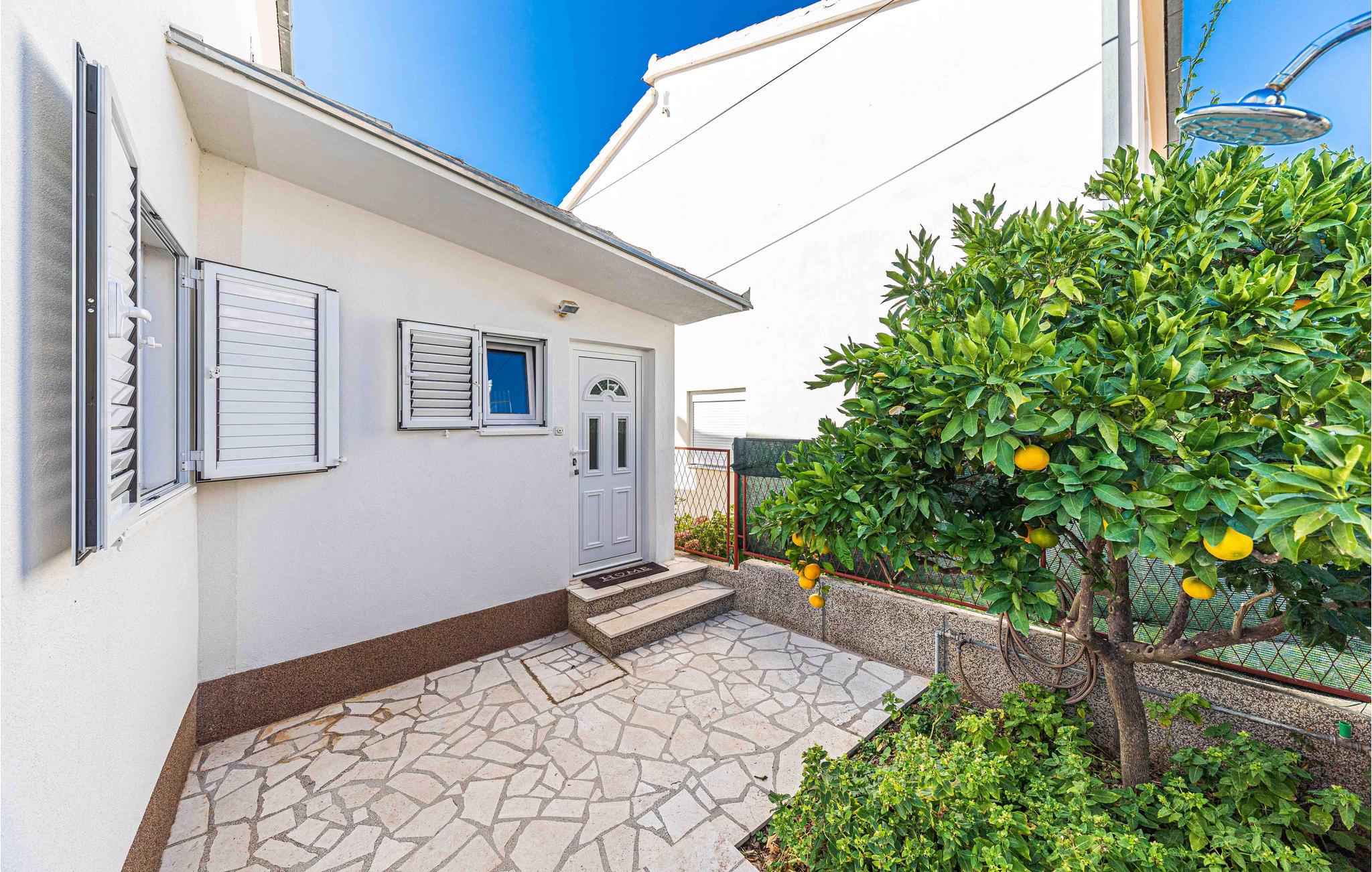 Du kan også ta dagsturer til Trogir og Split. Du kan nå begge byene raskt med bil. Trogir tiltrekker seg med sin historiske gamleby og de små smugene, den gamle katedralen og den livlige strandpromenaden. I Split kan du enkelt tilbringe timer med shopping eller bading på vakre strender. Begge byene tilbyr deg et rikt gastronomisk tilbud.