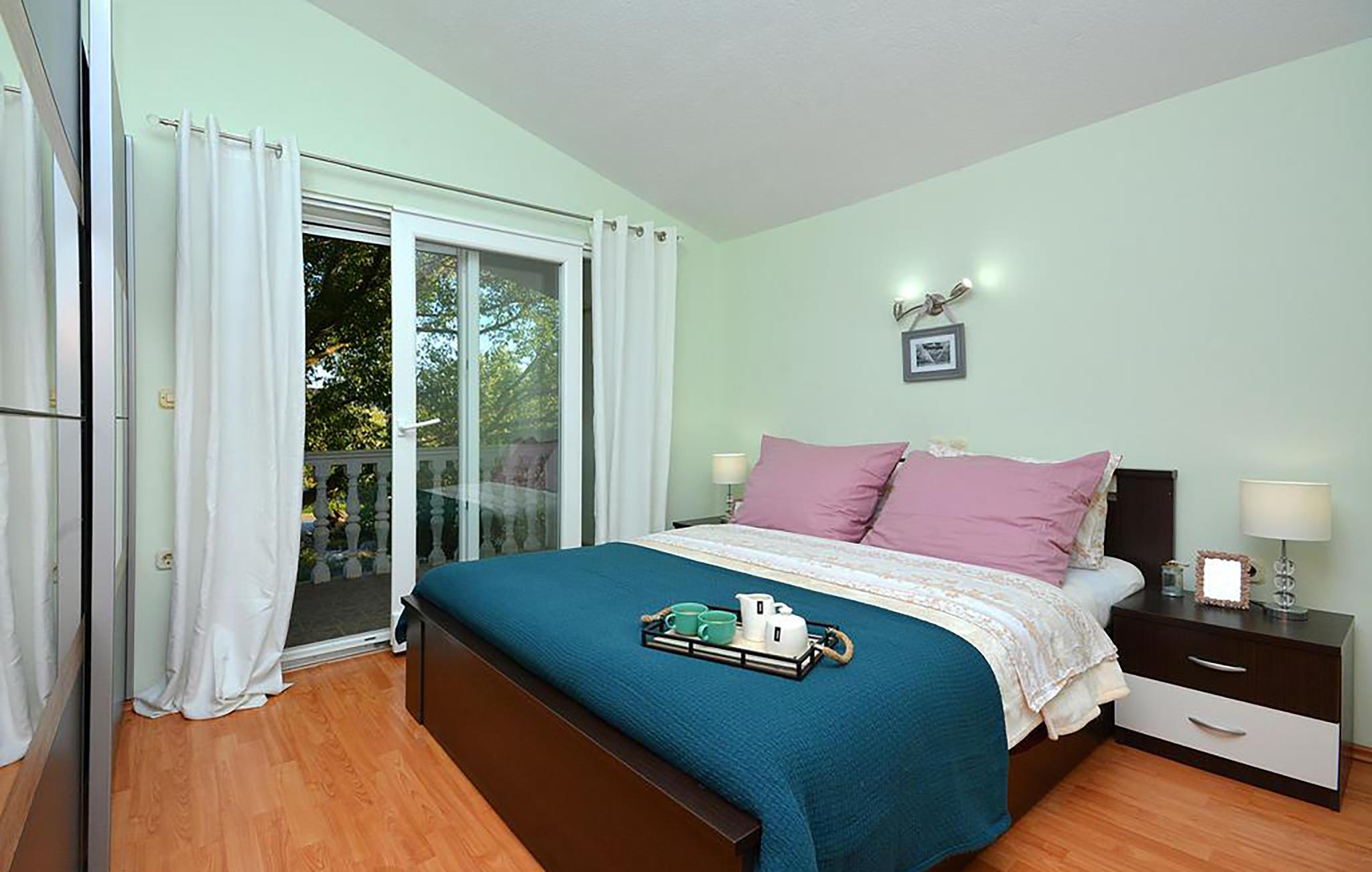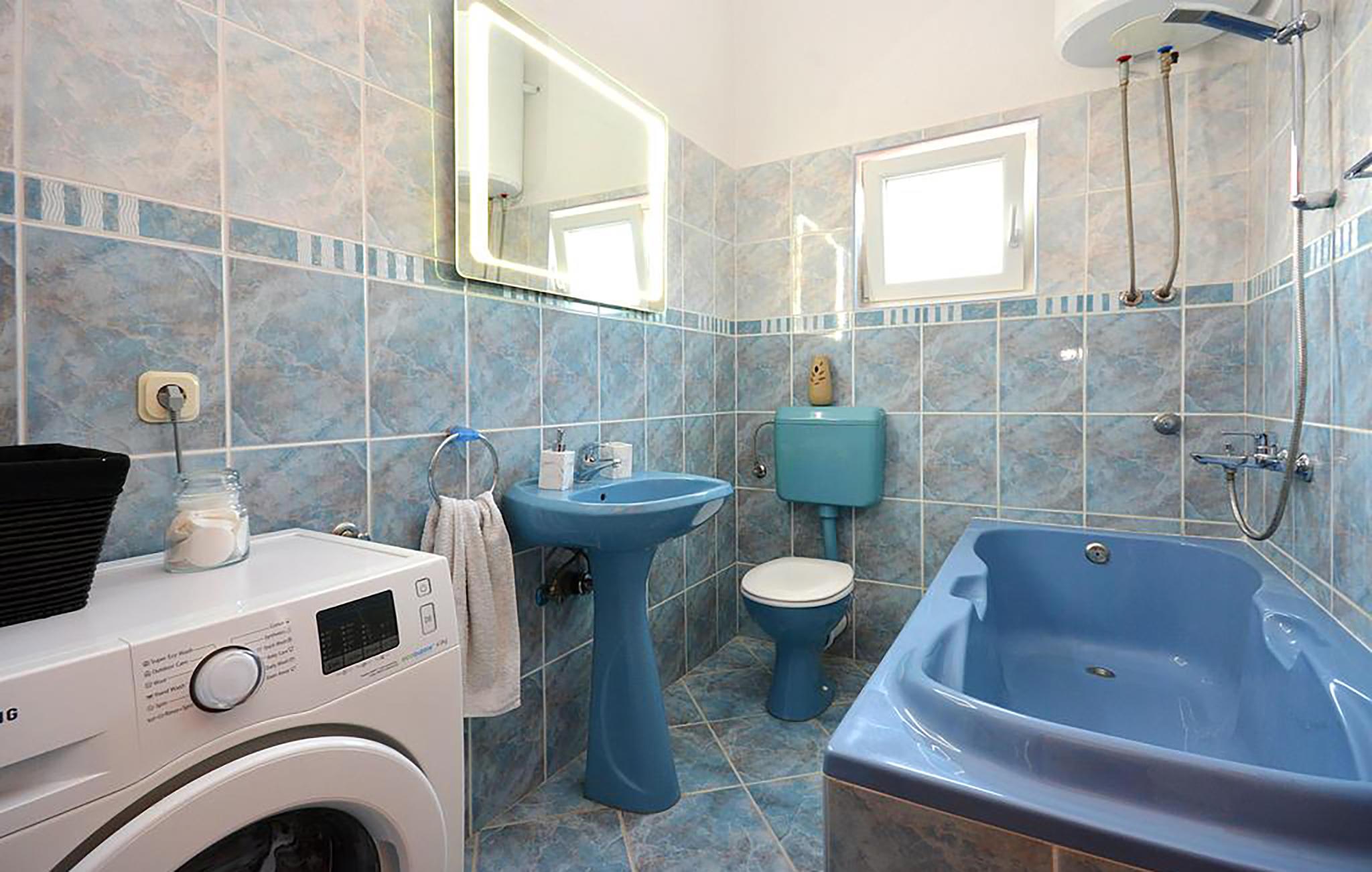 Dette vakre feriehuset ligger i nærheten av Marina, nær Trogir. Huset er ideelt for familier med barn, som kan leke bekymringsløst på den inngjerdede eiendommen. Første etasje består av tre soverom, et kjøkken med spisestue, en stue og et bad. Foran huset er svømmebassenget hvor du kan forfriske deg på varme sommerdager. Under lysthuset med grill kan du tilberede deilige måltider for hele familien. Byen Marina tilbyr mange arrangementer i sommermånedene. Vi anbefaler et besøk til den historiske byen Trogir på kysten av Kastela Bay, som vil glede deg med sitt rike kulturelle og historiske tilbud og interessante arrangementer, samt et besøk til øya Ciovo, som er forbundet med Trogir med en bro.