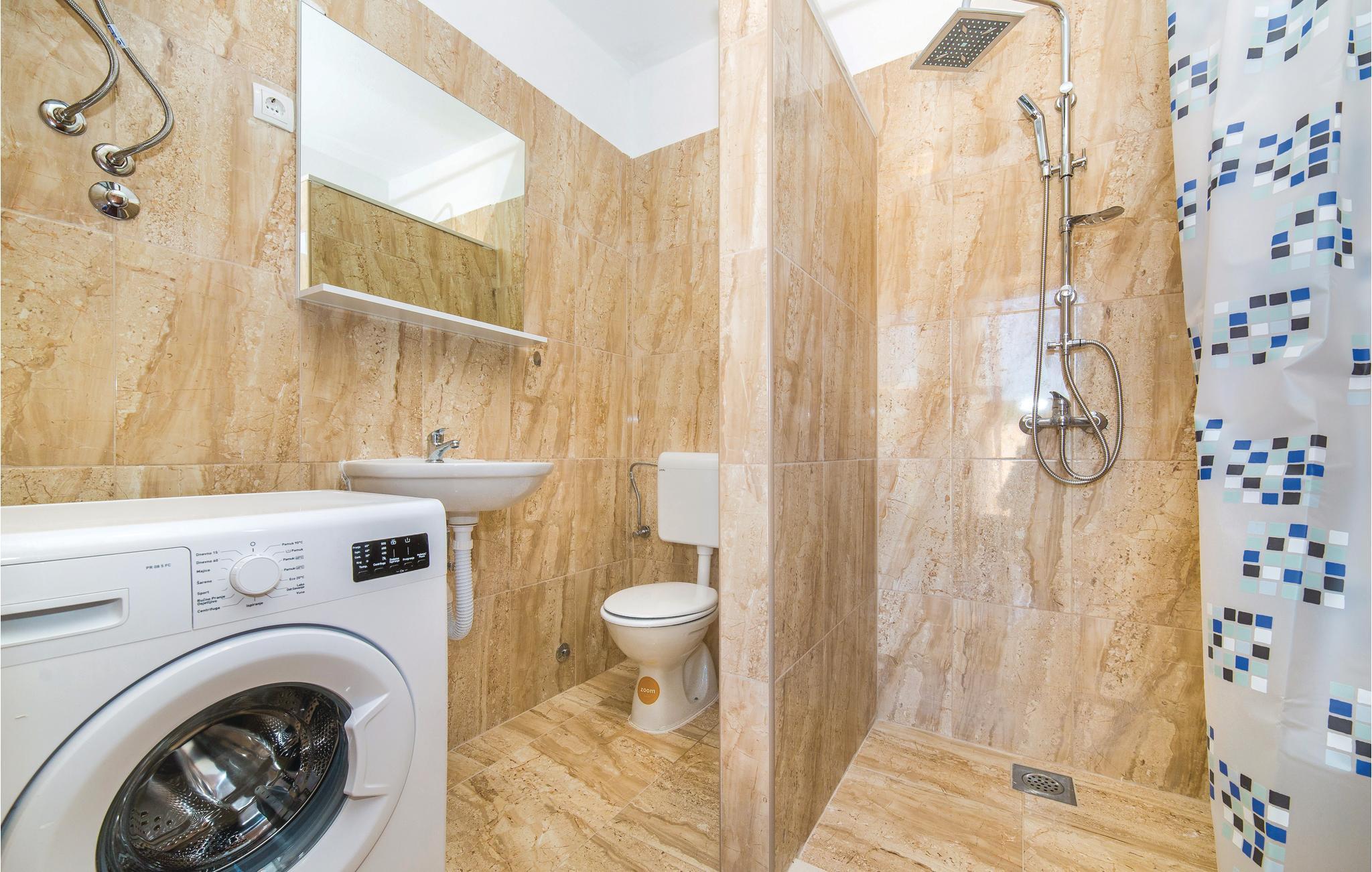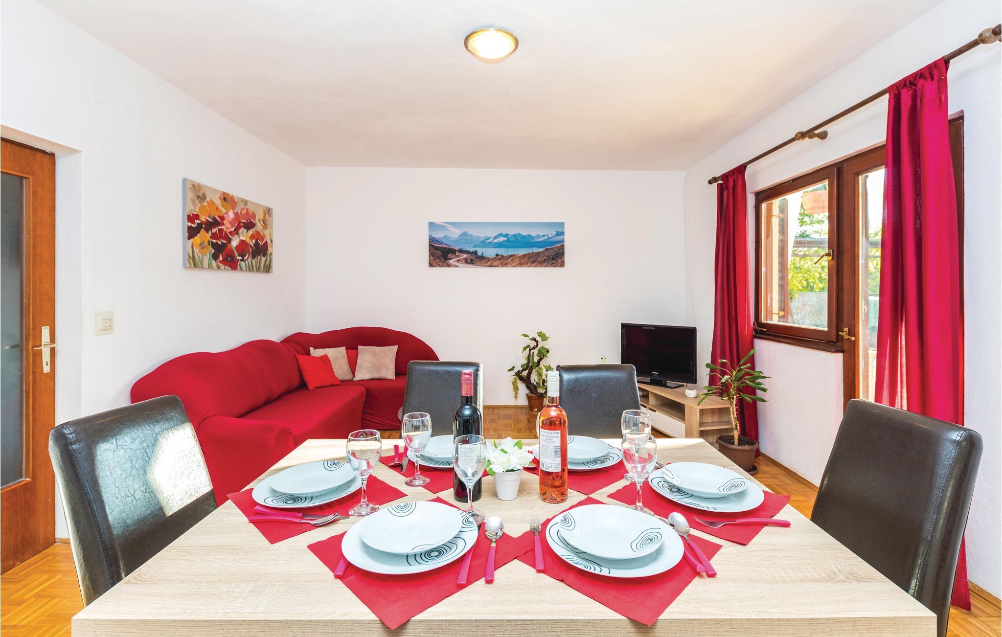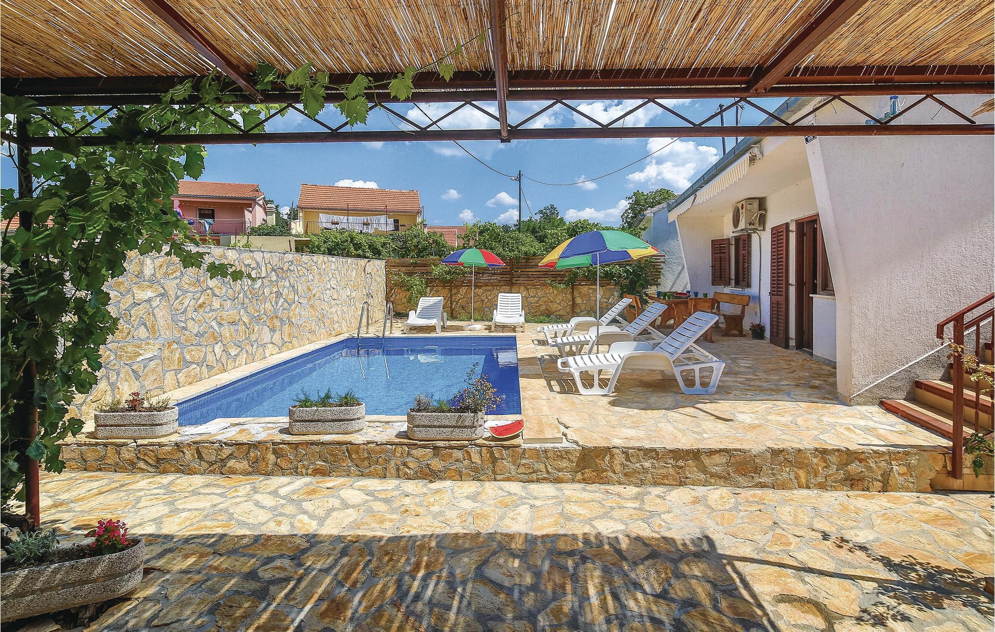 Dette feriehuset med basseng ligger i fredelige omgivelser og er ideelt for familier og par som ønsker å nyte idyllen i en liten landsby. Det har en stor terrasse i øverste etasje med utsikt over landskapet. En nydelig solterrasse ligger ved bassenget. Ved siden av huset er den uunnværlige grillen og bak den lekeplassutstyret for barn. Verten tilbyr ridning, leie av jetski og hurtigbåt, transport og kuponger i nærliggende restauranter etter avtale og mot et gebyr. Krka nasjonalpark med sin unike naturskjønnhet ligger omtrent 25 km unna. Det er bare 15 km til UNESCOs verdensarvliste i den gamle byen Trogir.