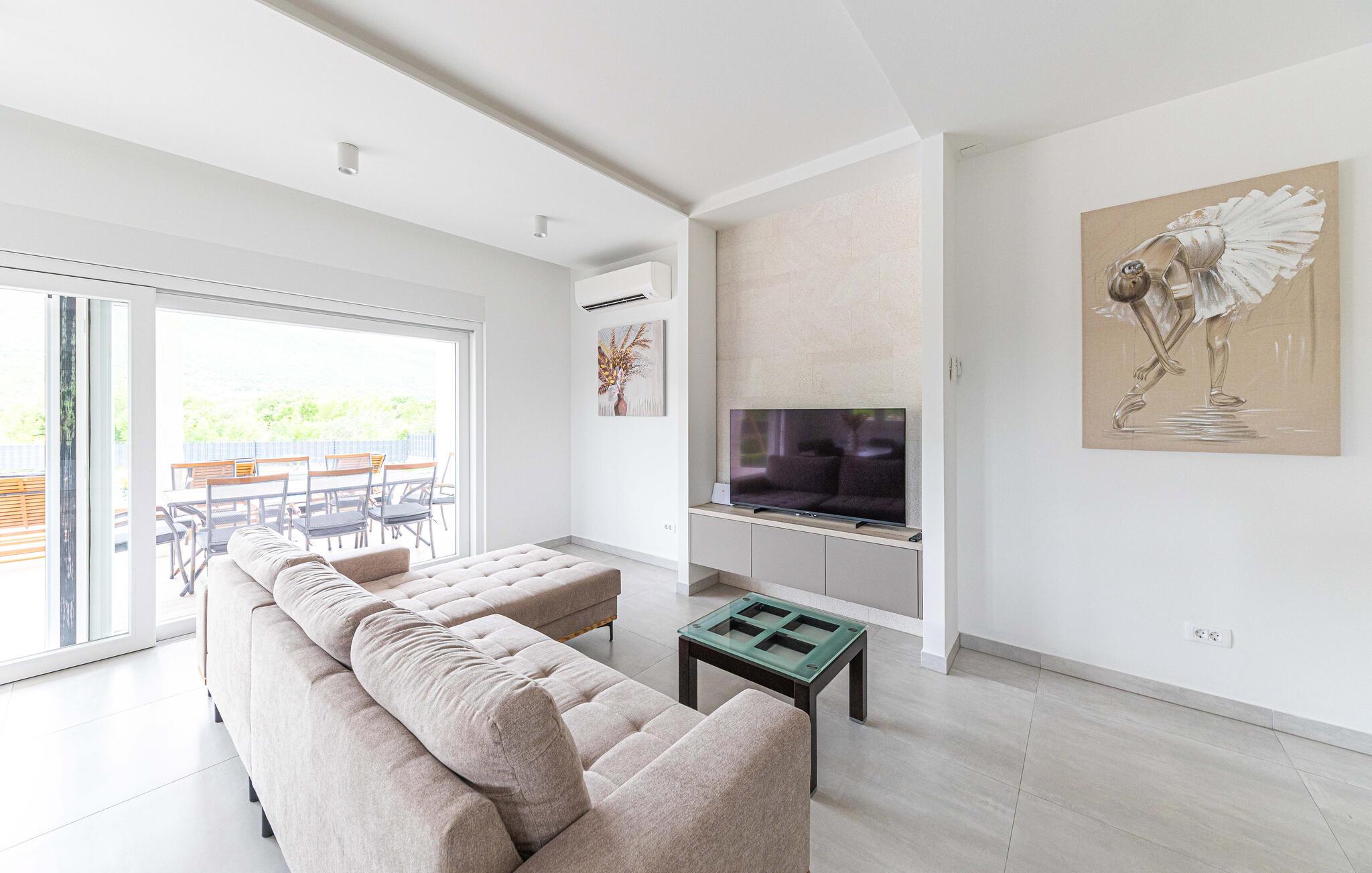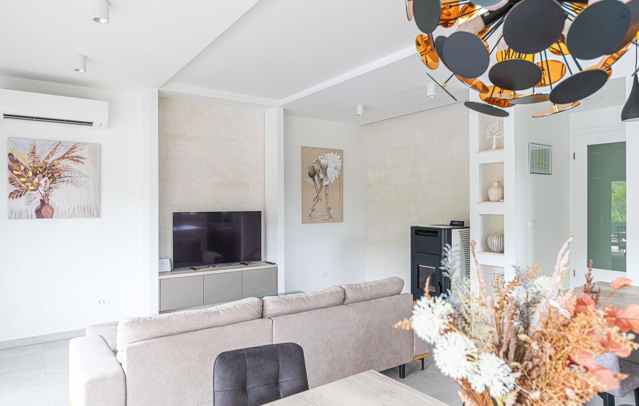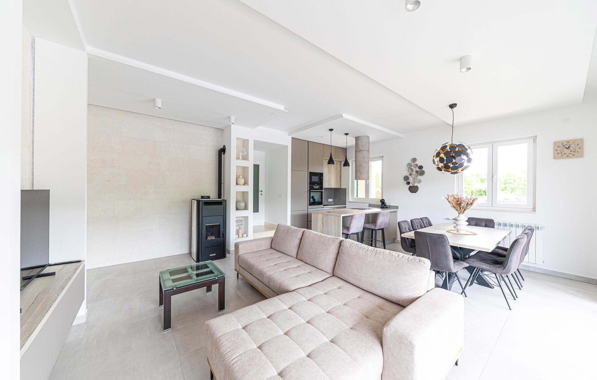 Det eksklusive huset ønsker deg velkommen i en god beliggenhet og fortryller deg med sitt stilige interiør. Slapp av i en komfortabel atmosfære, der lyse rom møter moderne møbler og moderne design, akkurat den rette rammen for ferieavslapning. Etter en fantastisk feriedag, kanskje tilbrakt på en utflukt, inviterer den komfortable sofaen deg til å sitte komfortabelt sammen i lang tid, gjennomgå opplevelsene dine og allerede legge planer for neste dag.