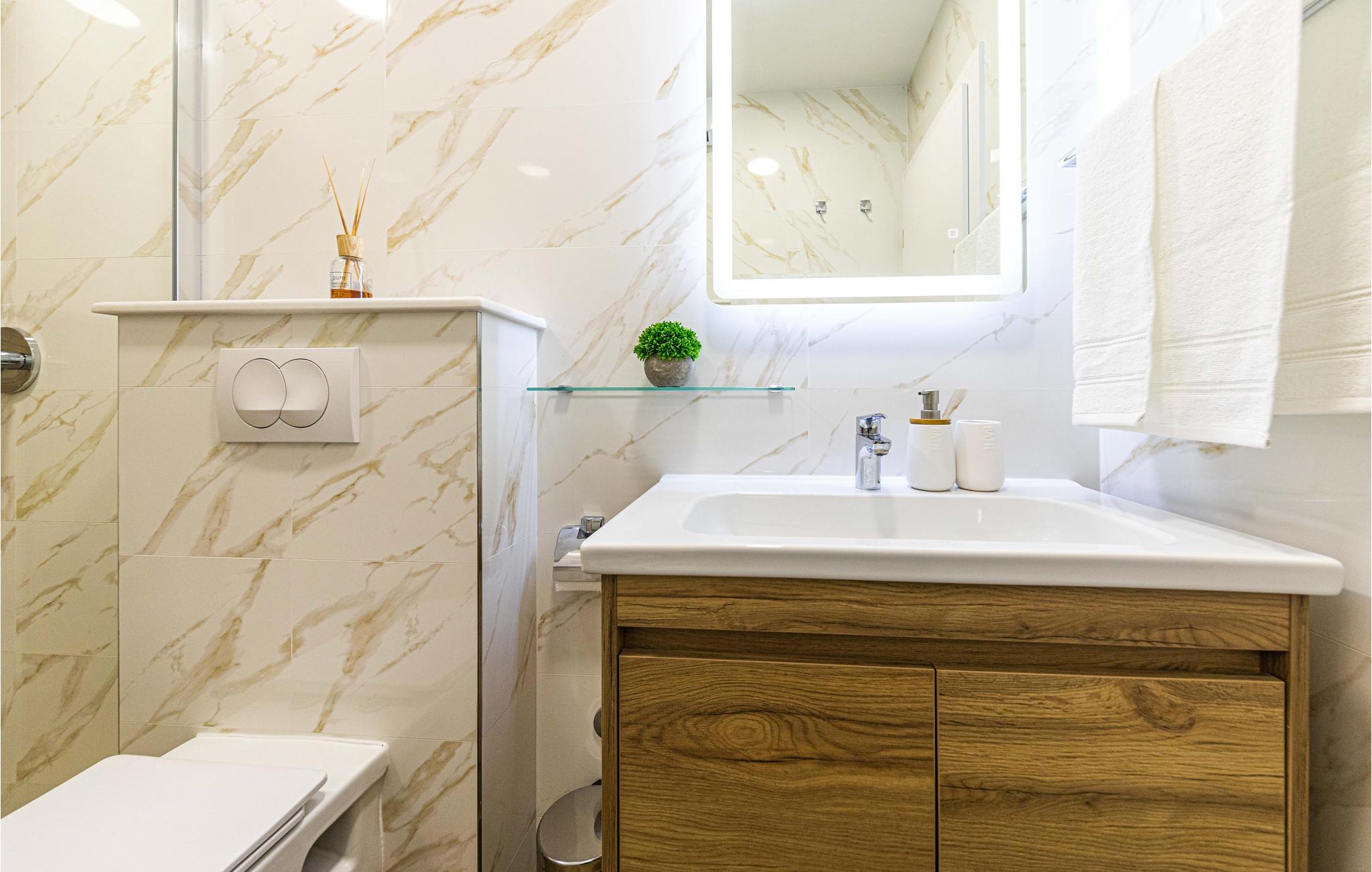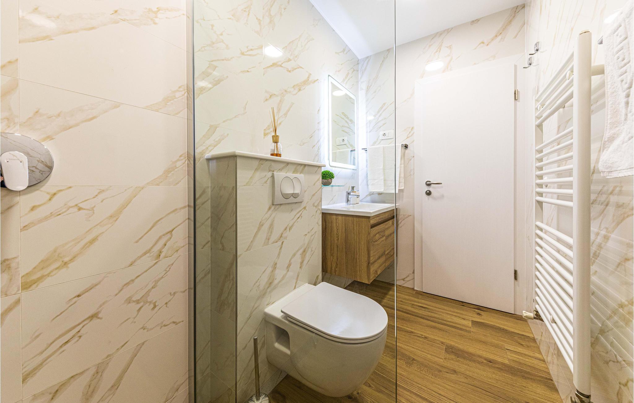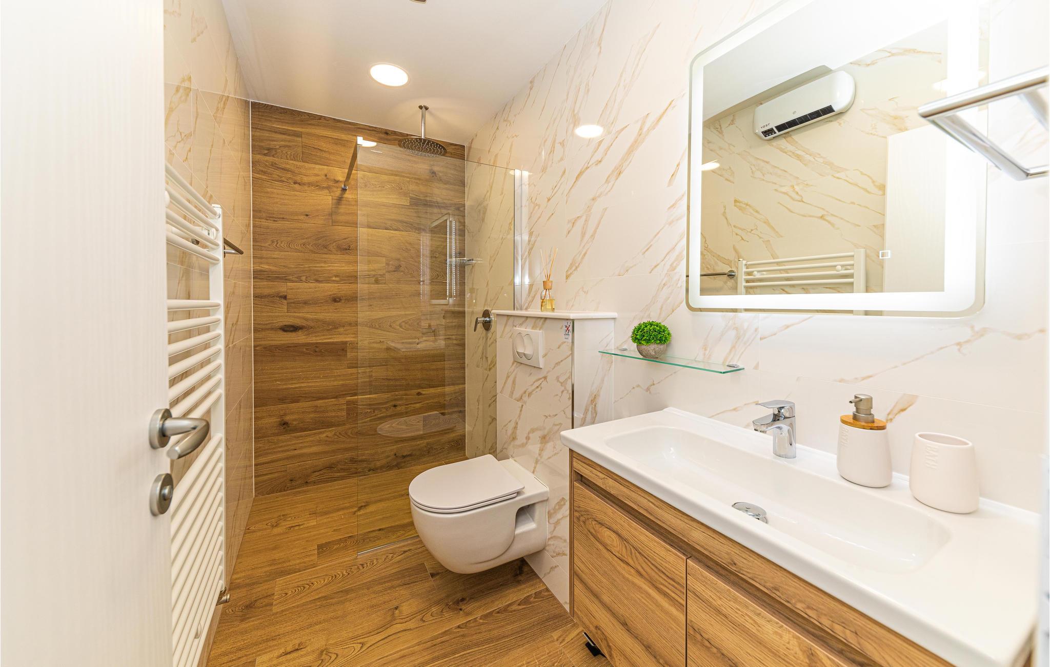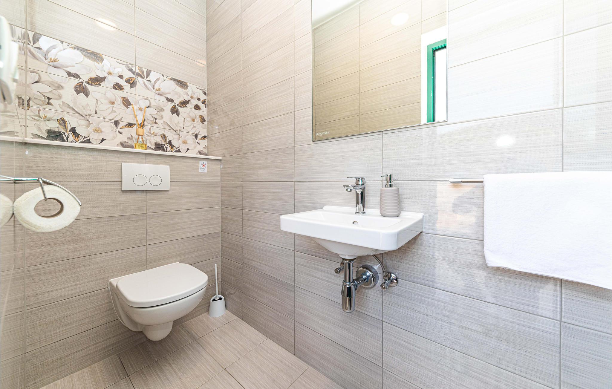 - WC med varmt og kaldt vann, Dusj