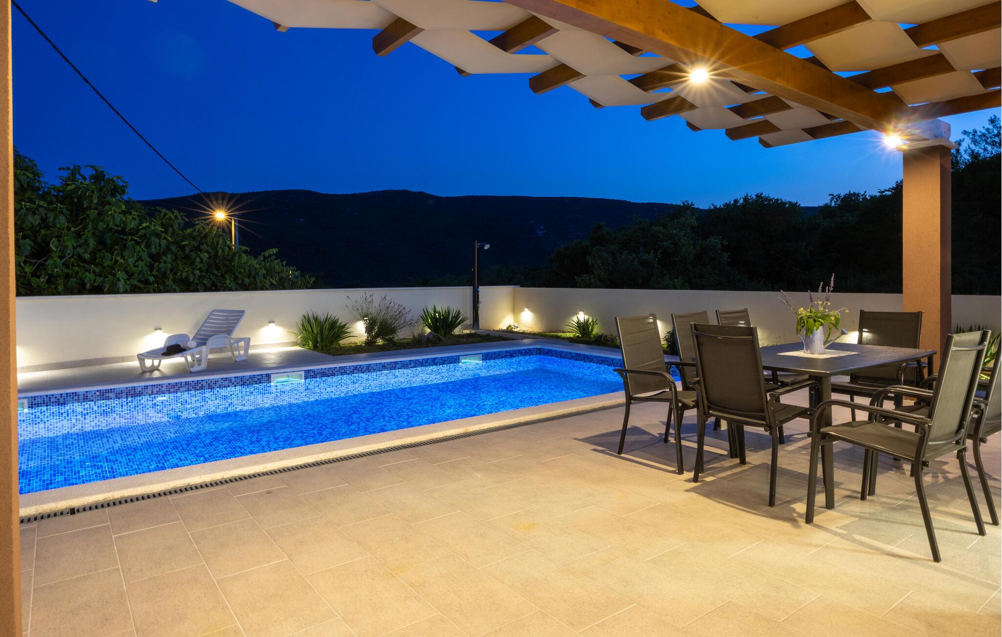 Det komfortable huset ønsker deg velkommen i en drømmeaktig beliggenhet, omgitt av et vakkert landskap. Du vil føle deg hjemme i de lyse rommene med moderne og smakfull innredning. Her kan du nyte dagene sammen i en stilig atmosfære. Gjør deg komfortabel om kvelden etter en fantastisk dag ved bassenget eller en vakker utflukt i omgivelsene og snakk lenge i koselig selskap.