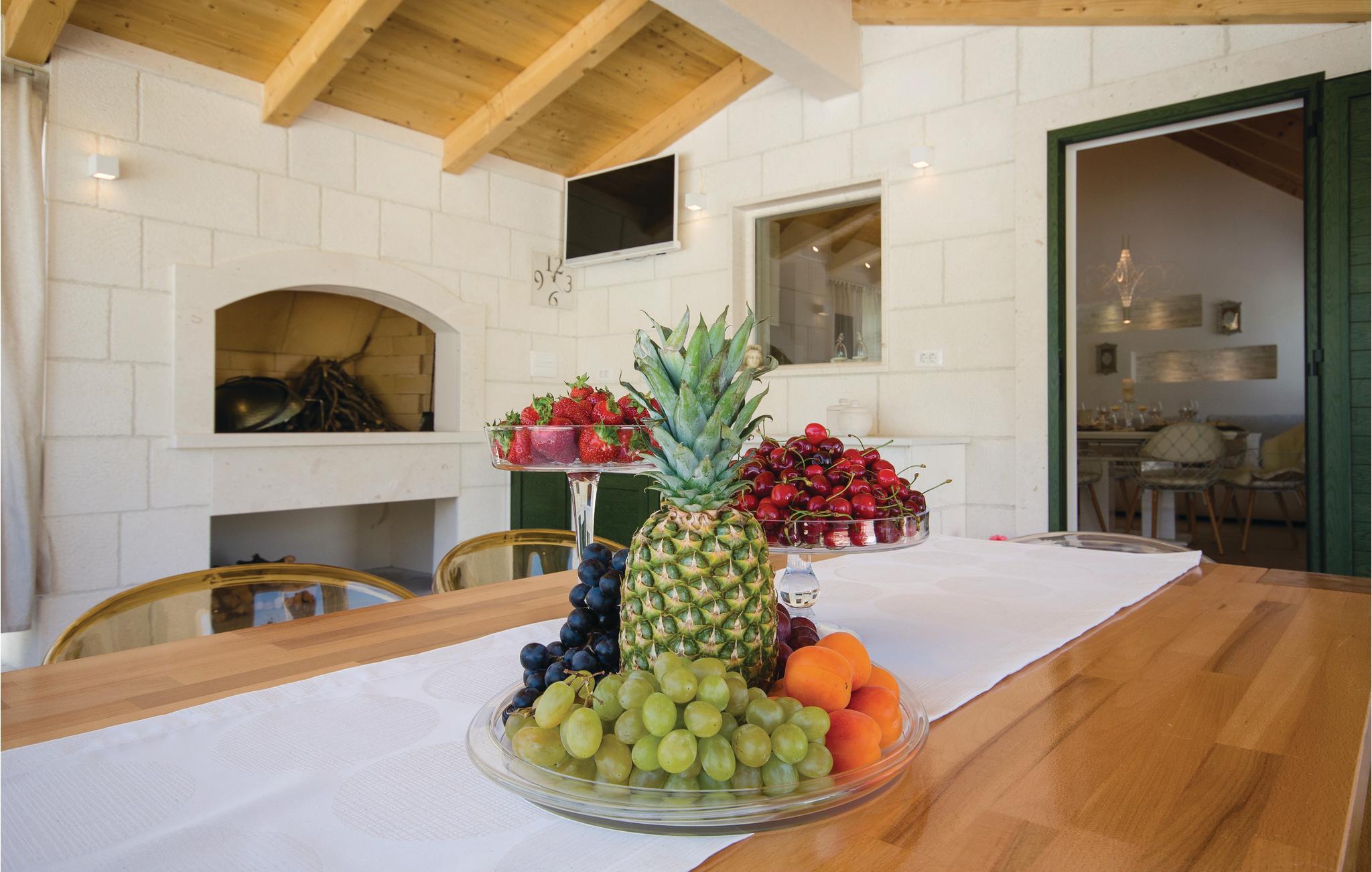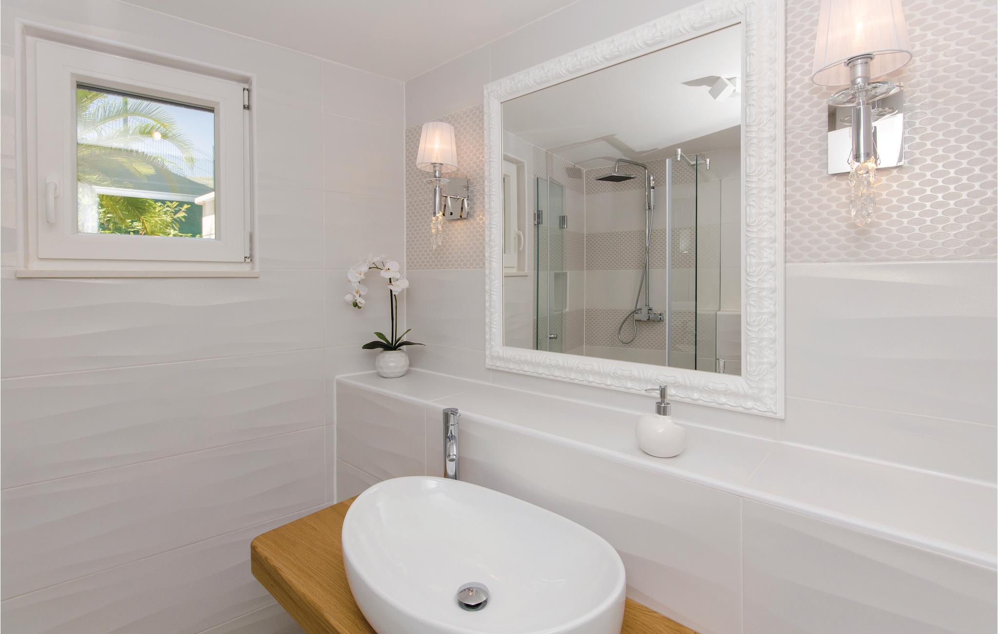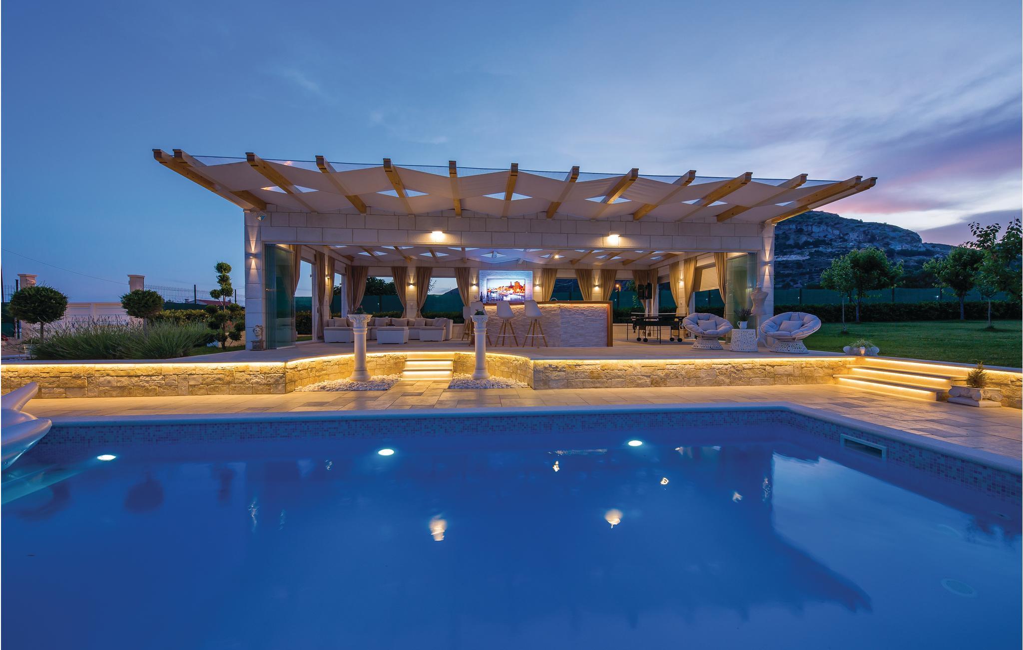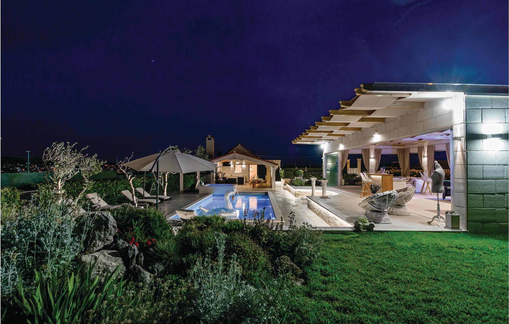Dette nydelige feriehuset i nydelige grønne omgivelser, er beskyttet mot innsyn fra andre og ligger på en fullstendig inngjerdet tomt. Boligen har tre soverom med egne klimaanlegg. I første etasje er det en komfortabel stue med kjøkken og utgang til den overbygde terrassen, som ligger nær bassenget. På den overbygde terrassen er det også et sommerkjøkken med grill. Selvfølgelig er det også en lekeplass i den vakkert anlagte hagen, samt frukttrær og en liten grønnsakshage. Nyt den vakre utsikten over Trogirbukten og det omkringliggende landskapet. Utforsk det interessante nattelivet i sentrum av Trogir og besøk de mange severdighetene. Takhelling til 135 cm.