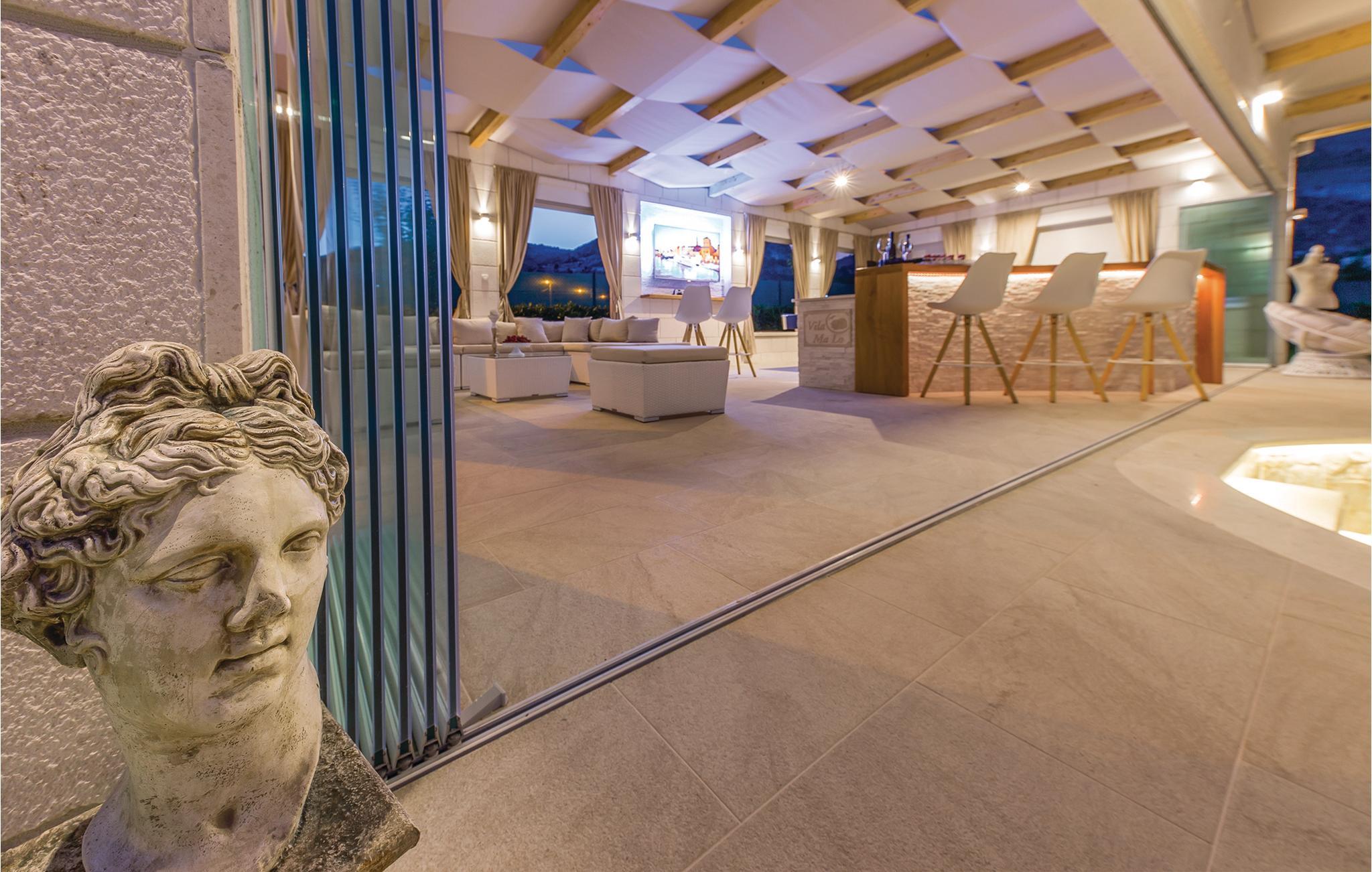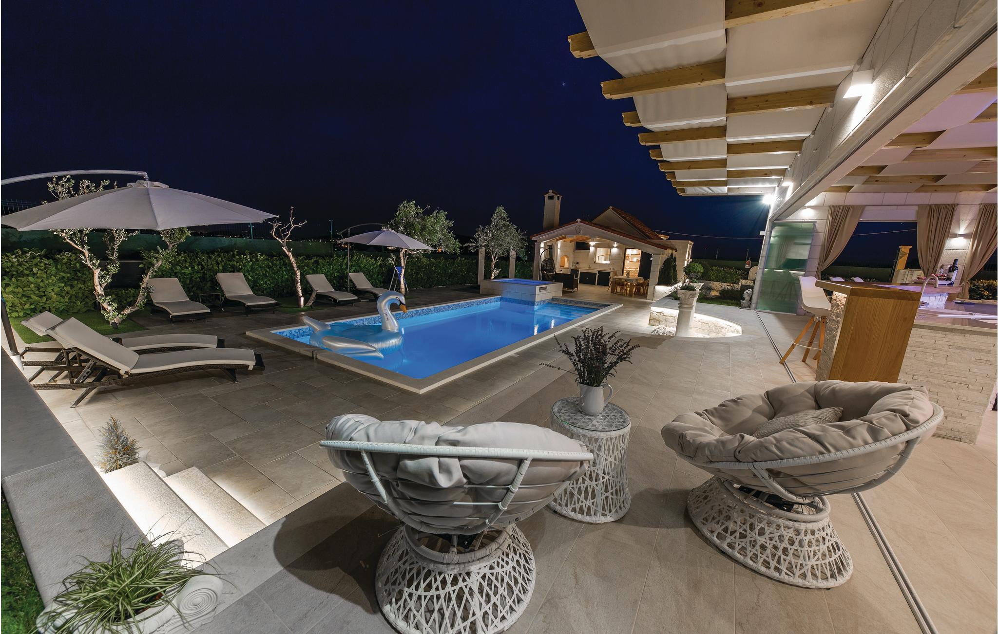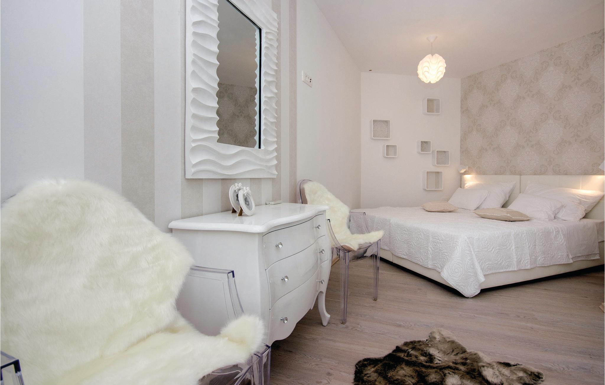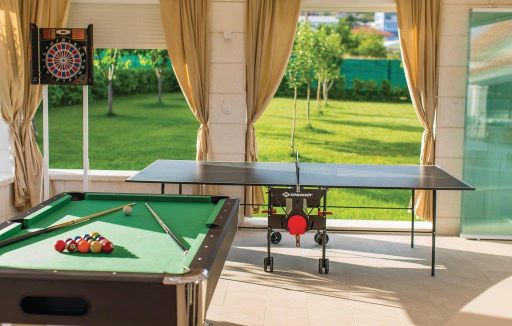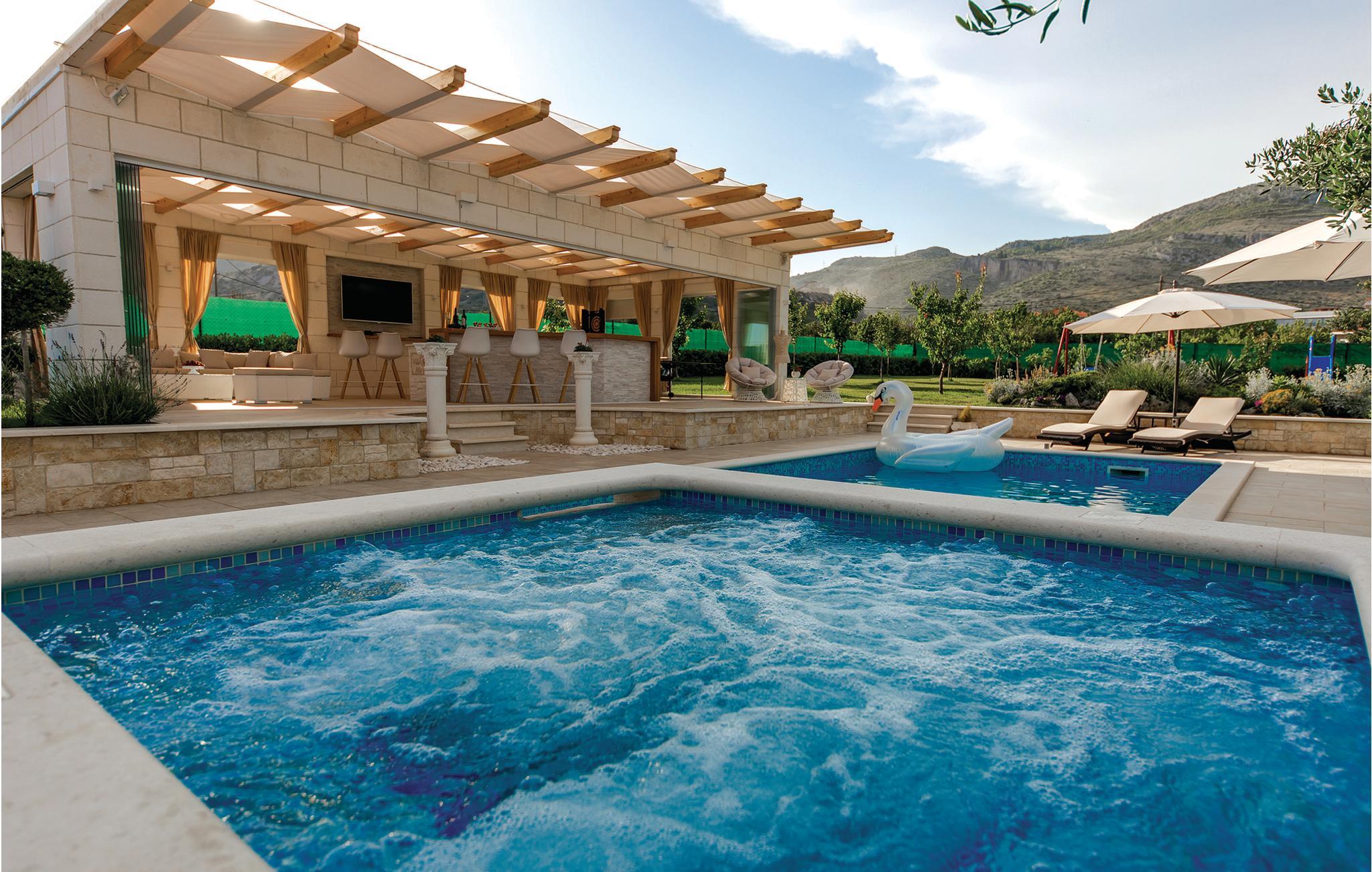 Dette nydelige feriehuset i nydelige grønne omgivelser, er beskyttet mot innsyn fra andre og ligger på en fullstendig inngjerdet tomt. Boligen har tre soverom med egne klimaanlegg. I første etasje er det en komfortabel stue med kjøkken og utgang til den overbygde terrassen, som ligger nær bassenget. På den overbygde terrassen er det også et sommerkjøkken med grill. Selvfølgelig er det også en lekeplass i den vakkert anlagte hagen, samt frukttrær og en liten grønnsakshage. Nyt den vakre utsikten over Trogirbukten og det omkringliggende landskapet. Utforsk det interessante nattelivet i sentrum av Trogir og besøk de mange severdighetene. Takhelling til 135 cm.