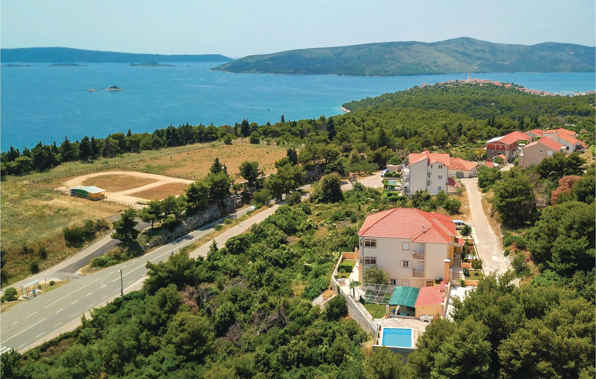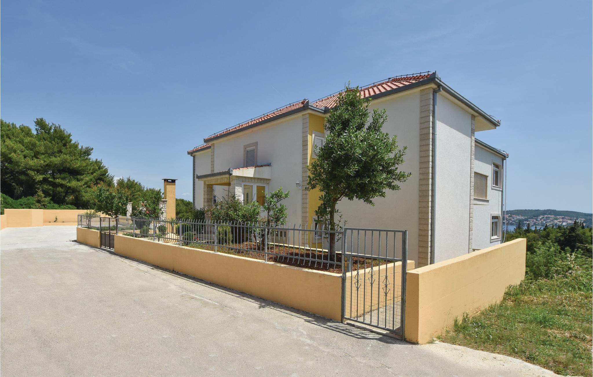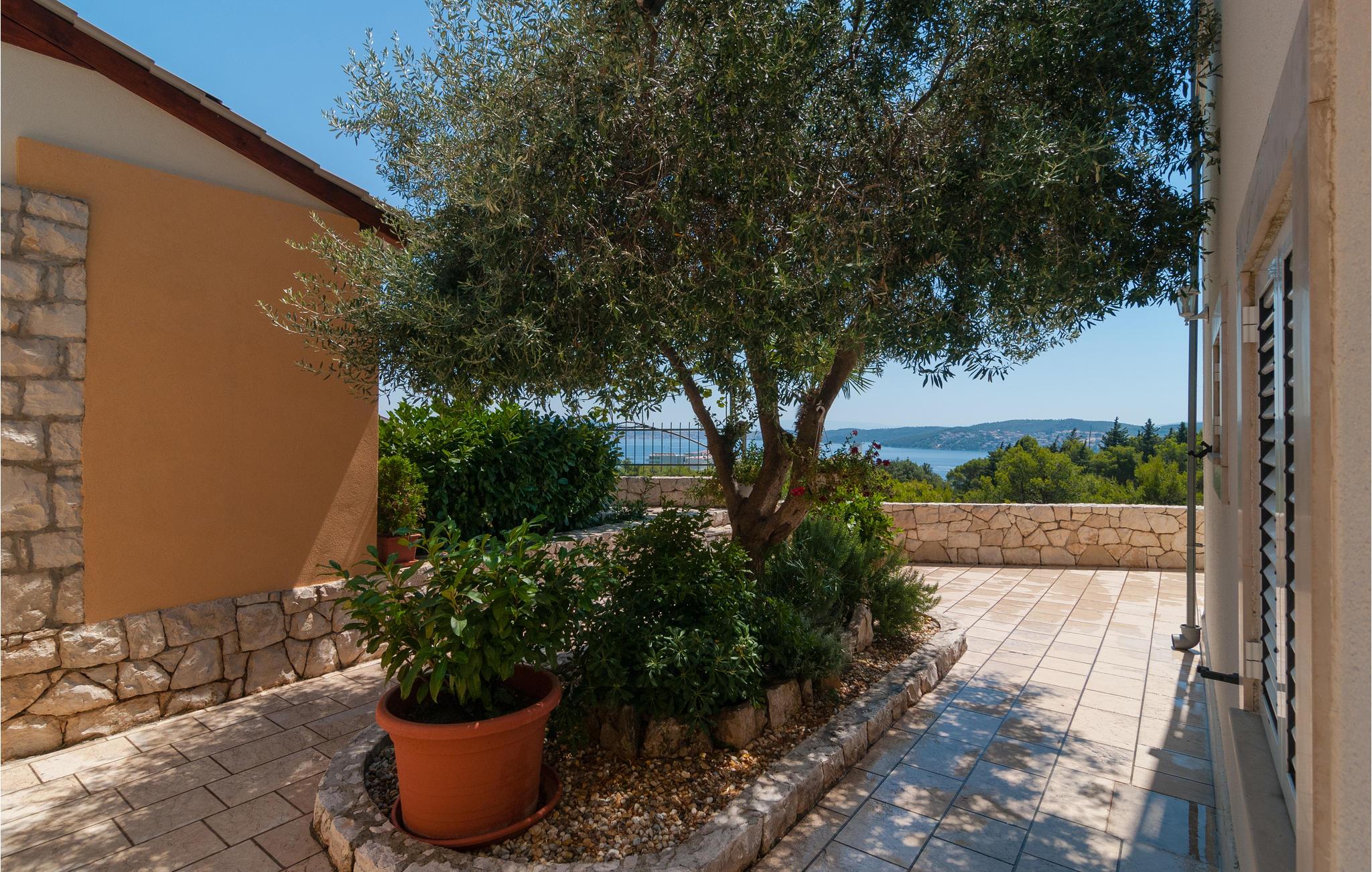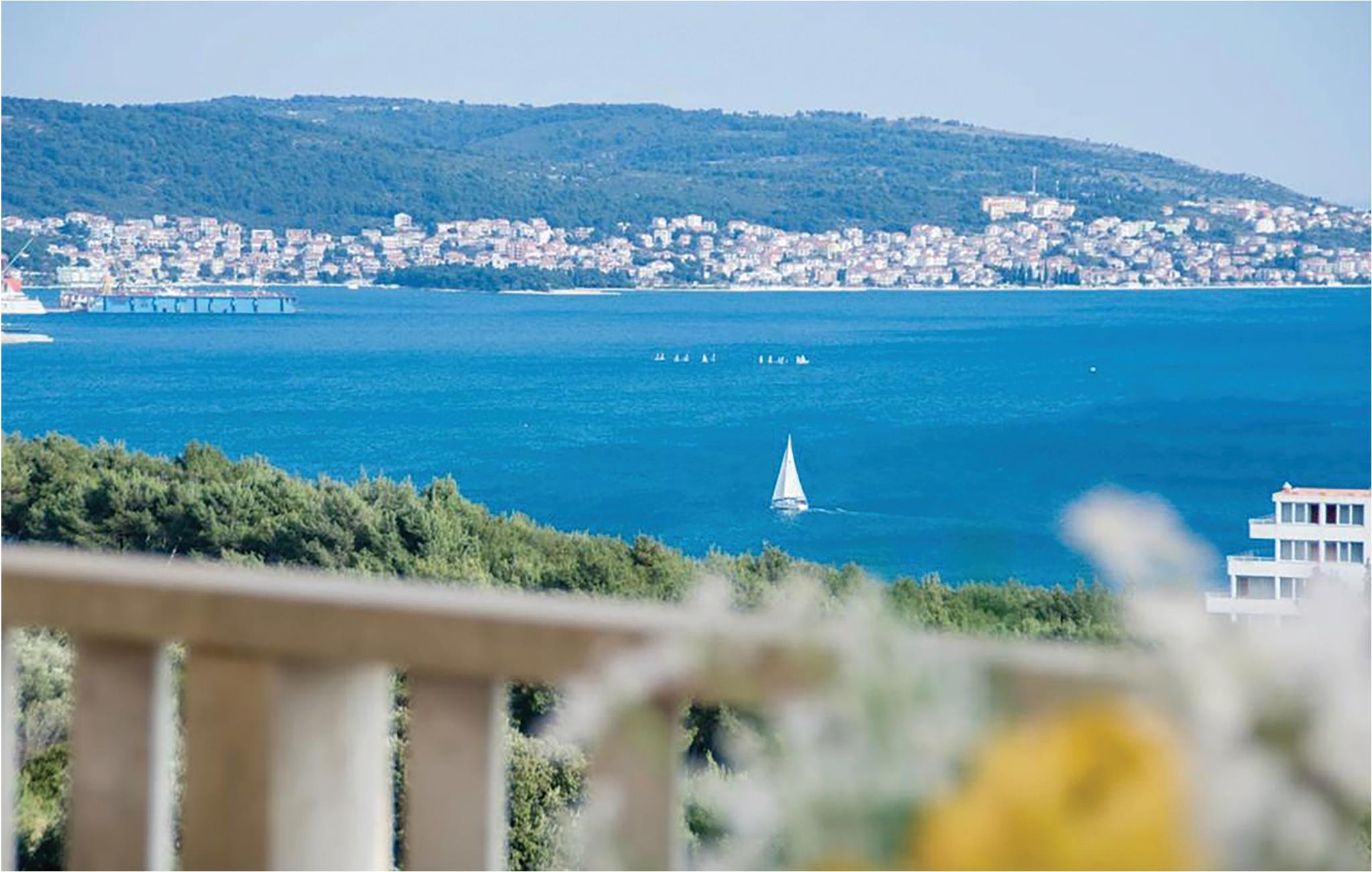 Dette feriehuset med basseng ligger på en høyde med panoramautsikt over havet og tilbyr deg uforglemmelige ferieøyeblikk. Det består av fem separate boenheter, noen med utvendige trapper og et separat rom med bad i første etasje, som vist på plantegningen. Tilbring hyggelige timer på terrassen foran sommerkjøkkenet, mens barna svømmer ubekymret i bassenget. Gjester på jakt etter avslapning vil få sine forventninger oppfylt. Den barnevennlige rullesteinstranden ligger ca 800 m unna. Besøk den historiske byen Trogir (4 km). Gå heller ikke glipp av en tur til Split, der Diokletian-palasset og Domnius-katedralen venter på deg.