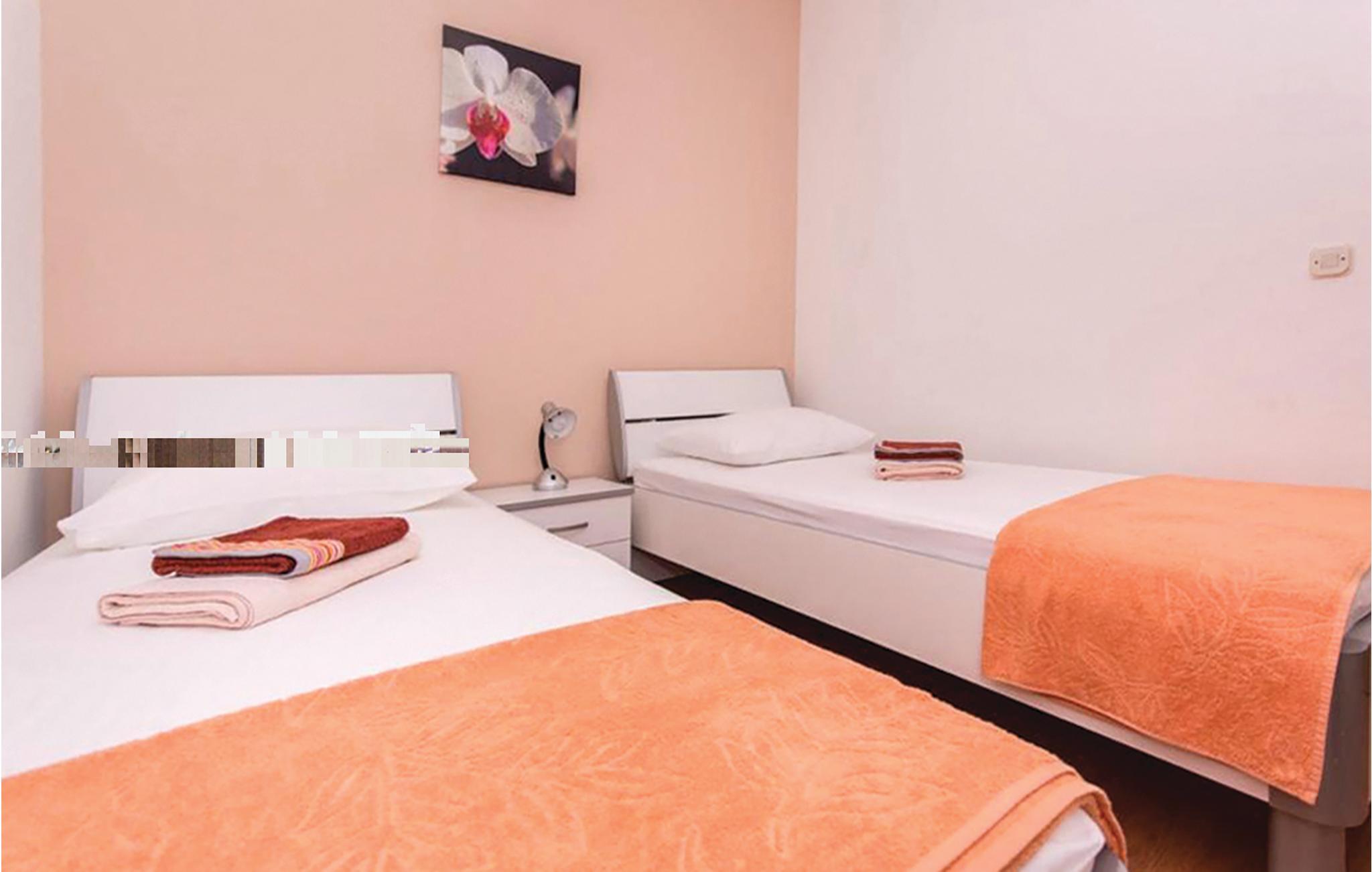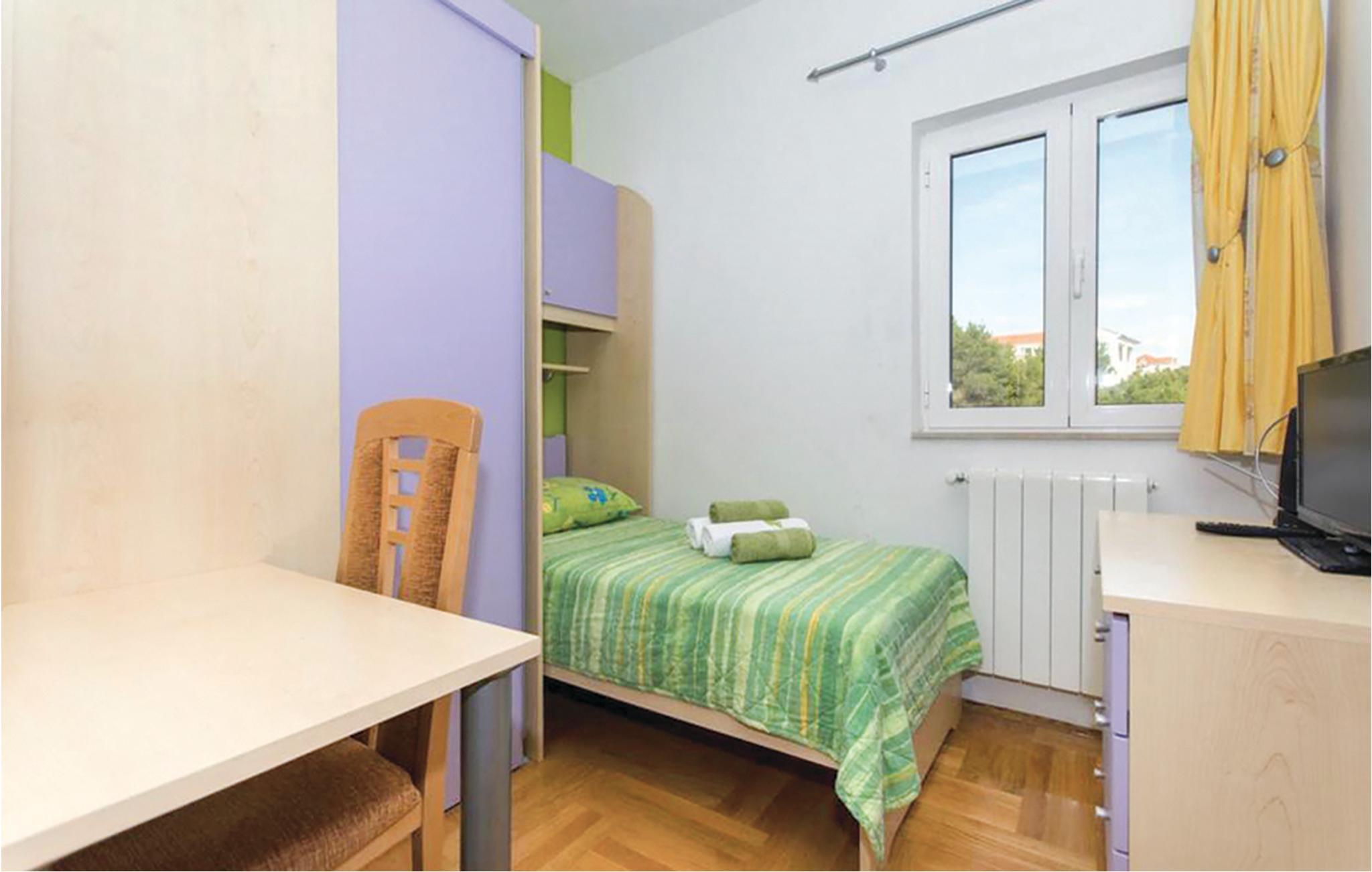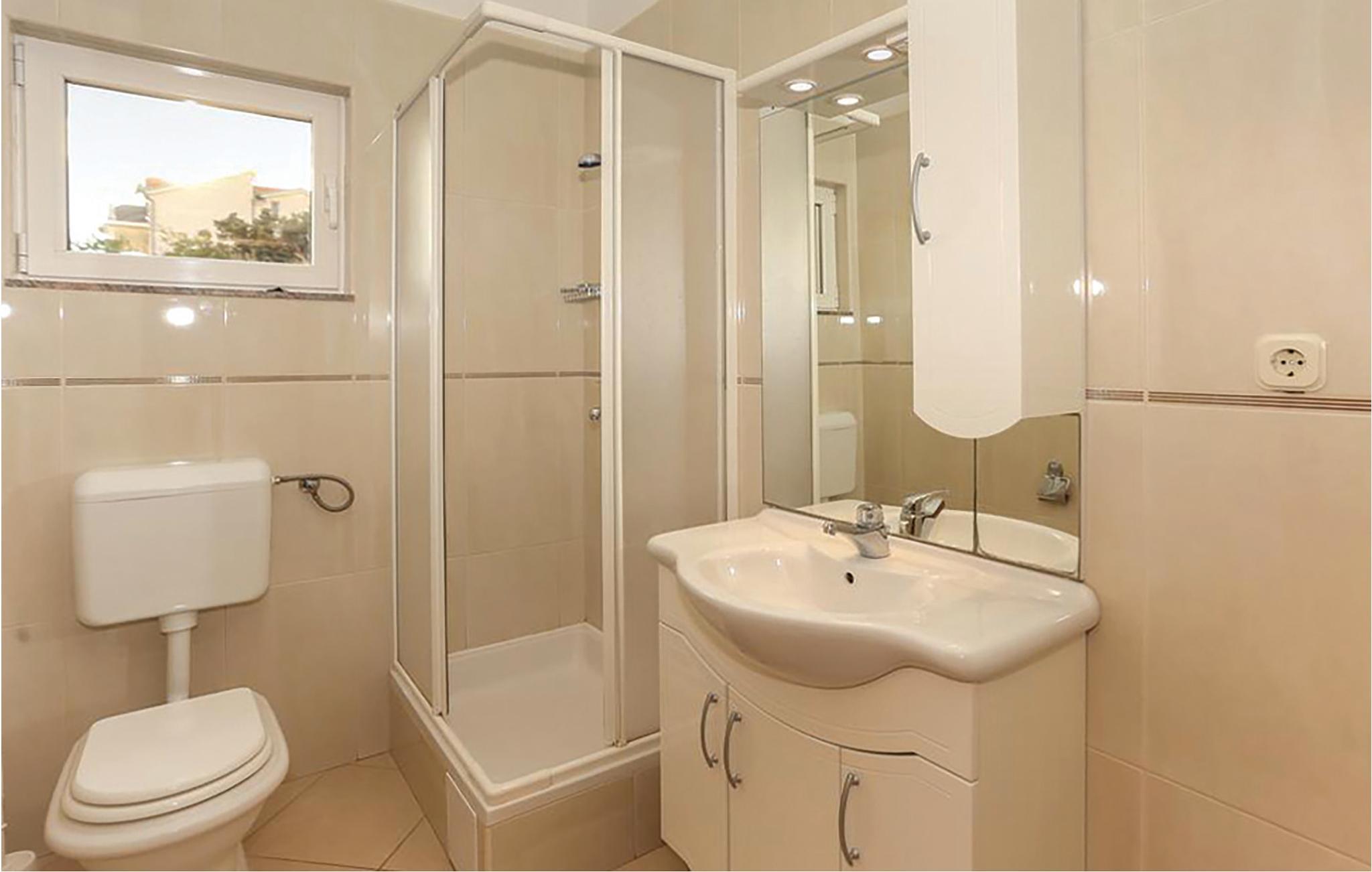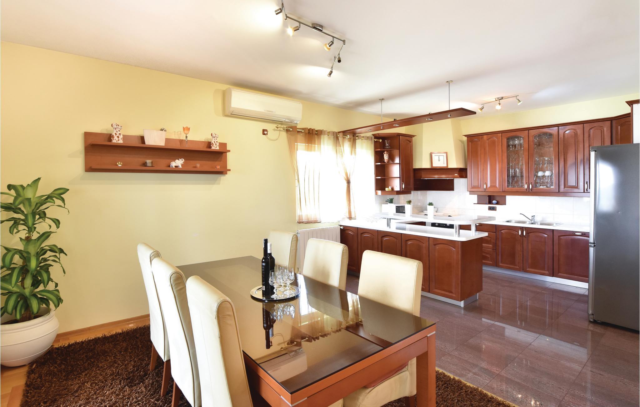 Dette feriehuset med basseng ligger på en høyde med panoramautsikt over havet og tilbyr deg uforglemmelige ferieøyeblikk. Det består av fem separate boenheter, noen med utvendige trapper og et separat rom med bad i første etasje, som vist på plantegningen. Tilbring hyggelige timer på terrassen foran sommerkjøkkenet, mens barna svømmer ubekymret i bassenget. Gjester på jakt etter avslapning vil få sine forventninger oppfylt. Den barnevennlige rullesteinstranden ligger ca 800 m unna. Besøk den historiske byen Trogir (4 km). Gå heller ikke glipp av en tur til Split, der Diokletian-palasset og Domnius-katedralen venter på deg.