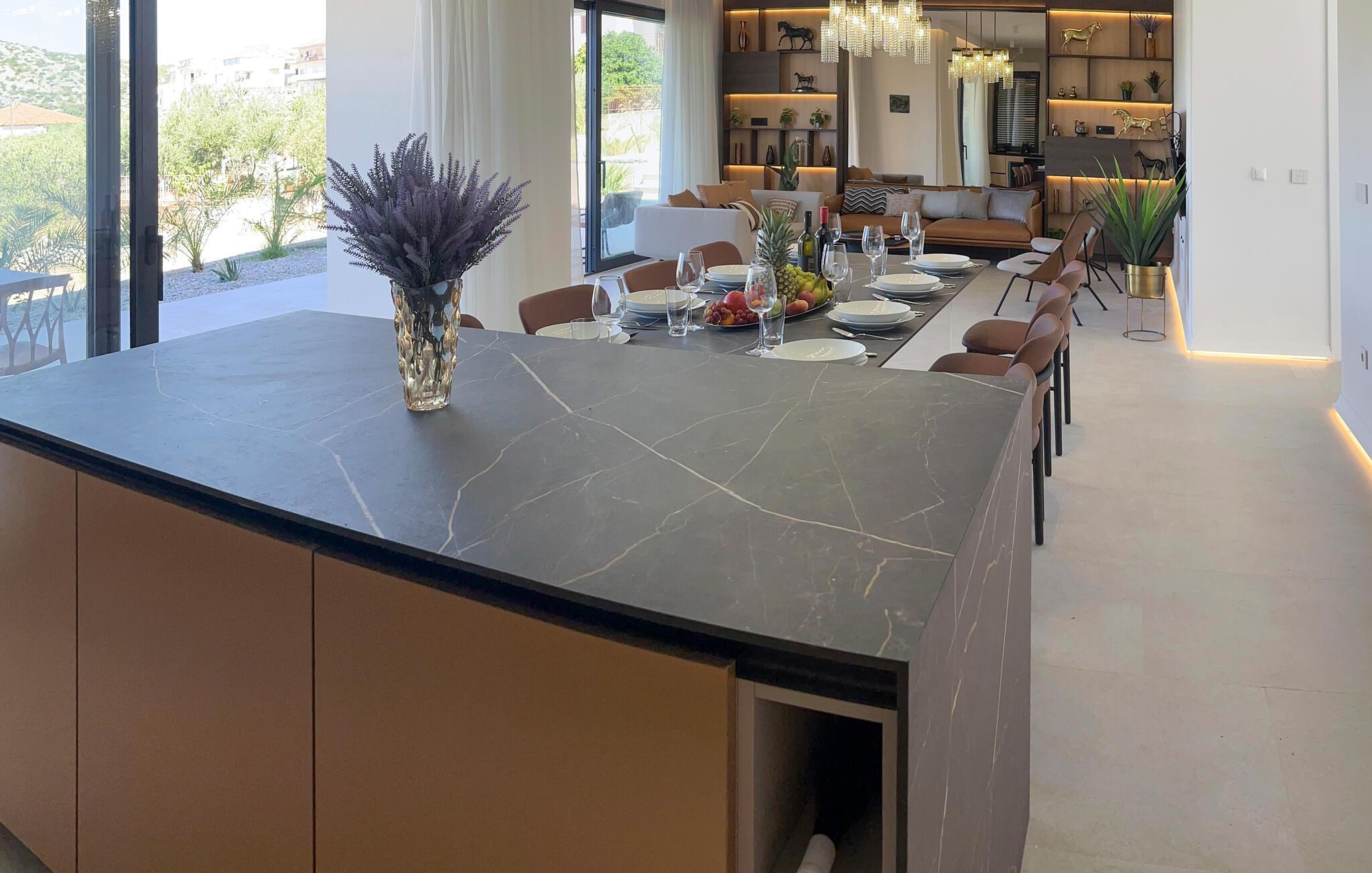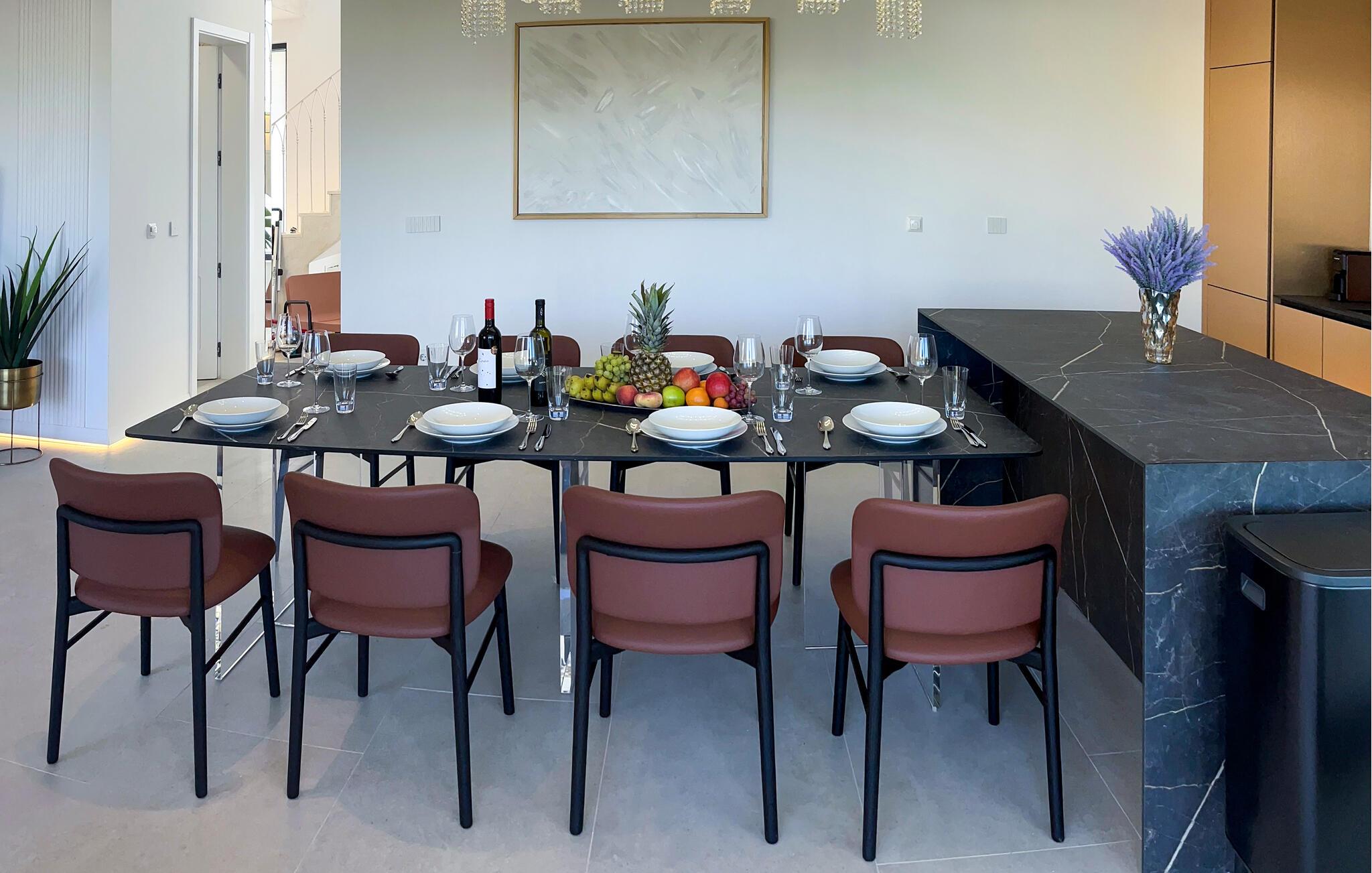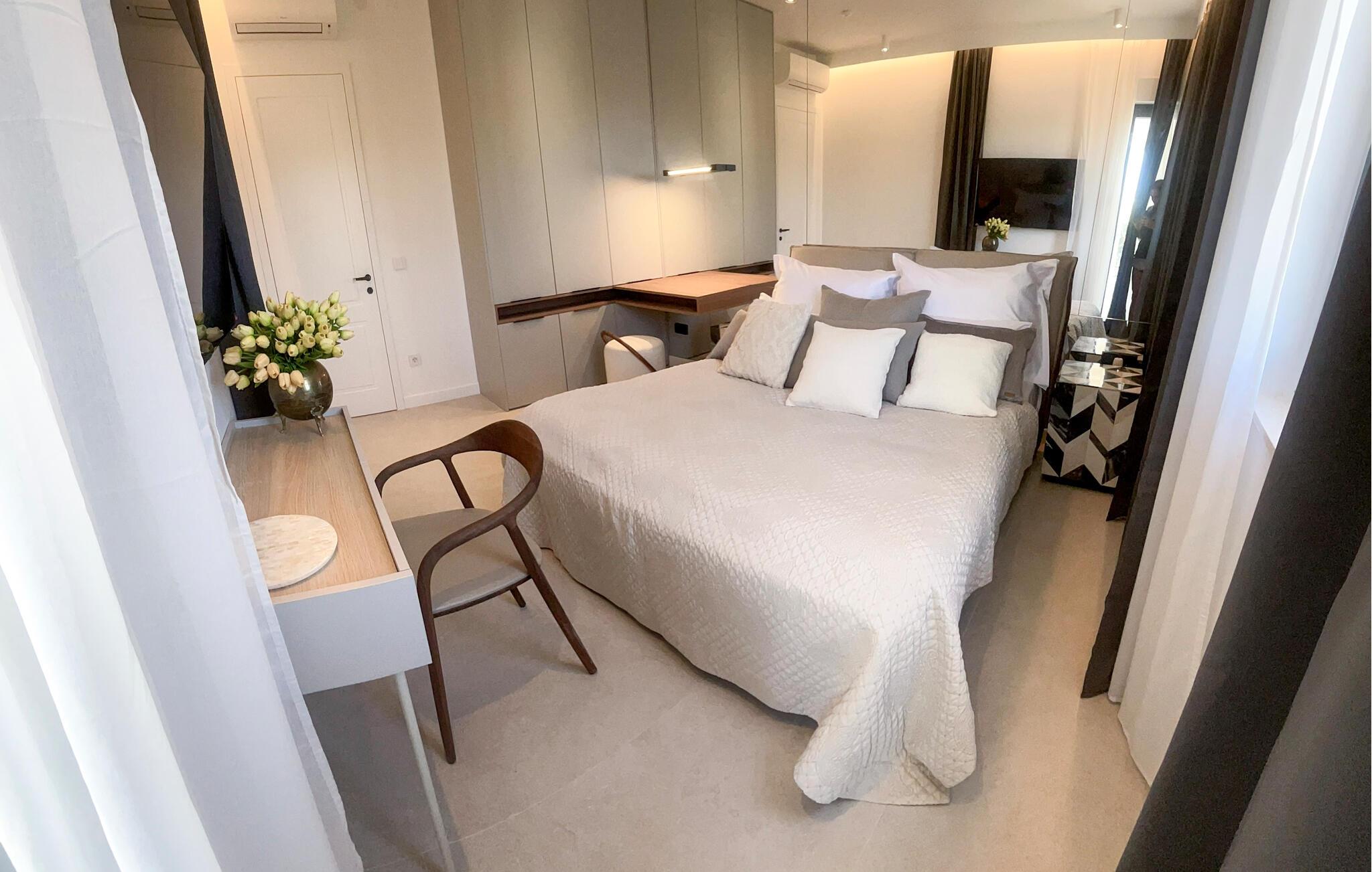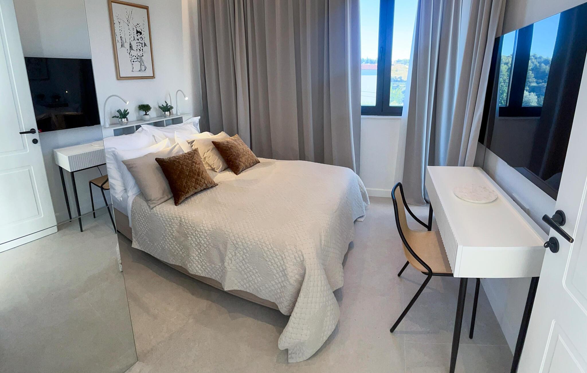 Dette feriehuset av høy kvalitet vil skjemme deg bort med et romslig interiør innredet med stilfulle designermøbler og en fortryllende utsikt over den turkise bukten. La deg friste av kulinariske høydepunkter og nyt harmoniske måltider ved det innbydende spisebordet. Om kvelden kan du prate i den koselige stuen eller slappe av med en god film.
