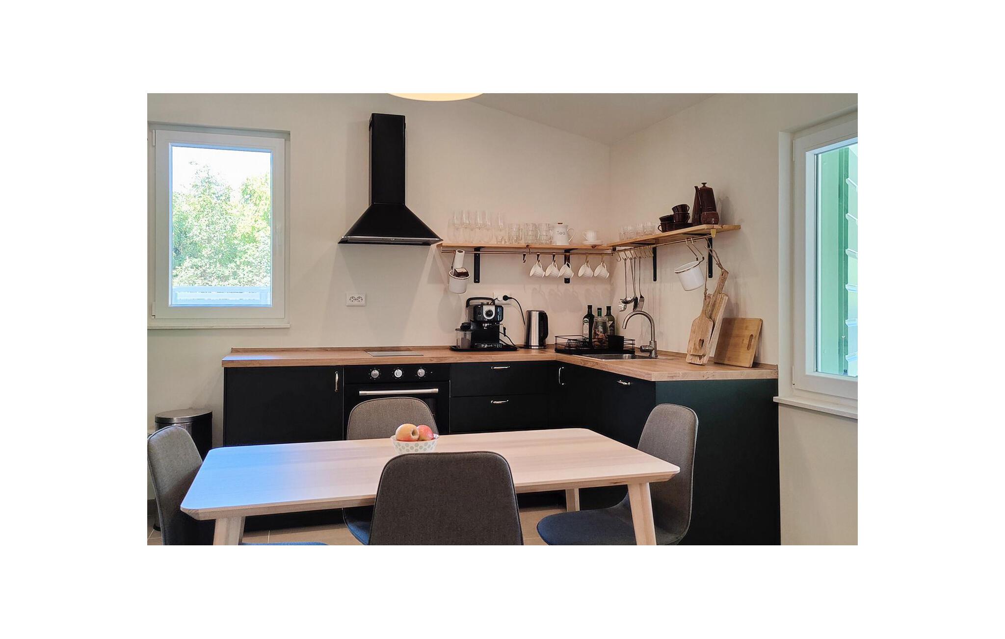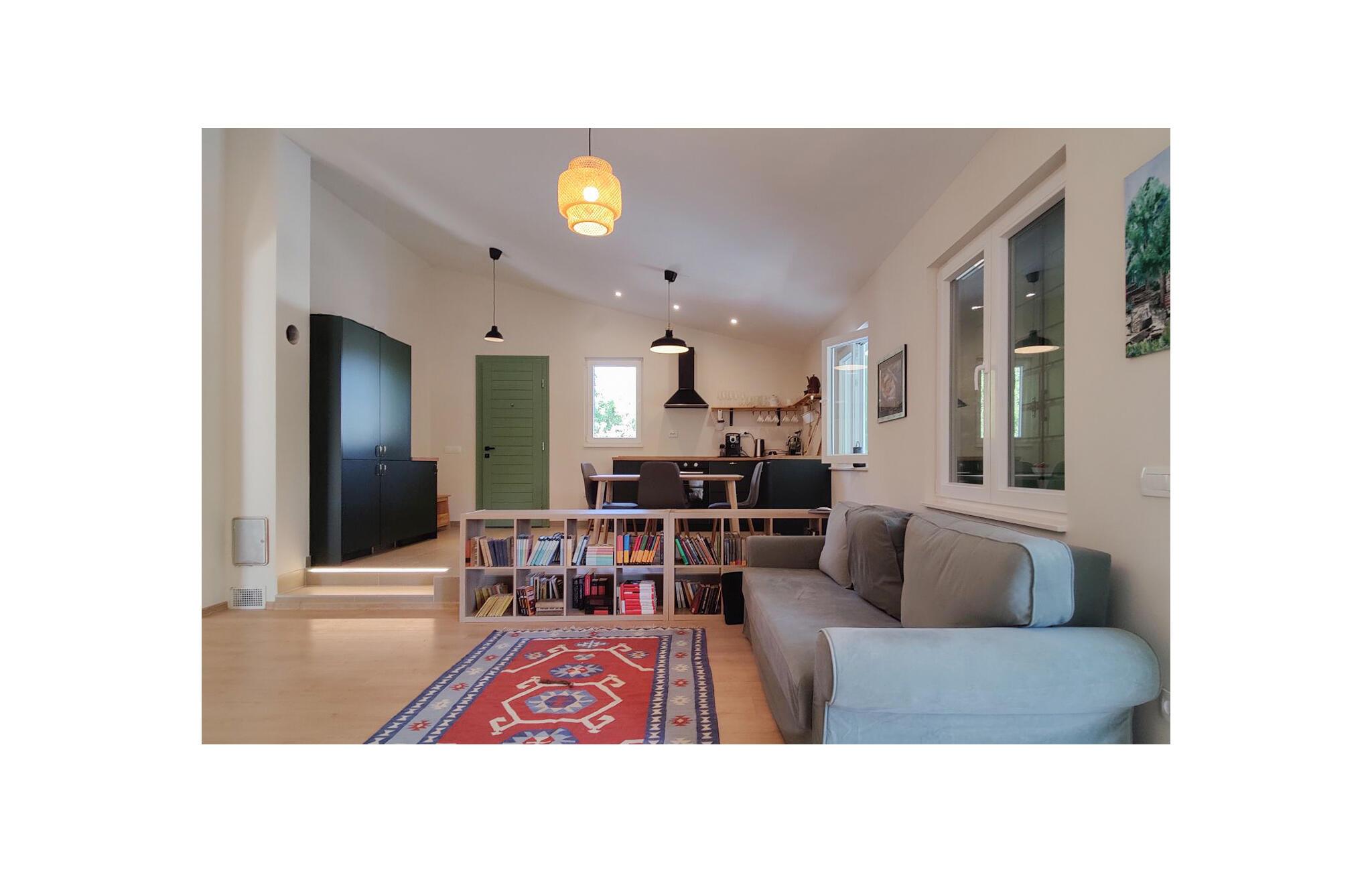 Smakfull innredning og en koselig, hjemmekoselig atmosfære venter på deg i dette sjarmerende feriehuset, hvor du kan komme deg bort fra alt sammen med dine kjære. Bruk det moderne, åpne kjøkkenet til å trylle frem kulinariske høydepunkter, og sett deg godt til rette i den koselige sofaen om kvelden for å se en spennende film eller bla i en god bok i husets bibliotek.