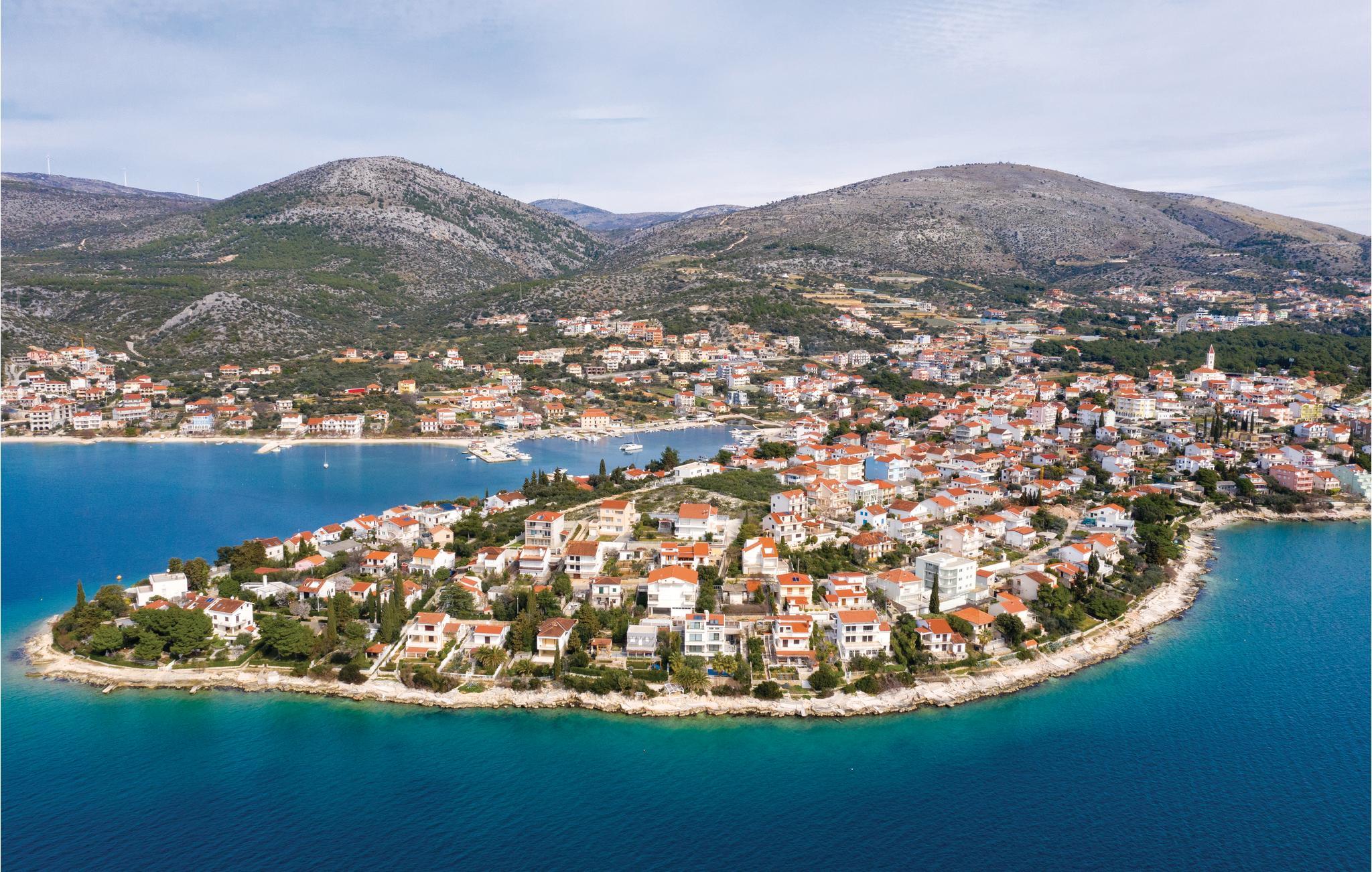 Denne enkelt innredede ferieleiligheten med to soverom ligger i første etasje i en enebolig. Selv om den ligger i et rolig område, er restauranter, butikker og kafeer innen gangavstand. De fleste av dem ligger rett ved stranden, som strekker seg over en hel kilometer. Det er mange underholdnings- og sportsfasiliteter ved vannkanten, samt mange båter som tar deg med på uforglemmelige utflukter til de nærliggende øyene. Byen Trogir, som står på UNESCOs liste over kulturarv, ligger bare en ti minutters kjøretur unna. Den berømte gamlebyen er vert for mange kultur- og underholdningsarrangementer i løpet av sommeren.