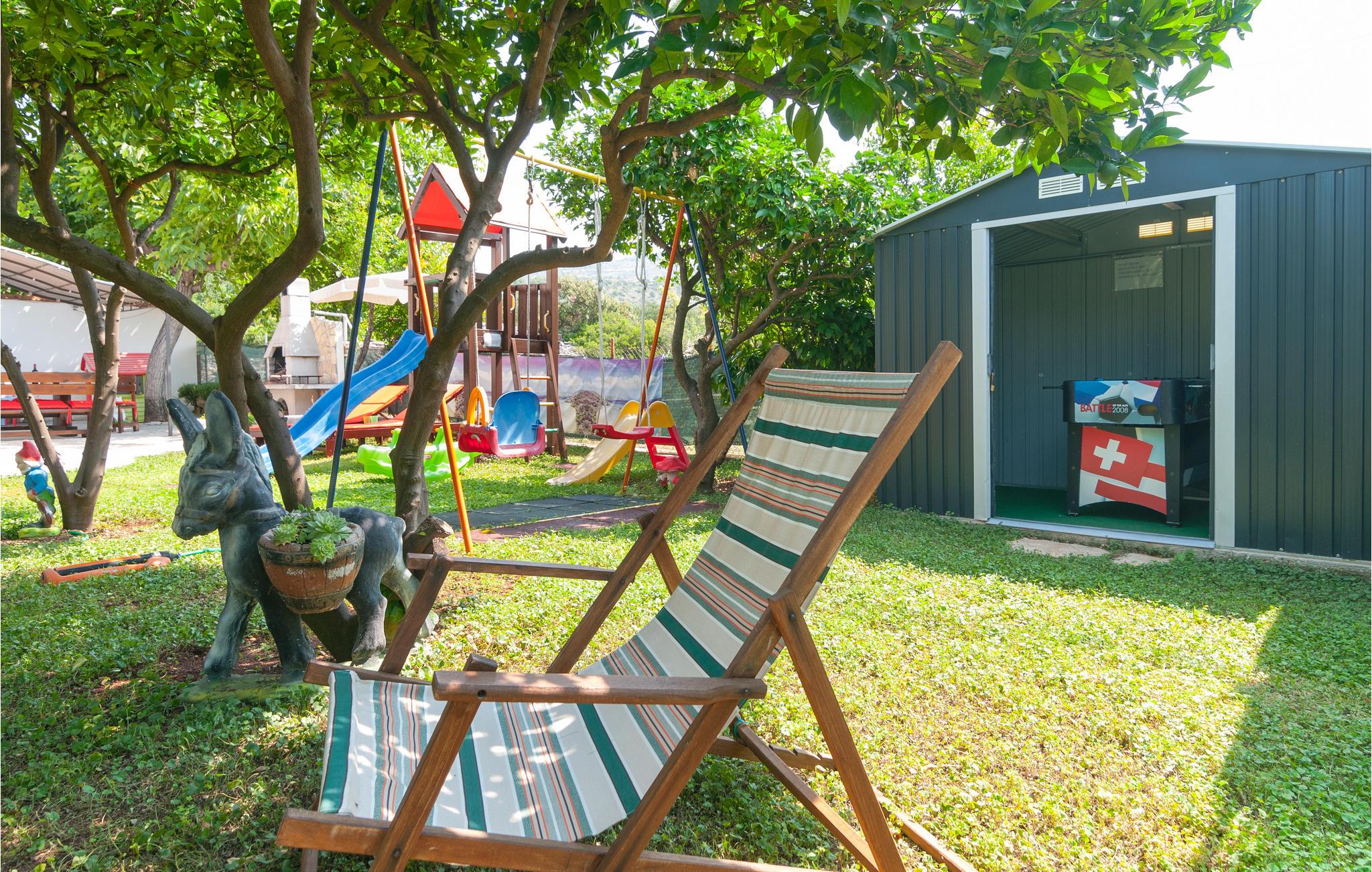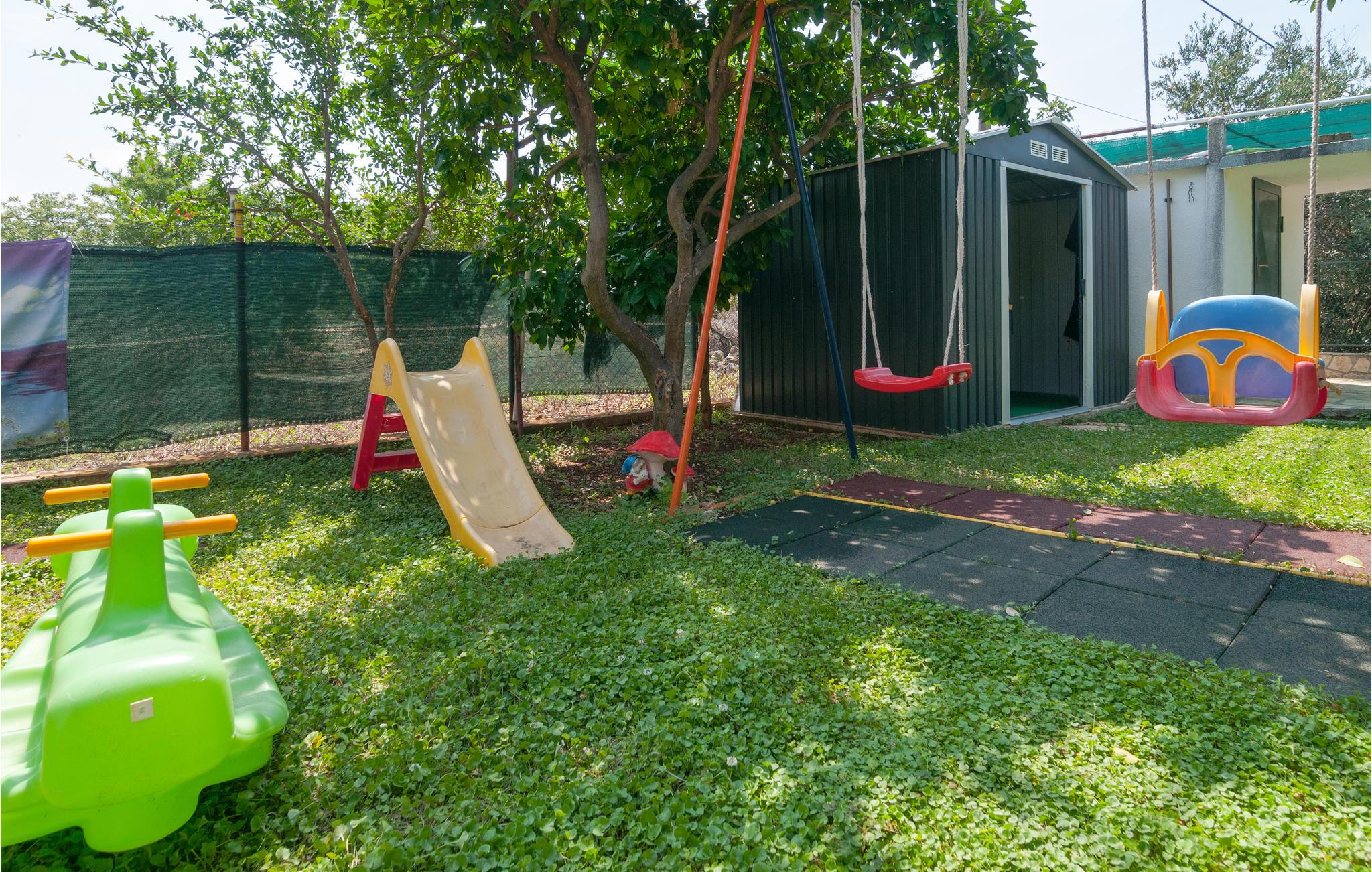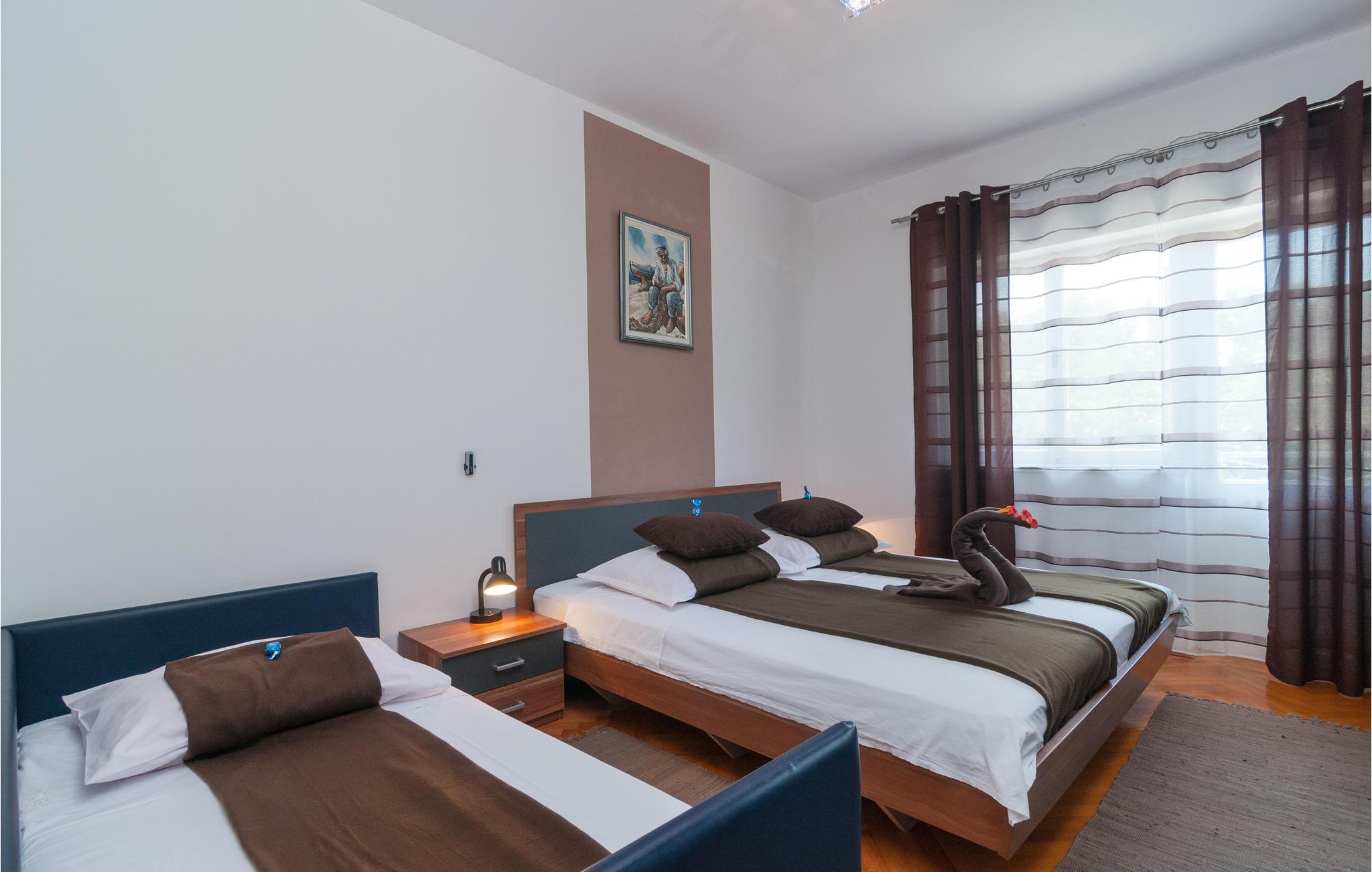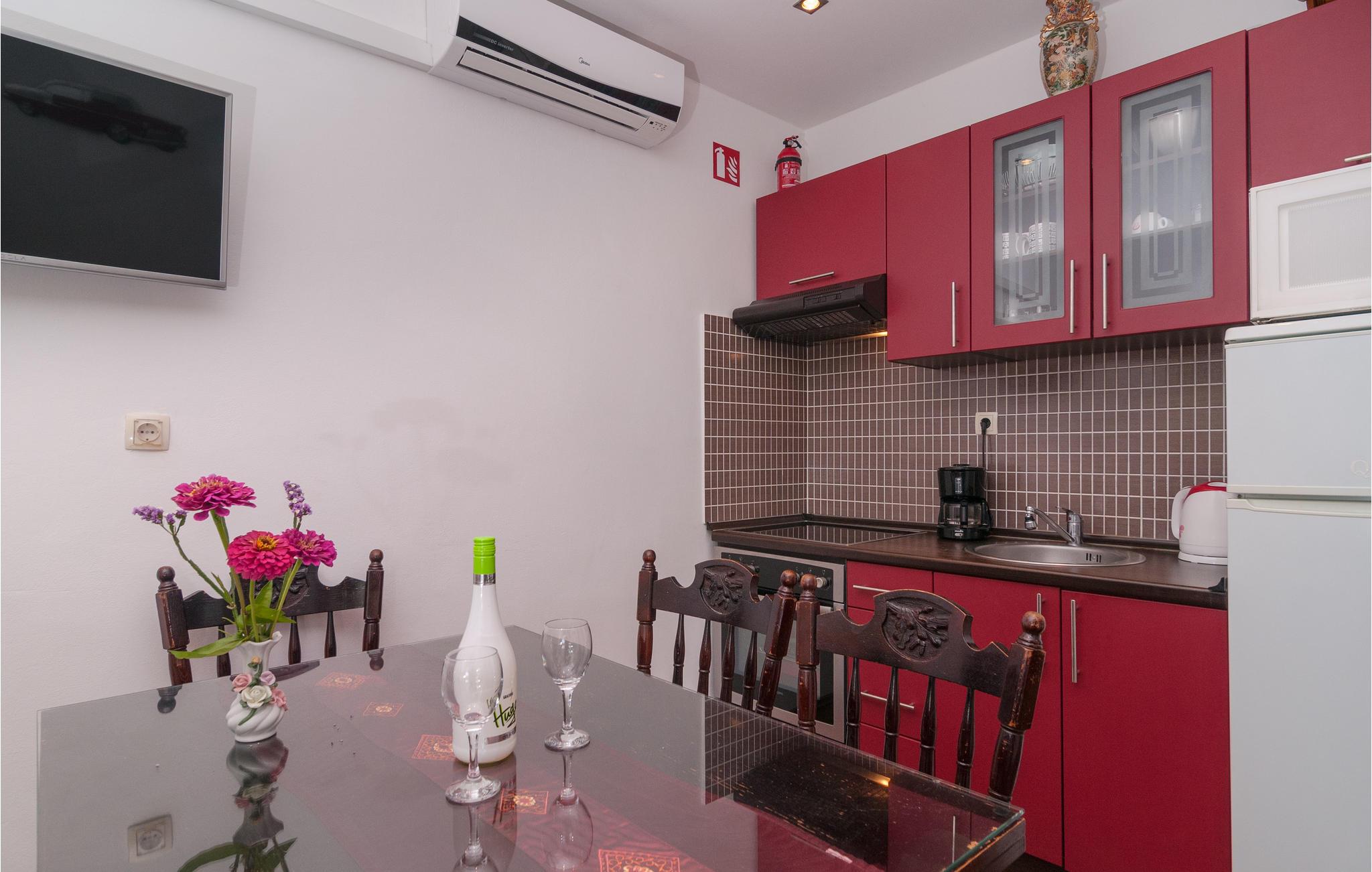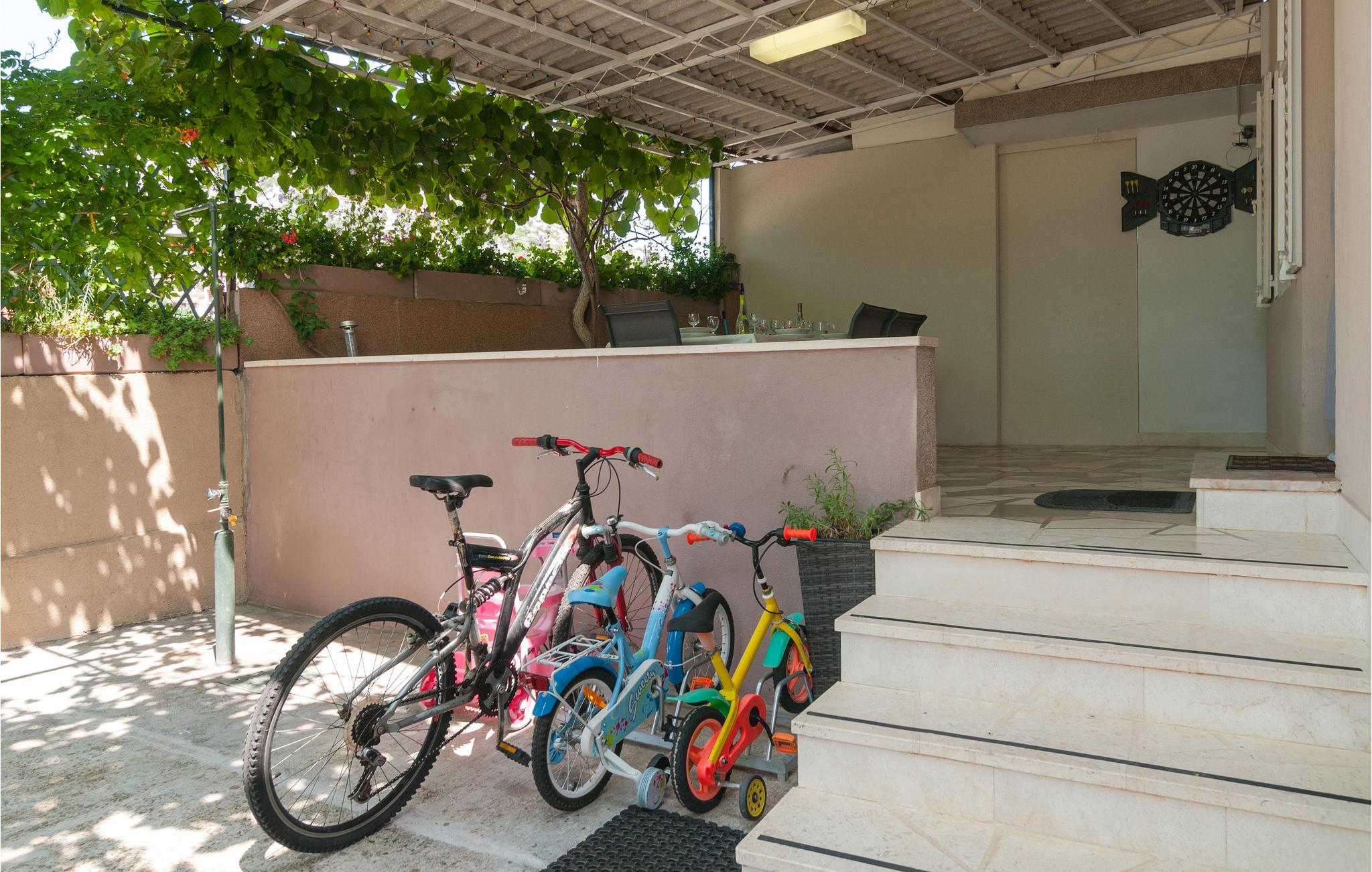 Dette enkelt, men koselig innredede feriehuset med en romslig terrasse ligger i grønne omgivelser. Eiendommen er godt egnet for en familie med barn, da eiendommen er inngjerdet. Noen få minutters gange og en hovedvei skiller eiendommen fra en rullesteinstrand med mange rekreasjonsmuligheter. En annen fordel er nærheten til byen Trogir og dermed nærheten til den internasjonale flyplassen i Split. Her vil du nyte en fantastisk sommerferie borte fra folkemengdene, og hvis du leter etter underholdning og fritidsaktiviteter, finner du dem i de nærliggende byene Trogir og Split. Besøk i gamlebyen byr på morsomme spaserturer, vandring og restaurantbesøk. Det er 2 barnesykler tilgjengelig.