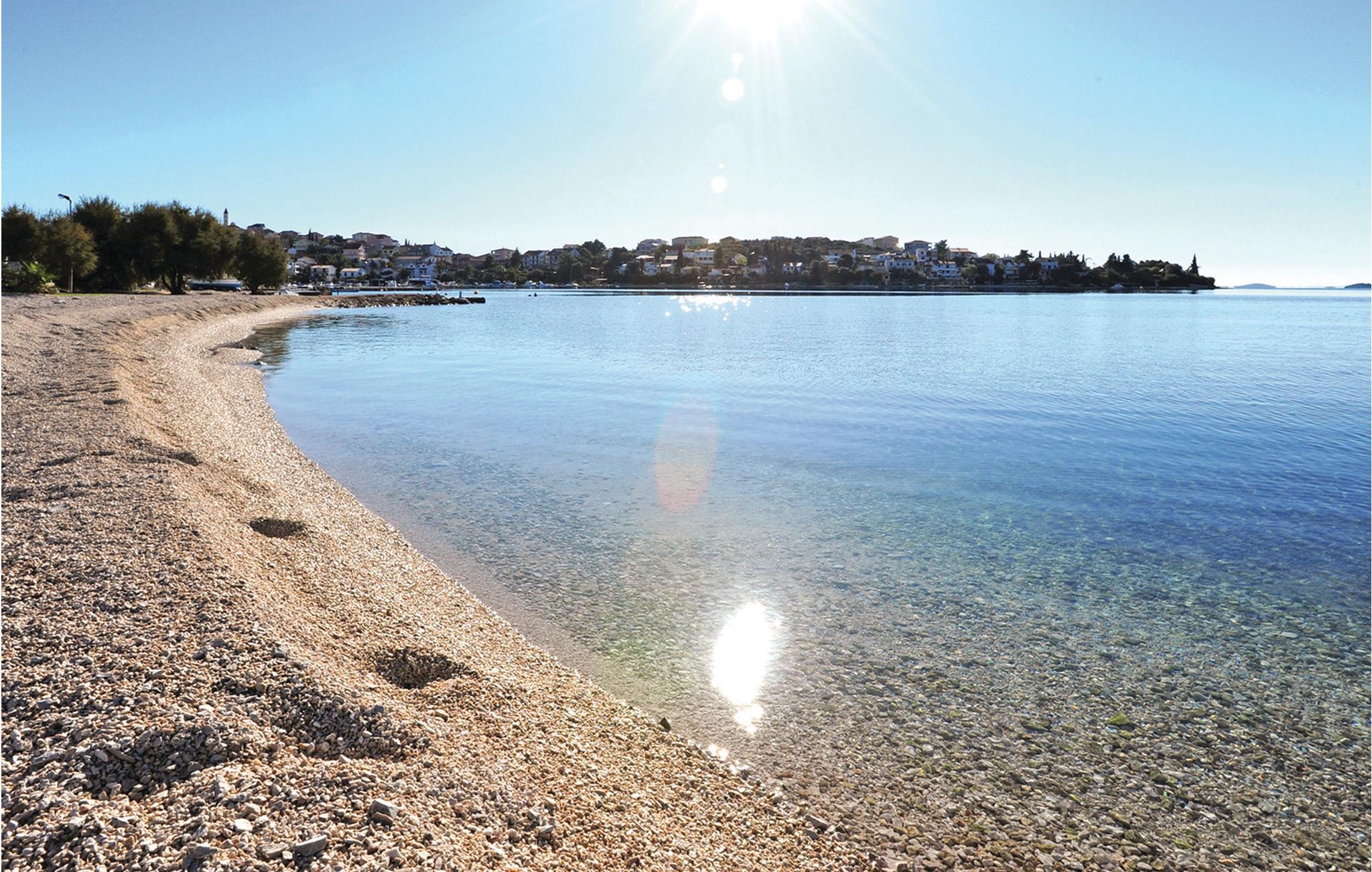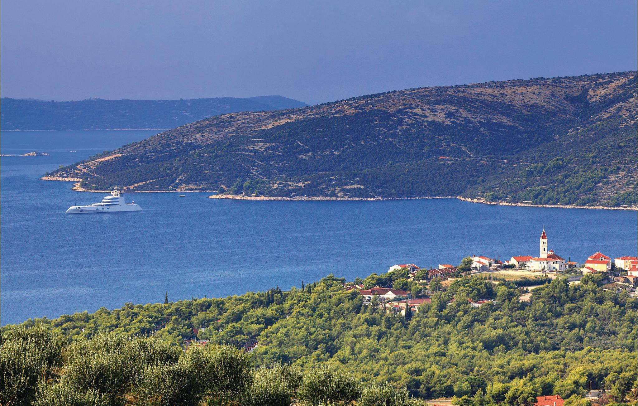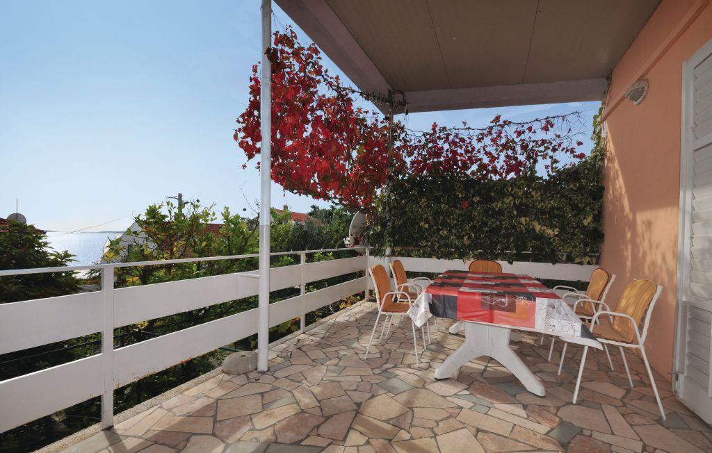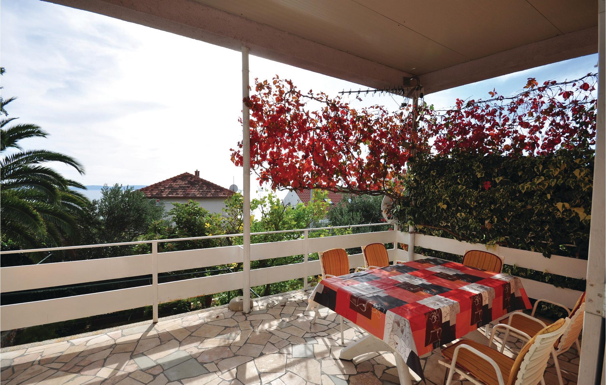Du okkuperer mellometasjen i dette huset. De andre rommene i huset leies ikke ut. Huset ligger i utkanten av den hyggelige landsbyen med steinhus, som du kan utforske under oppholdet. Huset tilbyr rikelig med fred og ro for mindre familier og par å slappe av på ferie. Fra terrassen og over det grønne området foran huset har du en vakker utsikt over havet og øyene. Det krystallklare vannet og den naturlige rullesteinstranden ligger ca 40 m fra huset. Den historiske gamlebyen i Trogir ligger 4 km unna - besøk Unescos verdensarvliste. I byen finner du alt hjertet ditt ønsker.