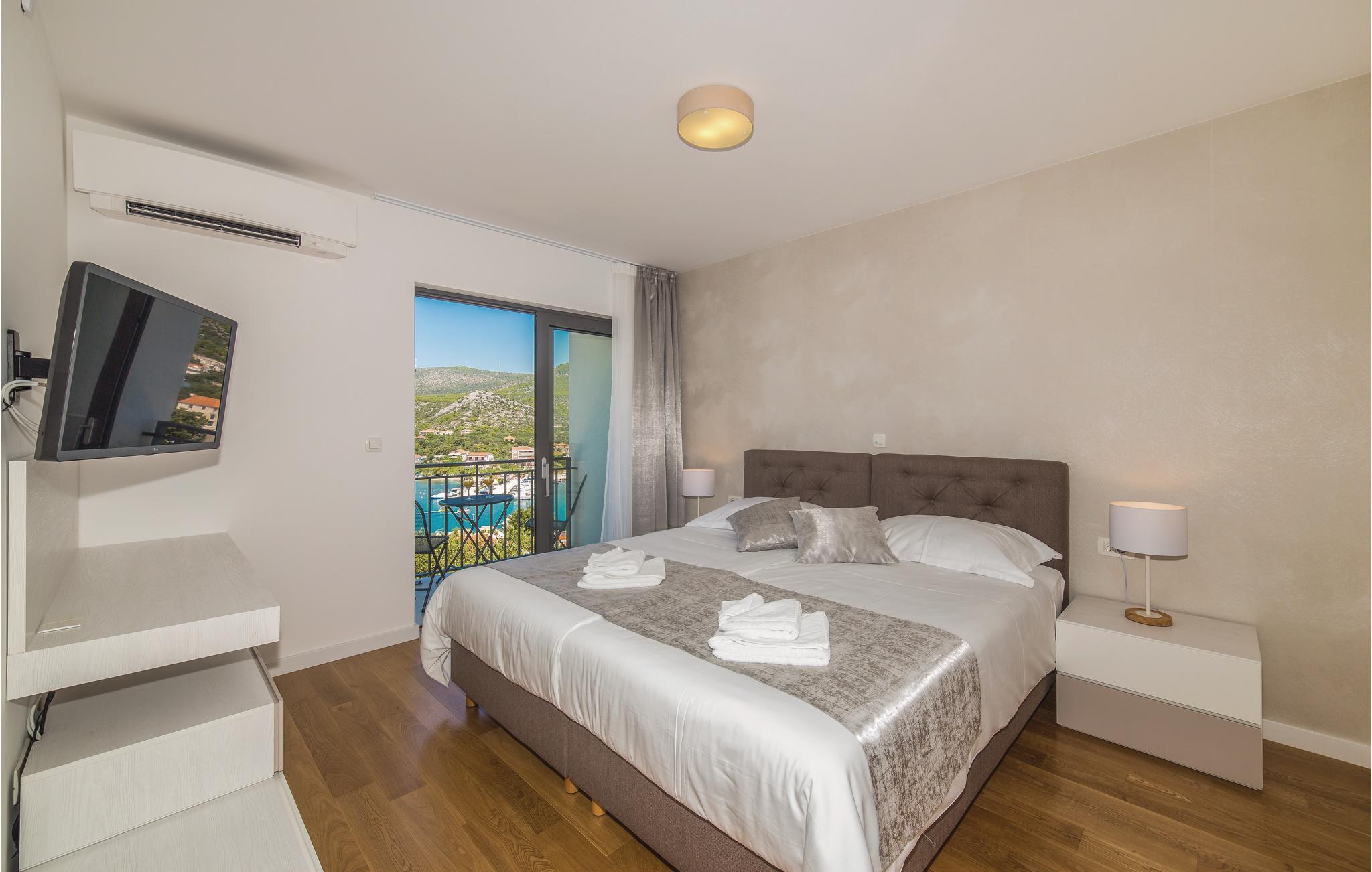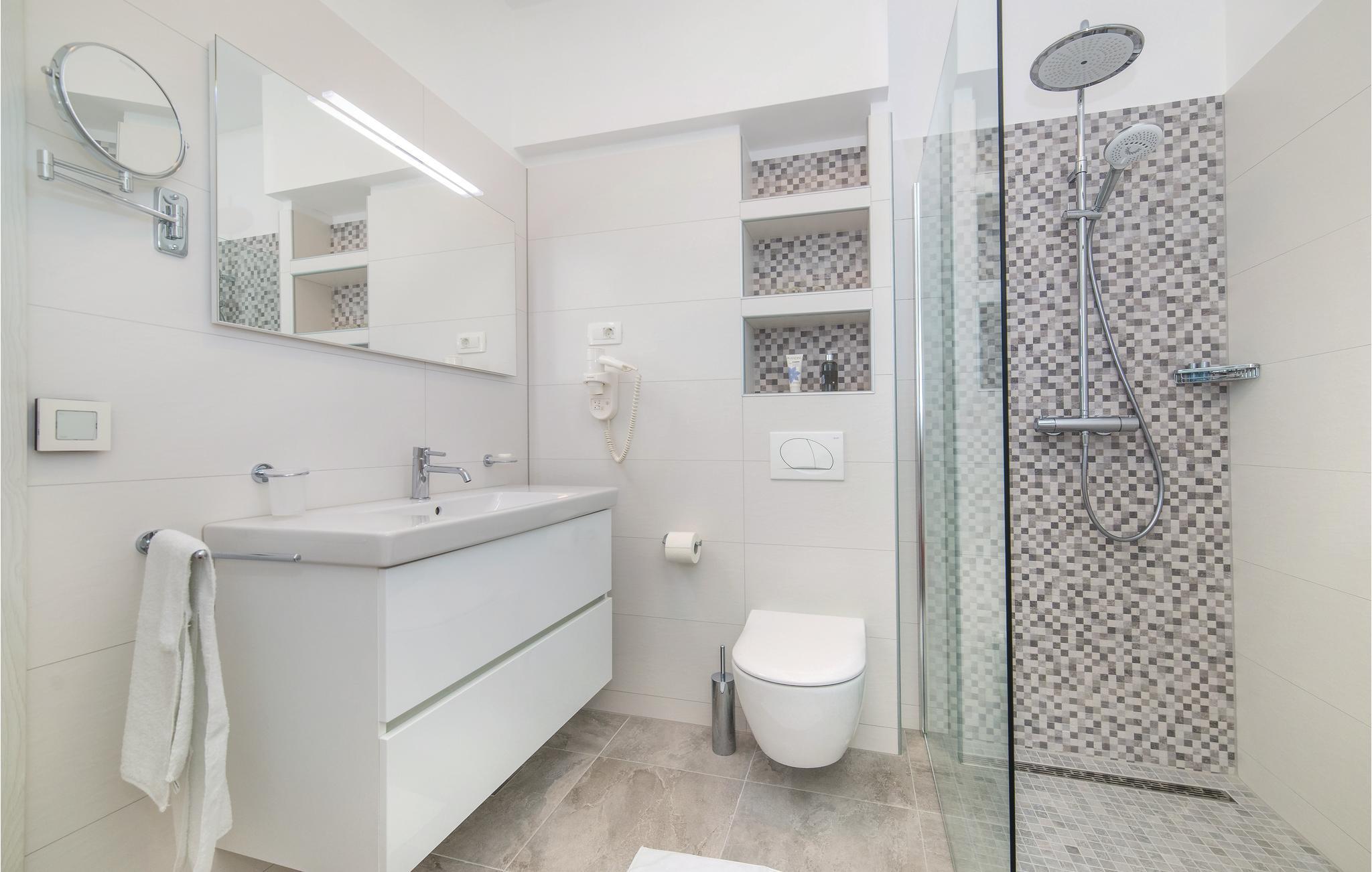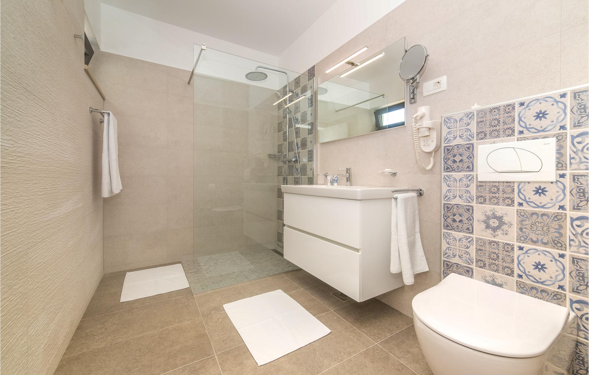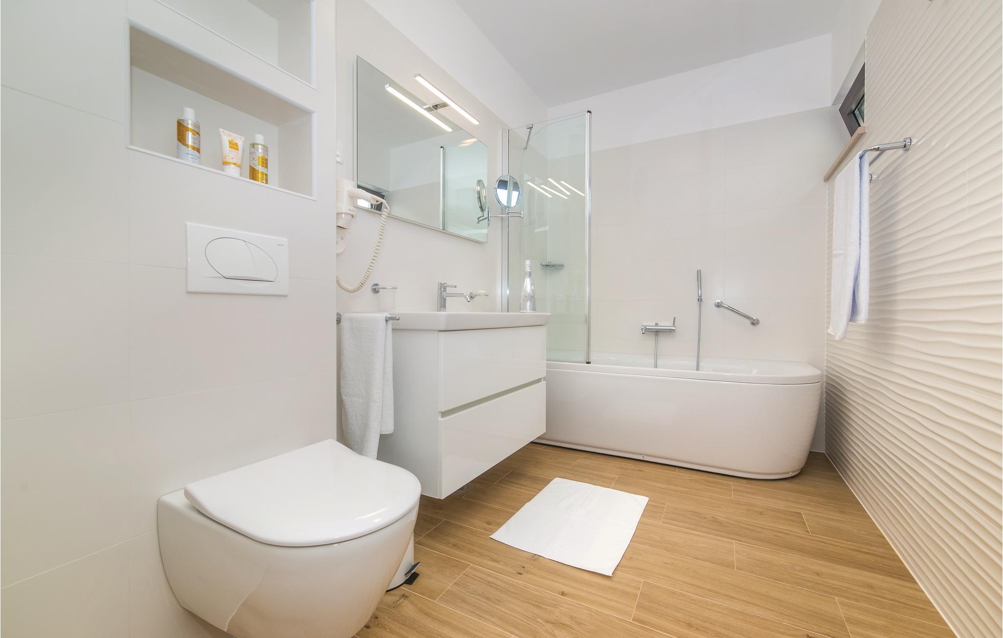 Denne nydelige villaen med basseng ligger i den lille landsbyen Trget Vranjica og har alt for å gjøre en ferie til en uforglemmelig opplevelse. De vakre møblene gir deg hygge og komfort. Badstuen og boblebadet inviterer deg til å tilbringe hyggelige timer med å slappe av, treningsrommet gir sportslig variasjon og det oppvarmede bassenget gir forfriskning selv på kjøligere dager. Ta turen til den nærliggende stranden og nyt det behagelige klimaet ved Adriaterhavet. Spaser gjennom de romantiske smugene i Trogir og beundre de gotiske, romanske, renessanse- og barokke kunstskattene som du finner mange steder i byen. Av de 4 parkeringsplassene er to dekket og en er i garasjen.