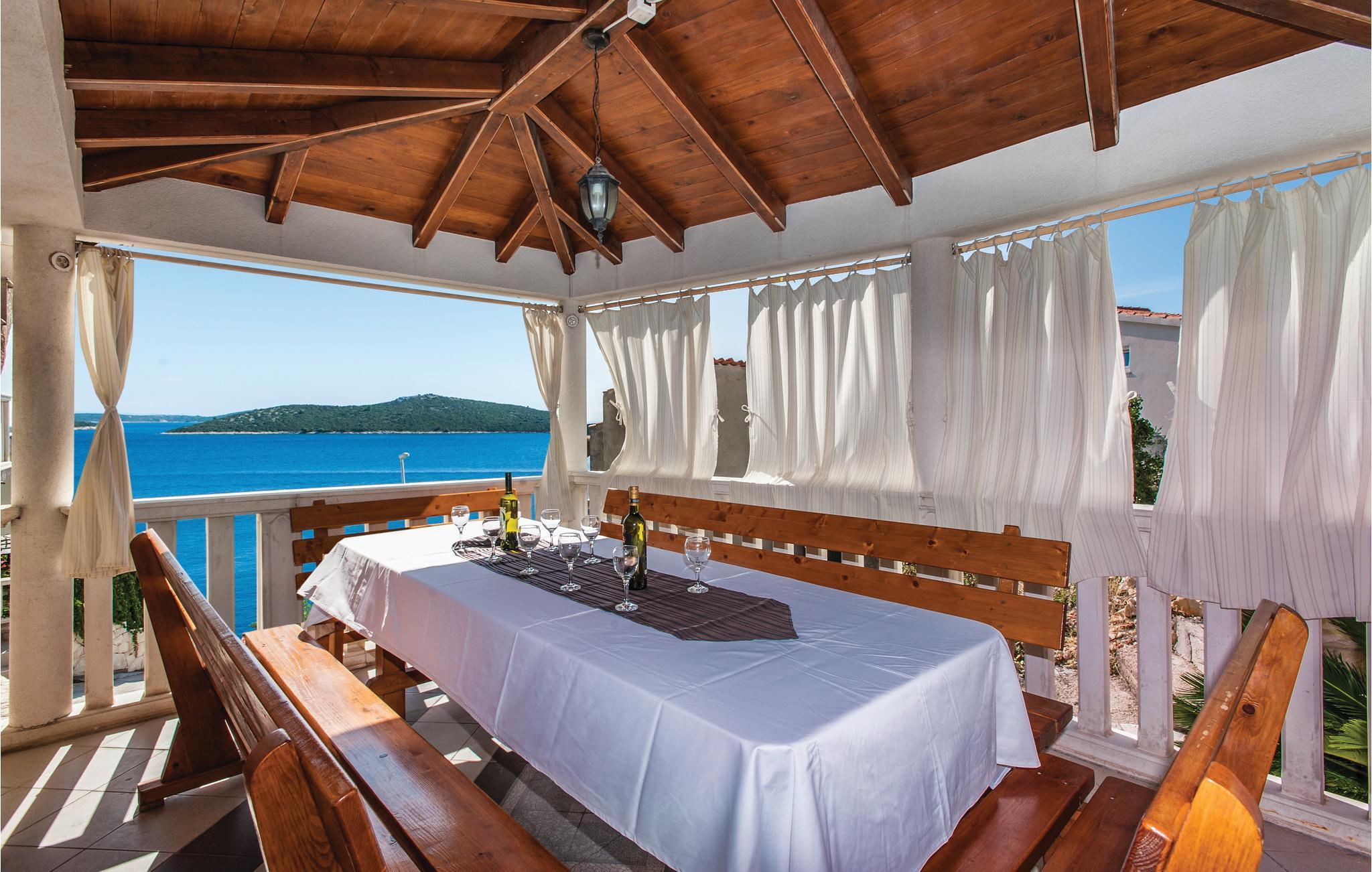 Koselig feriehus med forskjellige, moderne innredede leiligheter. Flere store terrasser gir deg en fantastisk utsikt over bukten og øyene. Det er en grill på den romslige gårdsplassen. Dette feriehuset er godt egnet for flere familier, da leilighetene er forbundet med utvendige trapper. Byen Trogir og Split internasjonale lufthavn ligger i nærheten. Unikt for Dalmatia er det to steder på UNESCOs verdensarvliste innenfor en radius på 30 km: det historiske sentrum av Trogir og Diokletians palass i Split. Byene Rogoznica og Primosten, blant andre, inviterer deg også til å oppdage dem. Den livlige byen Trogir har mange turist- og gastronomiske underholdningstilbud. Besøk Primosten noen kilometer unna og "Aurora", det mest berømte diskoteket i Dalmatia, eller ta en tur til Krka-fossene nasjonalpark.