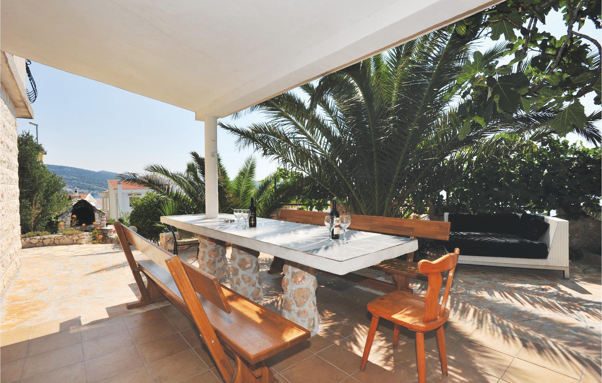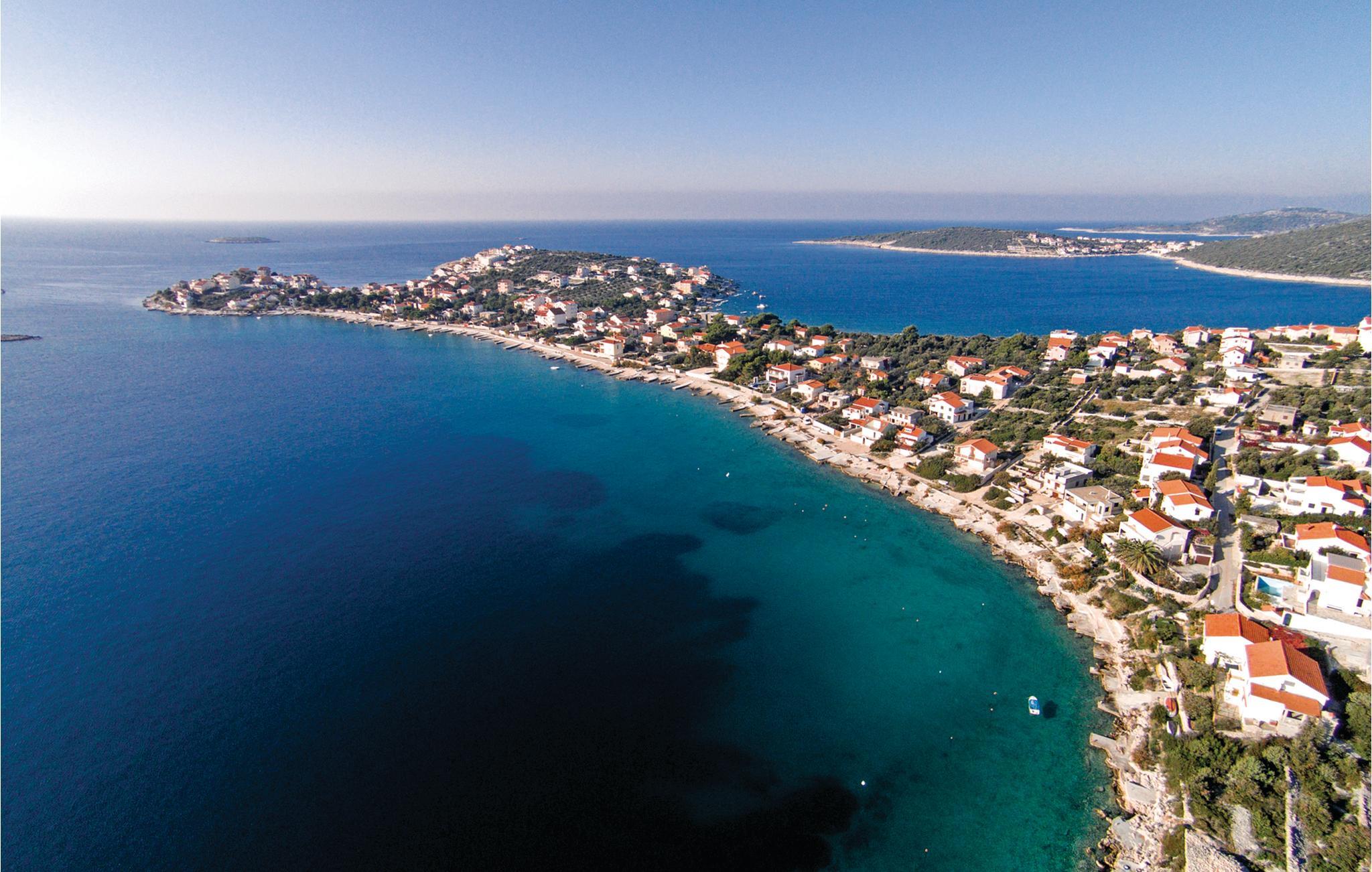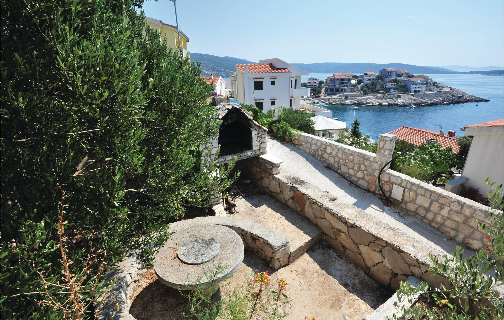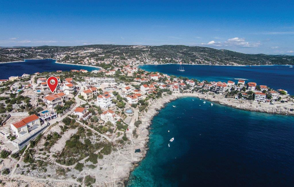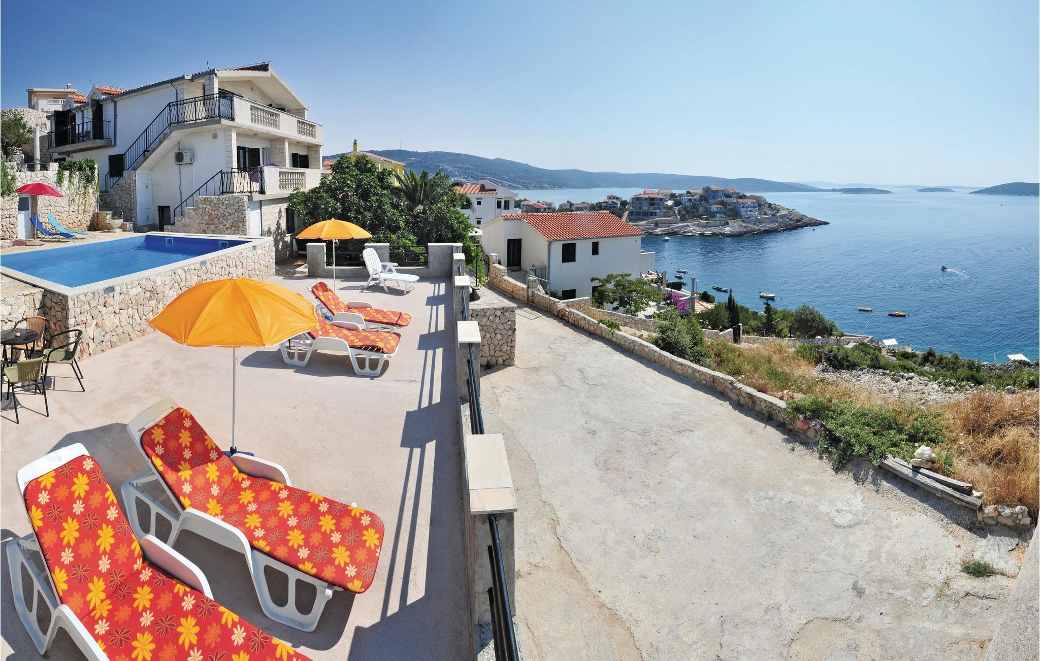 Dette store og praktisk innredede feriehuset tilbyr deg en fantastisk utsikt. En velkommen forfriskning på varme sommerdager er bassenget, hvor du kan nyte utsikten over havet enda mer. De tre etasjene i huset er forbundet med utvendige trapper. I første etasje er kjøkken, stue, spisestue, bad og toalett, mens soverommene er fordelt på etasjene. Den historisk interessante byen har også mange turistattraksjoner. Laveste takhøyde på loftet er 1,60 m. Vanskelig tilgang, veien gjennom Sevid er delvis asfaltert. Nærliggende byer er Rogoznica og Marina, som er verdt et besøk. I Rogoznica er det også den moderne ACI Marina Frapa, som tilbyr et bredt spekter av aktiviteter. Det er også et stort kultur- og underholdningsprogram i Trogir for alle generasjoner. For alle festglade anbefaler vi Club Aurora i Primoten, som er den mest berømte klubben i Dalmatia, og god stemning er garantert.