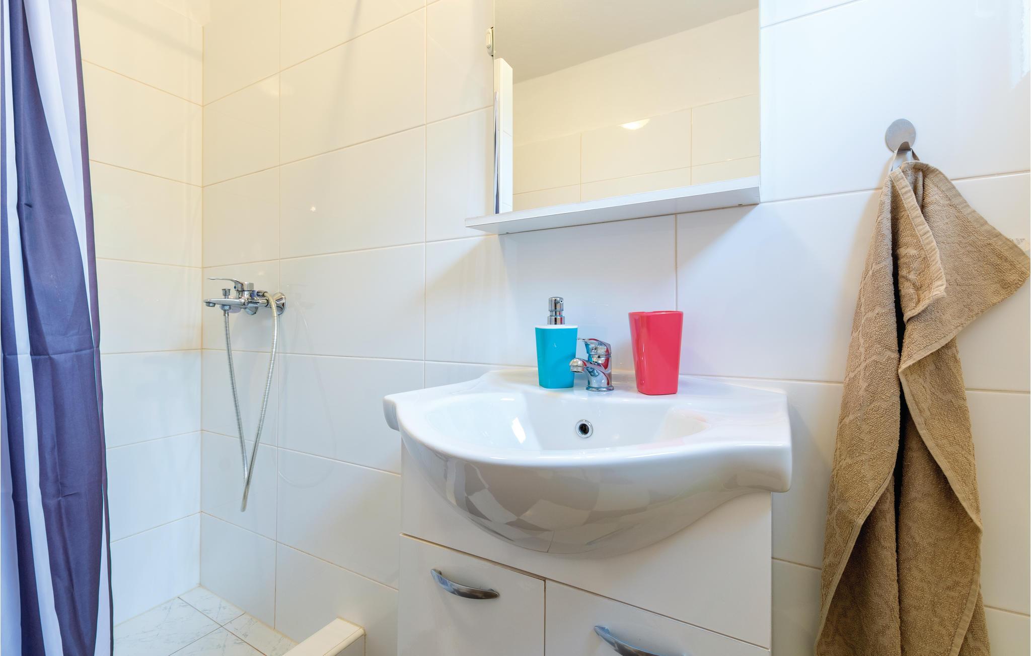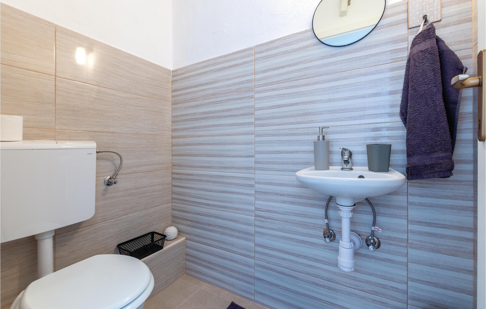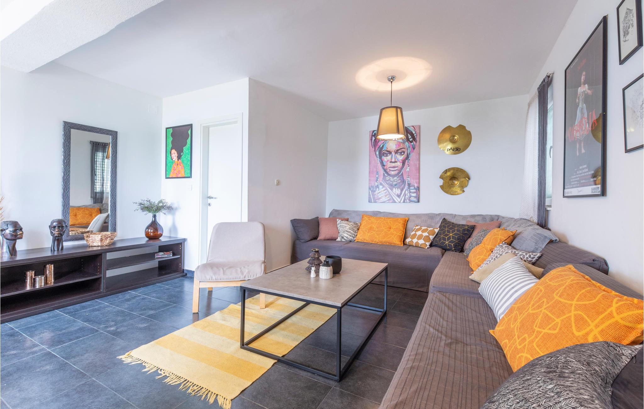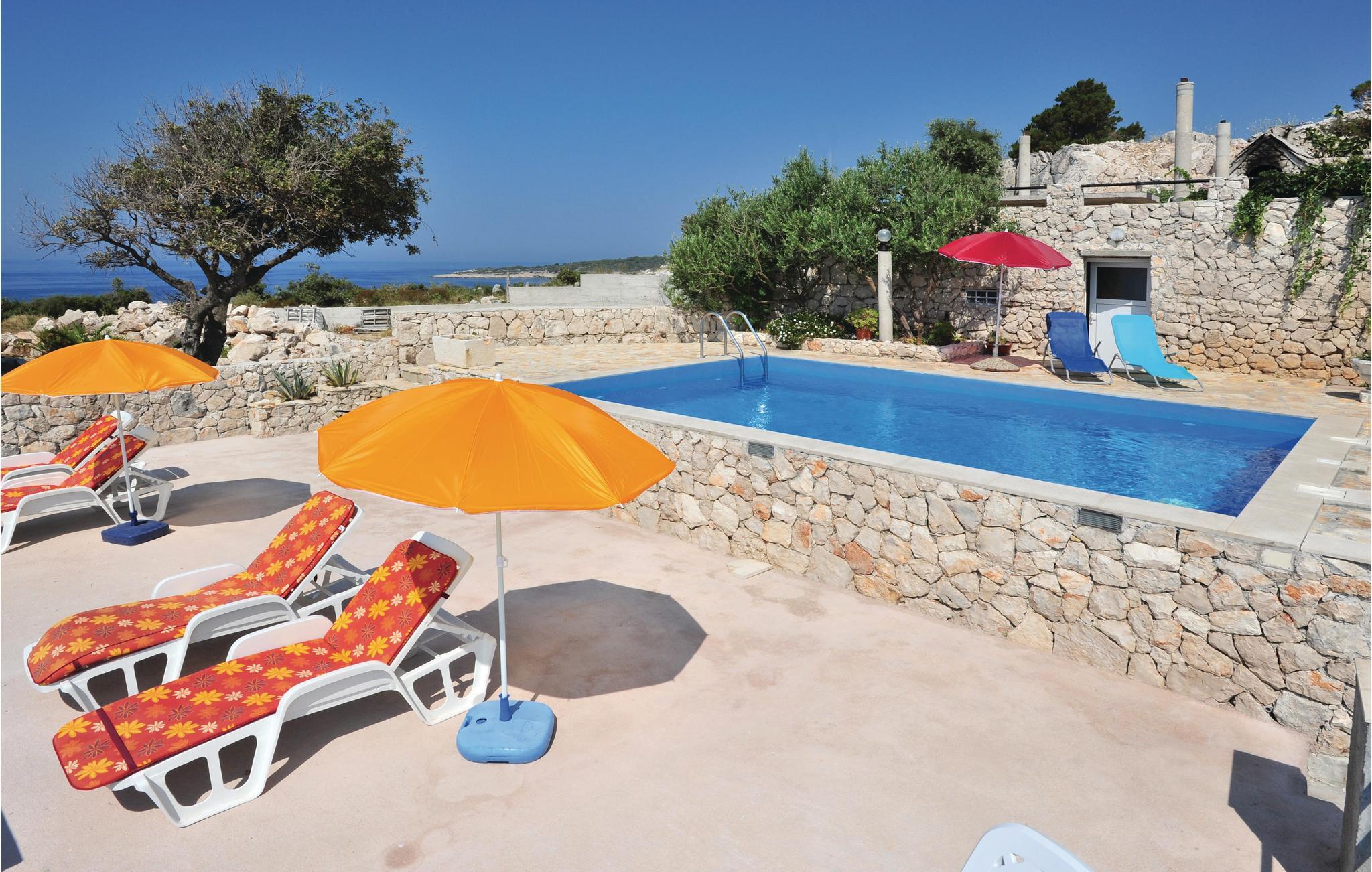 Dette store og praktisk innredede feriehuset tilbyr deg en fantastisk utsikt. En velkommen forfriskning på varme sommerdager er bassenget, hvor du kan nyte utsikten over havet enda mer. De tre etasjene i huset er forbundet med utvendige trapper. I første etasje er kjøkken, stue, spisestue, bad og toalett, mens soverommene er fordelt på etasjene. Den historisk interessante byen har også mange turistattraksjoner. Laveste takhøyde på loftet er 1,60 m. Vanskelig tilgang, veien gjennom Sevid er delvis asfaltert. Nærliggende byer er Rogoznica og Marina, som er verdt et besøk. I Rogoznica er det også den moderne ACI Marina Frapa, som tilbyr et bredt spekter av aktiviteter. Det er også et stort kultur- og underholdningsprogram i Trogir for alle generasjoner. For alle festglade anbefaler vi Club Aurora i Primoten, som er den mest berømte klubben i Dalmatia, og god stemning er garantert.