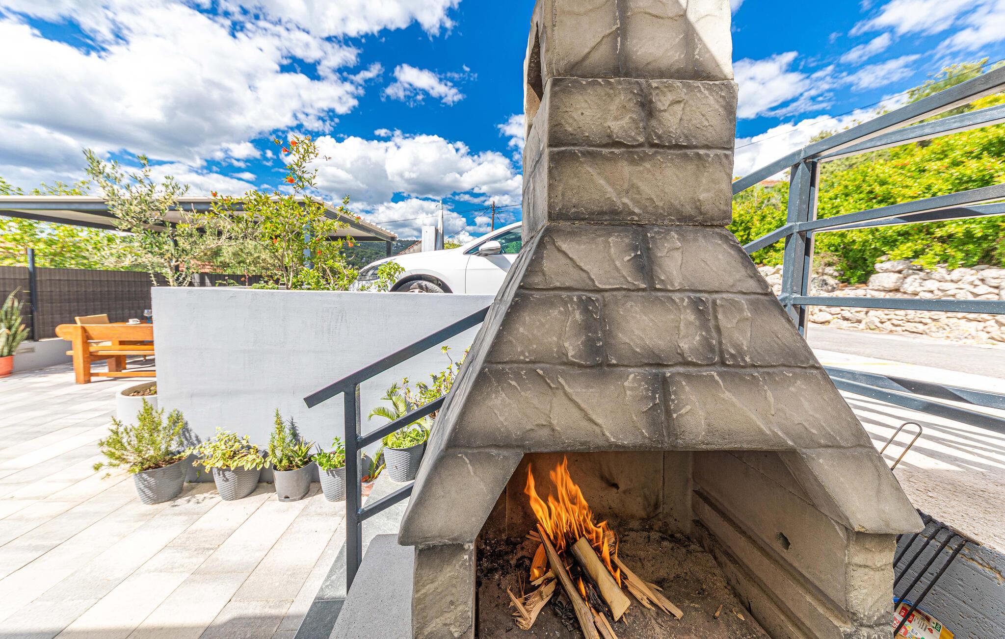 Ankom og føl deg som hjemme. De koselige møblene med moderne detaljer skaper en behagelig atmosfære. Det kjærlig utformede interiøret gir deg god komfort og inviterer deg til å bli værende. Her finner du alt du trenger for en bekymringsfri ferie. Tilbered frokosten på kjøkkenet og gå ut på den overbygde terrassen. Den familiære atmosfæren i feriehuset passer perfekt inn i omgivelsene. Takket være husets beliggenhet har du en fantastisk panoramautsikt over bukten, som du kan nyte fra den store solterrassen. Bruk den murte grillen til koselige kvelder og slapp av ved bassenget.