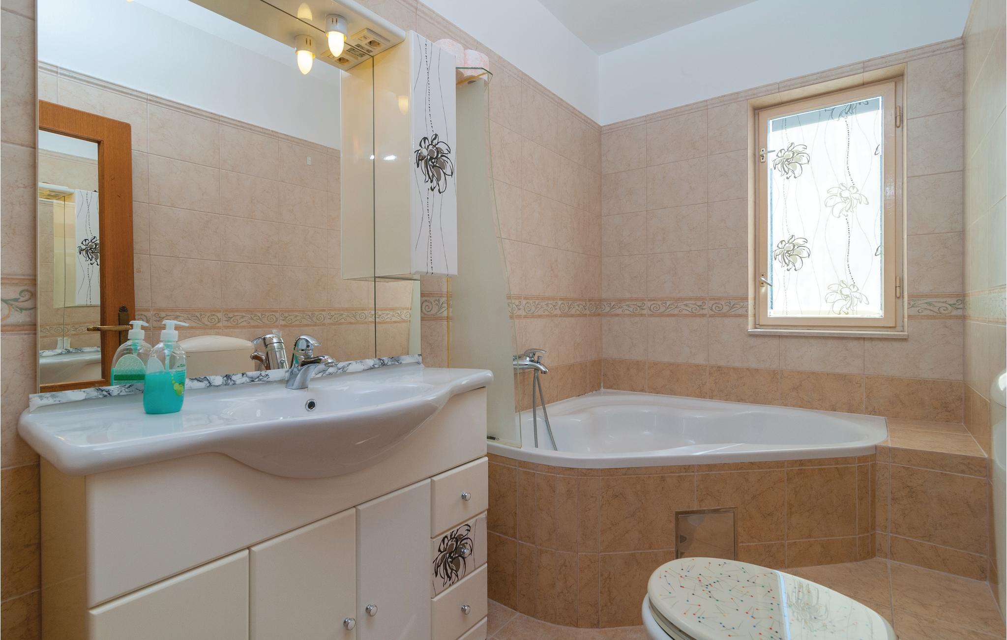 Den komfortable ferieleiligheten ligger i første etasje i et familiehus og består av tre romslige soverom, bad, toalett, stue, kjøkken med spiseplass og et utekjøkken med bord, benker og utepeis, som innbyr til grillmat. Leiligheten har også en stor overbygd terrasse og en balkong med fantastisk utsikt over havet og den nærliggende halvøya. Du finner en vakker rullesteinsstrand ca. 160 meter unna, og sentrum av historiske Trogir, som står på UNESCOs verdensarvliste, ligger ca. 1,5 km unna. Ta en spasertur langs gatene i gamlebyen som fører til strandpromenaden, som er full av utmerkede barer og restauranter. Et besøk til byen Split, som har et pulserende sentrum med mange severdigheter og interessante sommerarrangementer, anbefales også på det sterkeste. Øya Iovo er forbundet med fastlandet med en bro, og her kan du slappe av fra det fargerike bylivet i pittoreske og grønne omgivelser. Prøv de lokale produktene som fiken, oliven og vin, som også dyrkes der. Øya er også kjent for sin rike flora og eksport av medisinske og aromatiske planter. I tillegg til bading og soling har naturelskere også muligheten til å ta turen opp til fjellet Rudine, hvor du har en fantastisk utsikt over omgivelsene som du sent vil glemme.