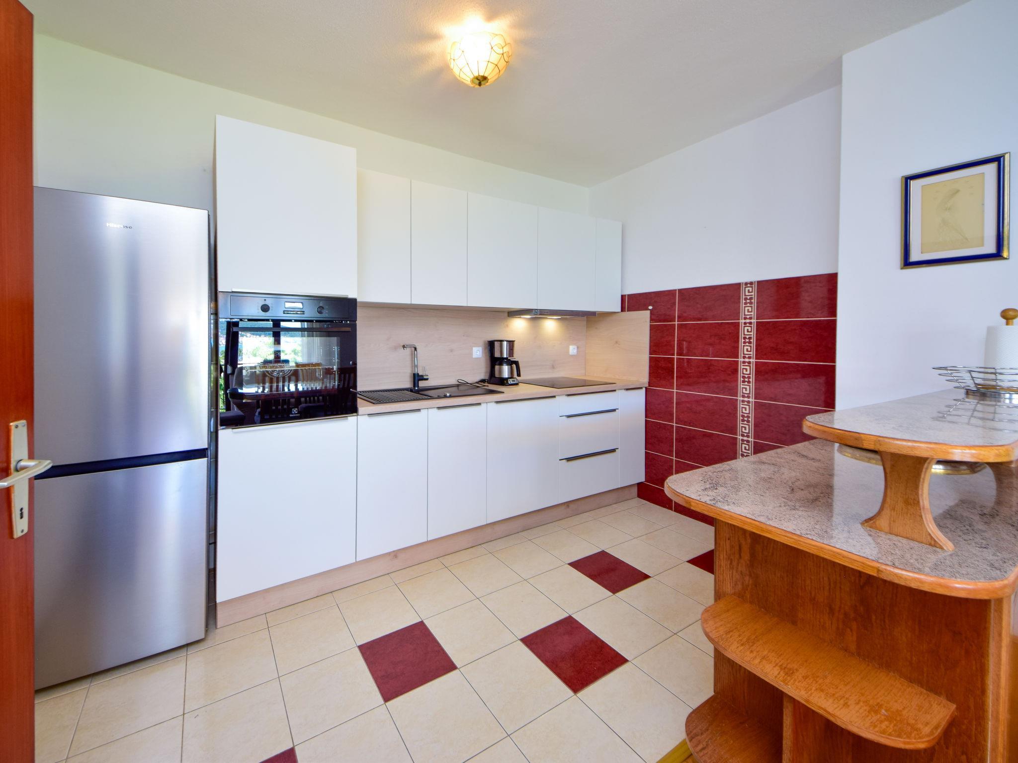 "Pantan", 3-room apartment 98 m2 on 2nd floor. Living/dining room with satellite TV and air conditioning. Exit to the balcony. 1 room with 1 french bed (180 cm, length 200 cm). 1 room with 1 x 2 bunk beds (90 cm, length 200 cm). Open kitchen (oven, dishwasher, 4 ceramic glass hob hotplates, kettle, microwave, freezer, electric coffee machine). Bath/bidet/WC. No heating option. Balcony 12 m2. Balcony furniture. Beautiful panoramic view of the sea. Facilities: washing machine. Internet (WiFi, free).