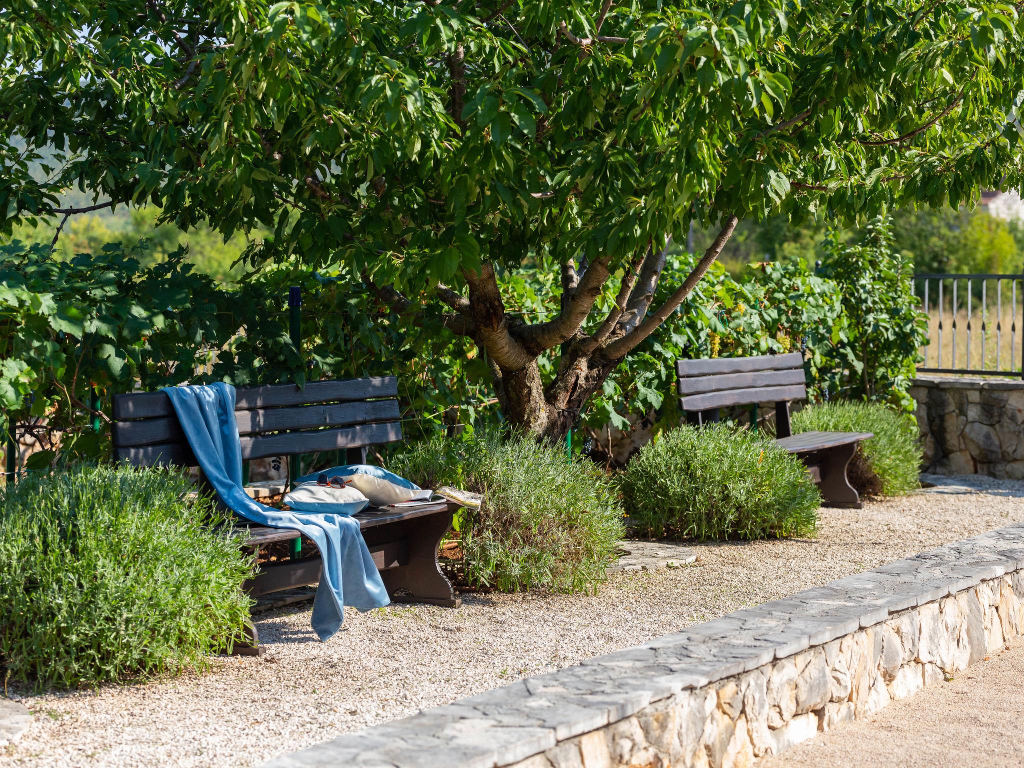 Child friendly single-family house "Villa Dalmatica moderna". In the hamlet Žuvani 13 km from the centre of Trogir, 24 km from the centre of Primošten, in a quiet, sunny position, 13 km from the sea. Private: property 1'600 m2 (fenced), well-kept garden, swimming pool heated (32 m2, depth 35 - 155 cm, seasonal availability: 02.May. - 26.Sep.) with internal staircase and salt-electrolysis pool-cleaning system. Unconventional pool shape. Shower/WC in the pool area, boules, terrace (10 m2), garden furniture, barbecue, children's playground (slide, swing, sandbox). In the house: internet access, sauna, central heating system, washing machine, tumble dryer. Parking (for 3 cars) at the house on the premises. Shop 13 km, restaurant 13 km, bus stop 750 m, pebble beach 13 km, public bathing area 13 km. Swimming pool with hydromassage and waterfall.