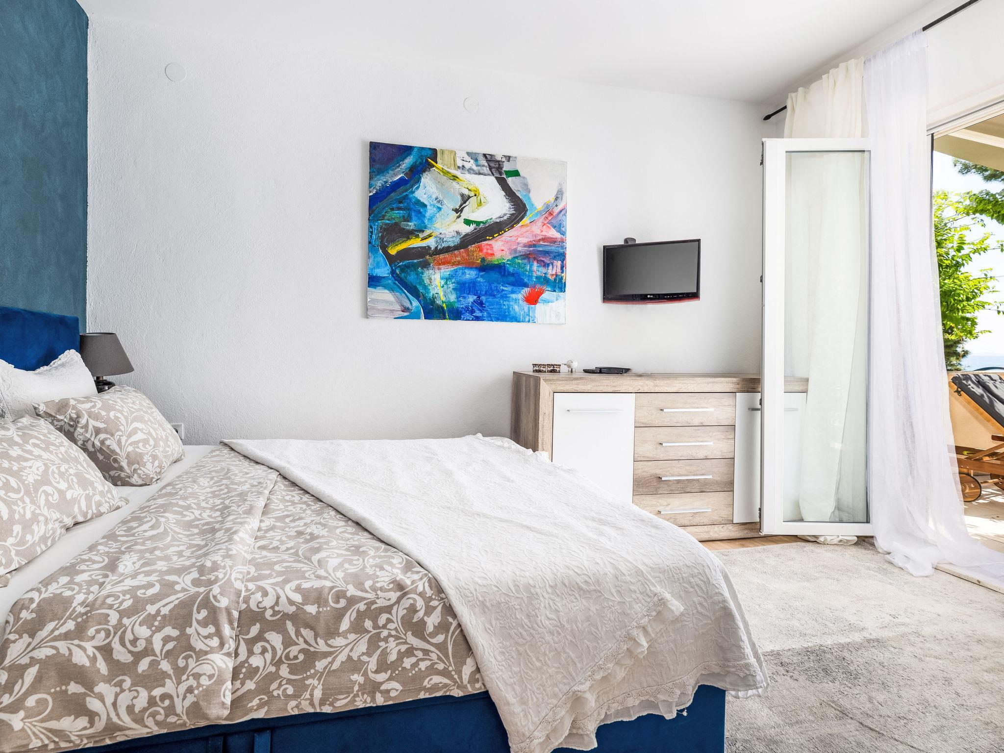 "Mali", 3-room apartment 55 m2, on the ground floor, south facing position. Living/dining room with satellite TV (flat screen), air conditioning. Exit to the terrace. 1 room with 1 french bed (160 cm, length 200 cm), TV. Exit to the terrace. 1 room with 2 beds (90 cm, length 200 cm). Open kitchen (oven, 2 ceramic glass hob hotplates, freezer, electric coffee machine). Shower/WC. No heating option. Terrace 35 m2, roofed. Terrace furniture. Beautiful view of the sea. Facilities: hair dryer. Internet (WiFi, free).