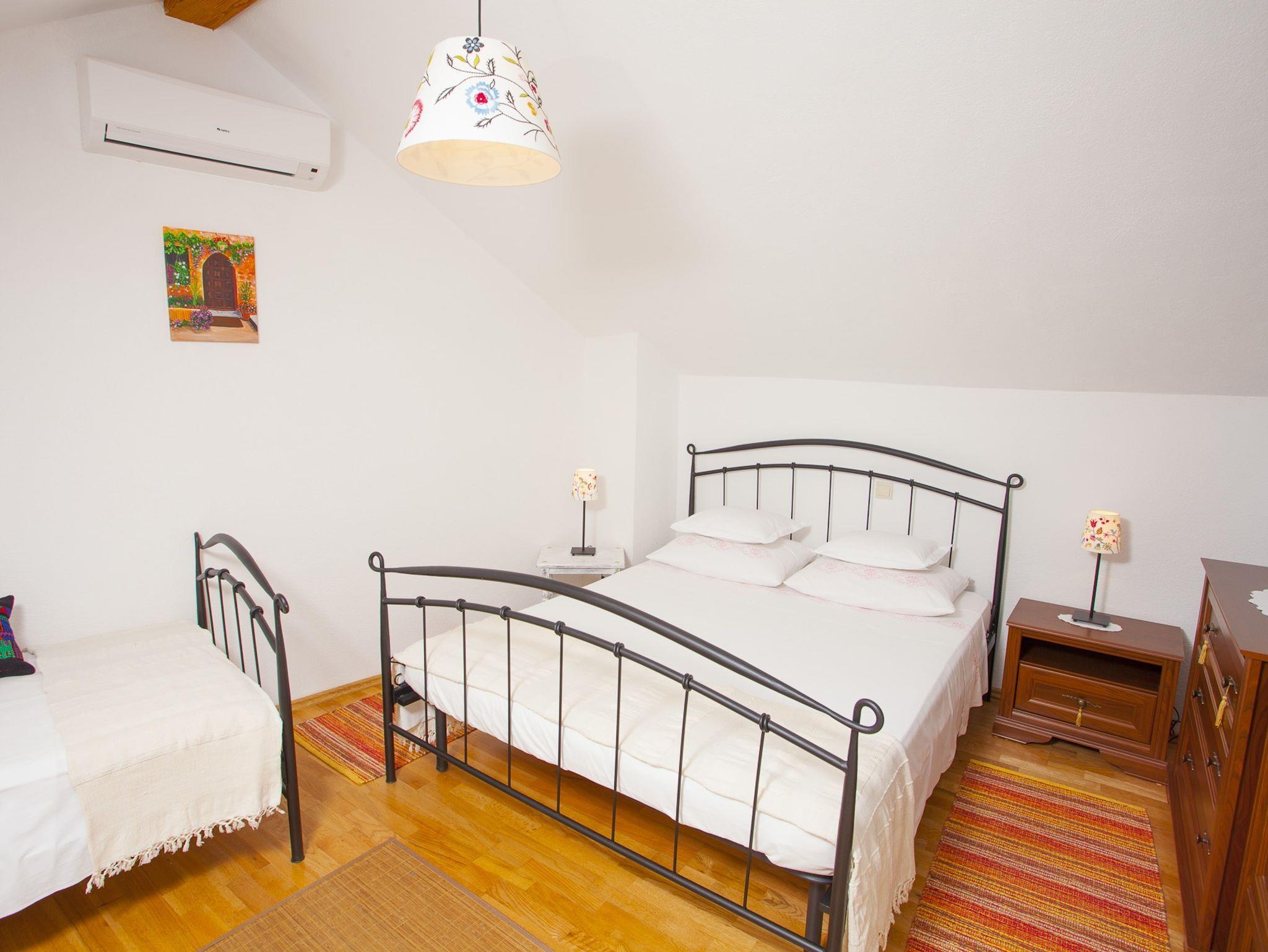 Haus bietet Platz für 6 Gäste. Die Betten sind in Schlafzimmern, die es 2 gibt, und in Esszimmer, innerhalb einer Gesamtfläche von 63m2, angeordnet. Die Gäste haben eine eigene Terrasse zur Verfügung, auf der sie in warmen Sommernächten genießen können. Das Haus bietet Meerblick. Für vollen Genuss und Entspannung gibt es einen privaten Grill für Gäste dieser Unterkunft. In der Unterkunftseinheit besteht die Möglichkeit des Mitbringens von Haustieren gegen Aufpreis. Unterkunftseinheit hat Räume, die von dem Rest der Einheit abgetrennt werden. IM PREIS INBEGRIFFEN: Kurtaxe, Endreinigung, Klimatisierung, Parkplatz, Internet, Bügeleisen, Bügelbrett, Föhn. VERBINDLICHE ZUSÄTZLICHE KOSTEN: Aufzahlung für Kurzaufenthalte (prozentualer Zuschlag pro Nächtigungsanzahl: 30% - 1, 20% - 2, 10% - 3). UNVERBINDLICHE ZUSÄTZLICHE KOSTEN: Haustiere (5,00 € pro Nacht). Die Verfügbarkeit zusätzlicher Dienstleistungen in Ihrem reservierten Termin und die Preise derselben (falls nicht aufgeführt) müssen im Voraus überprüft werden. Zusätzliche Dienstleistungen die in der Zahlungsaufforderung nicht aufgeführt sind werden direkt beim Vermieter bezahlt, angenommen der Gast nutzt auch diese. Ermäßigung auf den Grundpreis: Gratistag 14=13 (bei einem Aufenthalt von 14 Tagen oder mehr erhalten Sie einen Gratistag für den Aufenthalt bis 31.12.26).