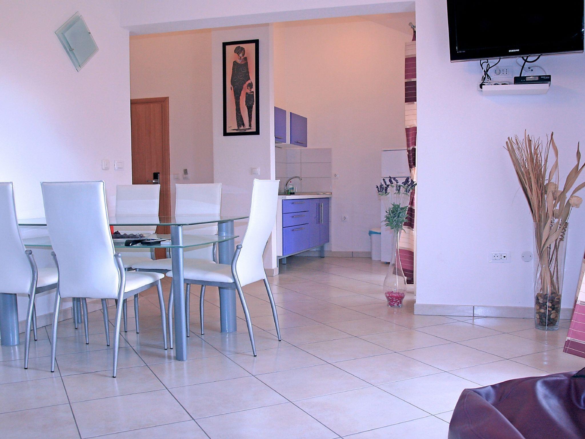 Ferienwohnung bietet Platz für 5 Gäste. Die Betten sind in Schlafzimmern, die es 1 gibt, und in Wohnzimmer, innerhalb einer Gesamtfläche von 40m2, angeordnet. Die Gäste haben eine eigene Terrasse zur Verfügung, auf der sie in warmen Sommernächten genießen können. Das Apartment bietet Meerblick. IM PREIS INBEGRIFFEN: Kurtaxe, Endreinigung, Klimatisierung, Parkplatz, Internet, Kinderbett, Föhn. VERBINDLICHE ZUSÄTZLICHE KOSTEN: Aufzahlung für Kurzaufenthalte (prozentualer Zuschlag pro Nächtigungsanzahl: 30% - 1, 20% - 2, 10% - 3). Die Verfügbarkeit zusätzlicher Dienstleistungen in Ihrem reservierten Termin und die Preise derselben (falls nicht aufgeführt) müssen im Voraus überprüft werden. Zusätzliche Dienstleistungen die in der Zahlungsaufforderung nicht aufgeführt sind werden direkt beim Vermieter bezahlt, angenommen der Gast nutzt auch diese.