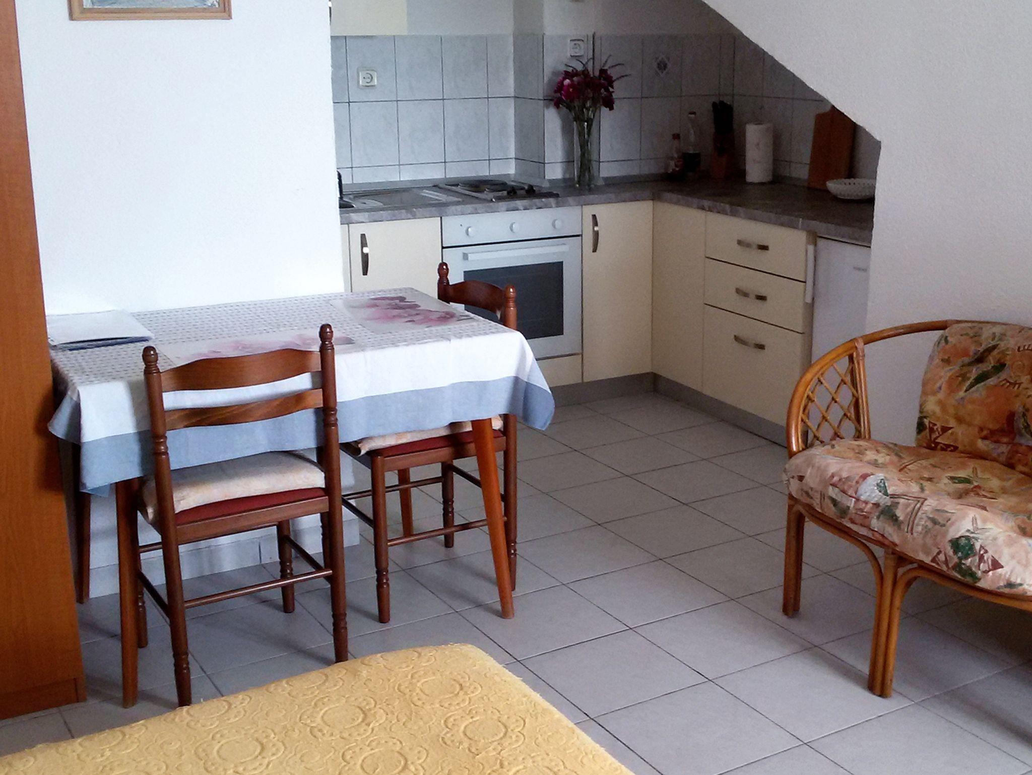 Studio bietet Platz für 2 Gäste. Die Betten sind in Schlafzimmern, die es 1 gibt, innerhalb einer Gesamtfläche von 22m2, angeordnet. Die Gäste haben eine eigene Terrasse zur Verfügung, auf der sie in warmen Sommernächten genießen können. Das Studio-Apartment bietet Meerblick. Es ist erlaubt, Speisen auf dem Gemeinschafts-Grill vorzubereiten. In der Unterkunftseinheit besteht die Möglichkeit des Mitbringens von Haustieren gegen Aufpreis. IM PREIS INBEGRIFFEN: Kurtaxe, Endreinigung, Klimatisierung, Parkplatz, Internet, Wäschewaschen, Bügeleisen, Föhn, Liegestühle. VERBINDLICHE ZUSÄTZLICHE KOSTEN: Aufzahlung für Kurzaufenthalte (prozentualer Zuschlag pro Nächtigungsanzahl: 30% - 1, 20% - 2, 10% - 3). UNVERBINDLICHE ZUSÄTZLICHE KOSTEN: Haustiere (5,00 € pro Nacht). Die Verfügbarkeit zusätzlicher Dienstleistungen in Ihrem reservierten Termin und die Preise derselben (falls nicht aufgeführt) müssen im Voraus überprüft werden. Zusätzliche Dienstleistungen die in der Zahlungsaufforderung nicht aufgeführt sind werden direkt beim Vermieter bezahlt, angenommen der Gast nutzt auch diese. Ermäßigung auf den Grundpreis: Gratistag 14=13 (bei einem Aufenthalt von 14 Tagen oder mehr erhalten Sie einen Gratistag für den Aufenthalt bis 31.12.26).