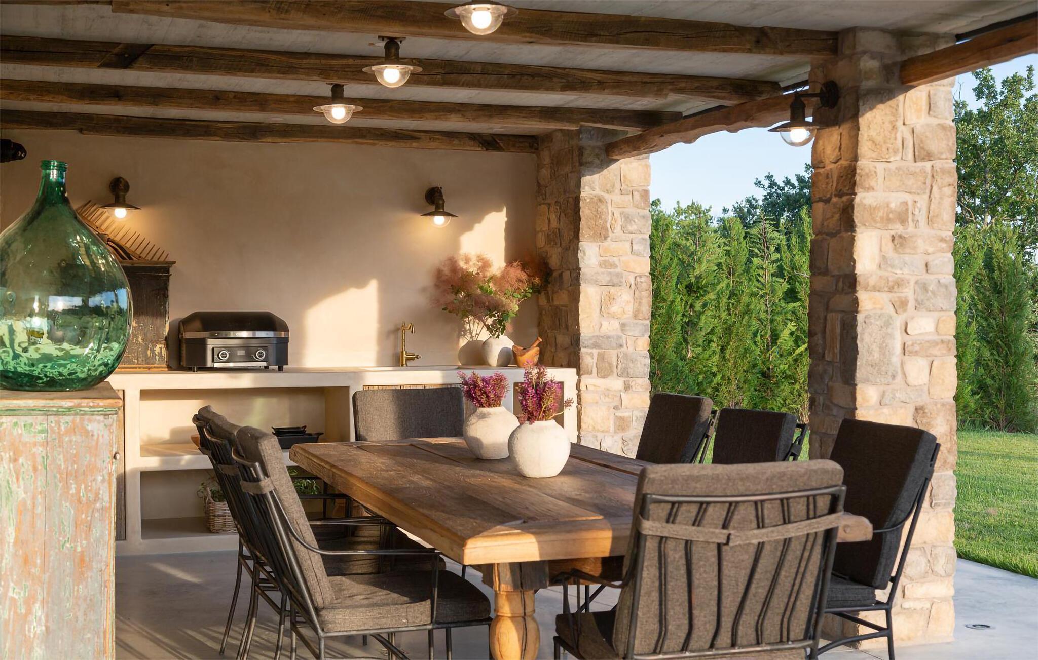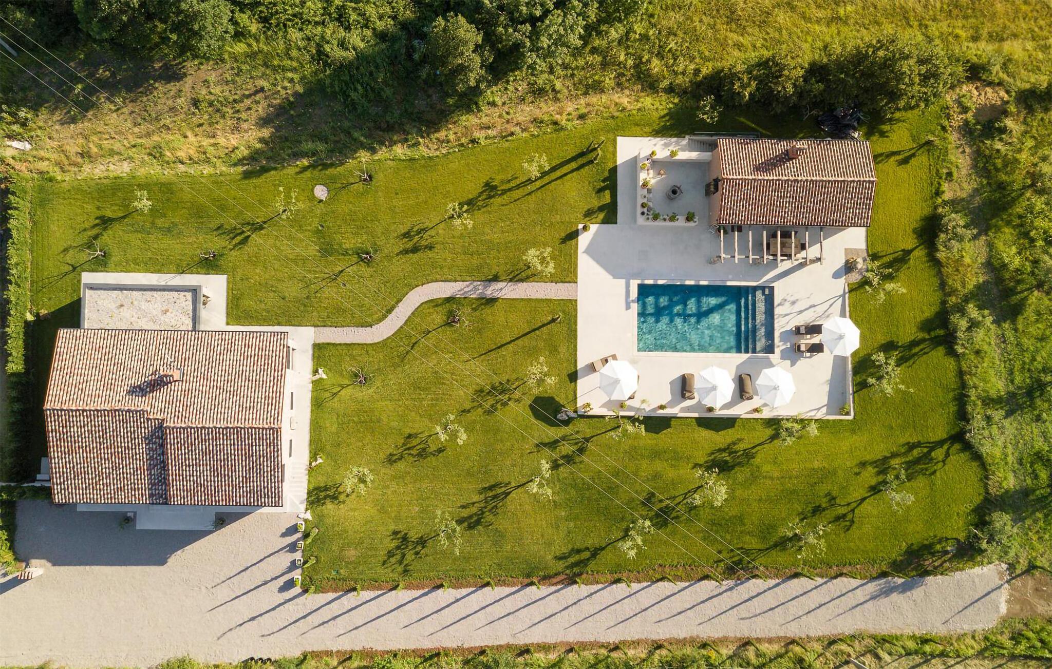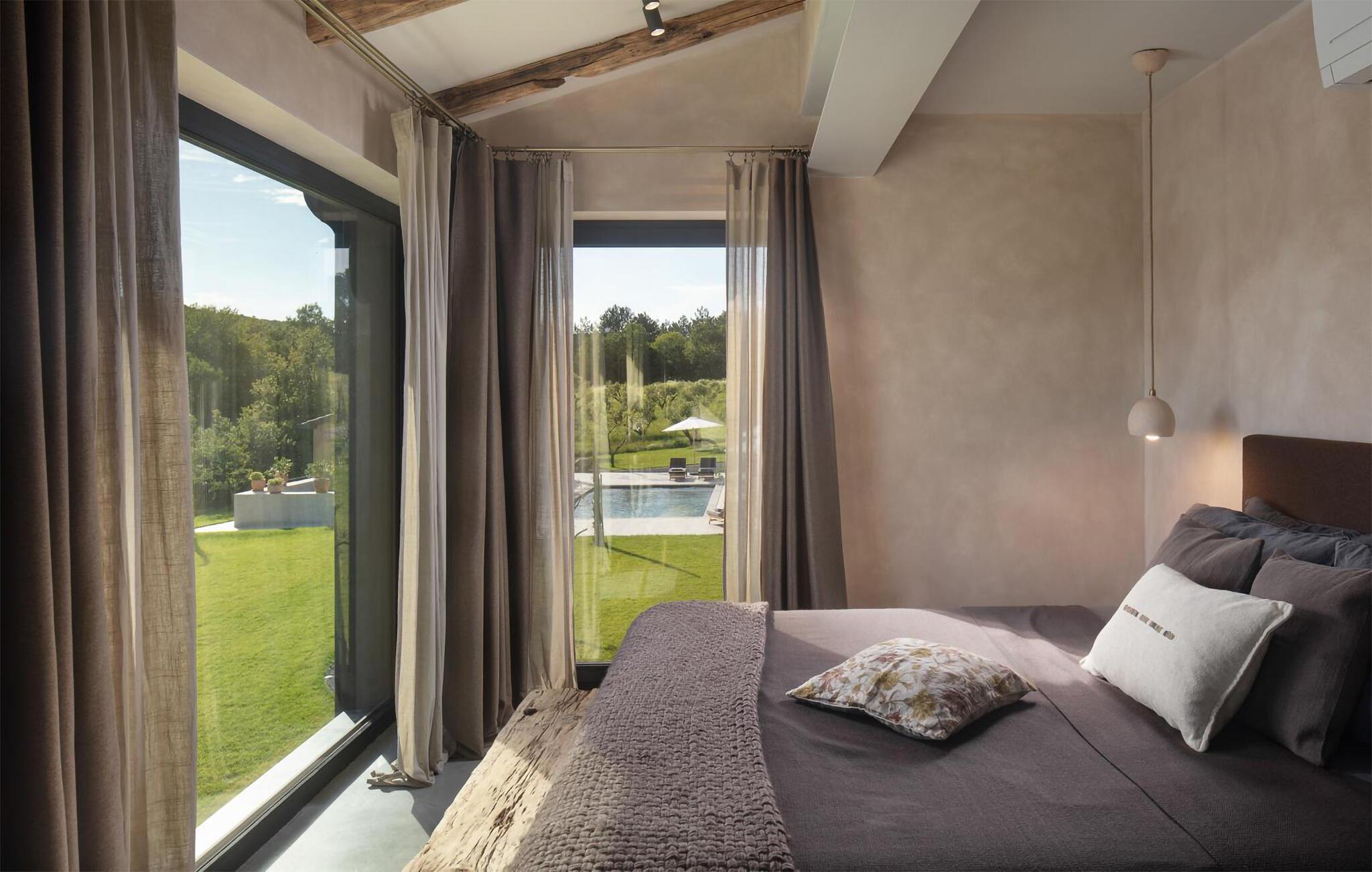 Den luksuriøse Villa Bagnoli tilbyr deg et unikt tilfluktssted omgitt av natur. Stil og komfort av høy kvalitet går her i perfekt symbiose, og skaper det perfekte miljøet for deg som ønsker å slappe av og koble av. Nyt panoramavinduene som går fra gulv til tak, der det vakre huset smelter sammen med den omkringliggende naturen og fyller rommene med naturlig lys. Villaen imponerer også med sin elegante møblering: en peis sørger for koselige kvelder, mens sittegruppen og balkongen inviterer deg til å nyte et glass vin. De allergivennlige møblene og badstuen avrunder velværeopplevelsen.
