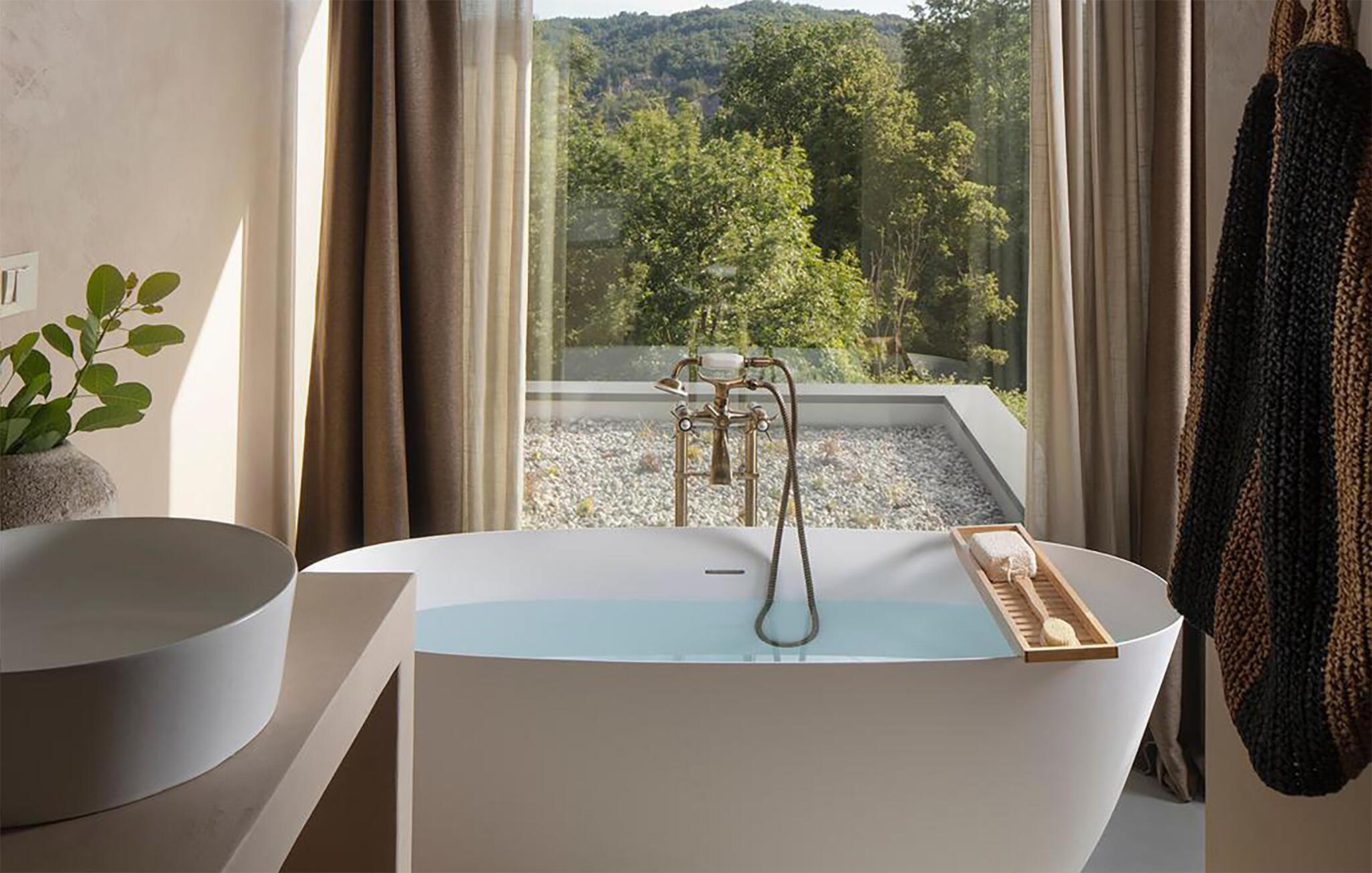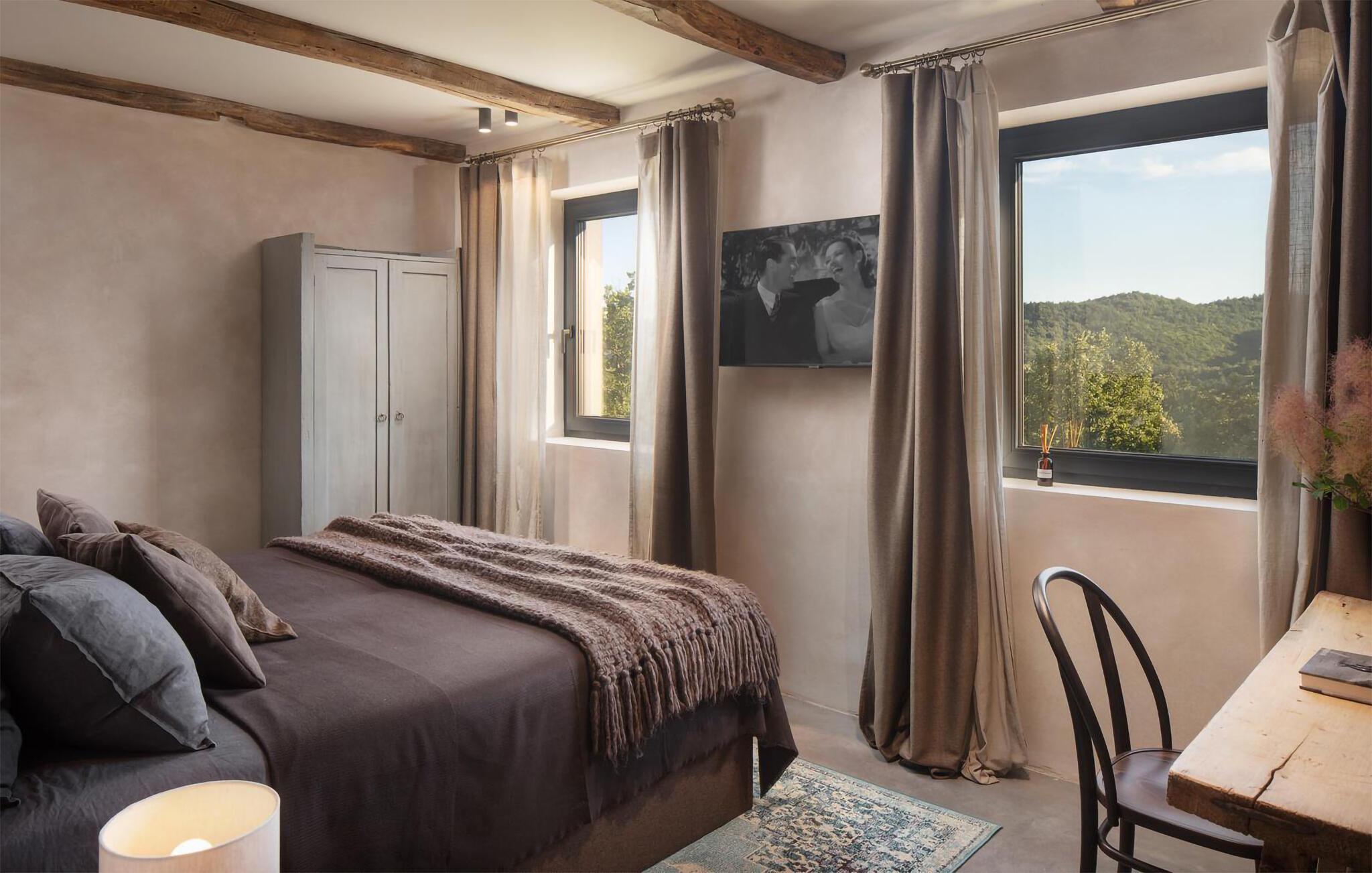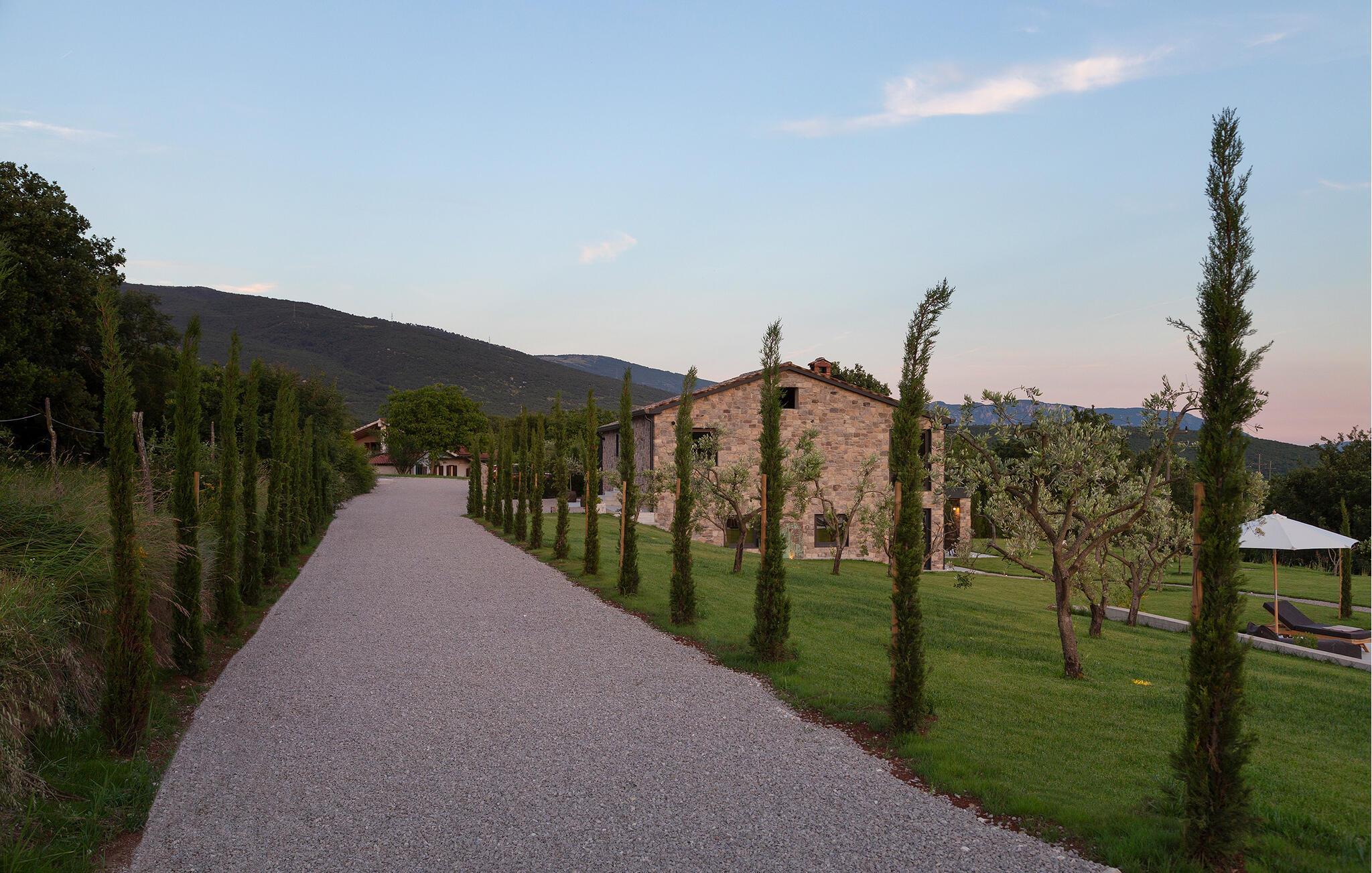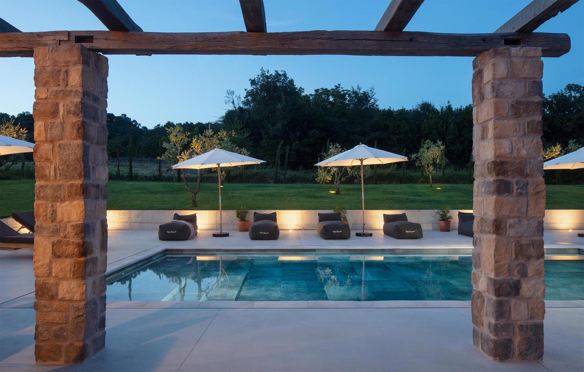 Den luksuriøse Villa Bagnoli tilbyr deg et unikt tilfluktssted omgitt av natur. Stil og komfort av høy kvalitet går her i perfekt symbiose, og skaper det perfekte miljøet for deg som ønsker å slappe av og koble av. Nyt panoramavinduene som går fra gulv til tak, der det vakre huset smelter sammen med den omkringliggende naturen og fyller rommene med naturlig lys. Villaen imponerer også med sin elegante møblering: en peis sørger for koselige kvelder, mens sittegruppen og balkongen inviterer deg til å nyte et glass vin. De allergivennlige møblene og badstuen avrunder velværeopplevelsen.