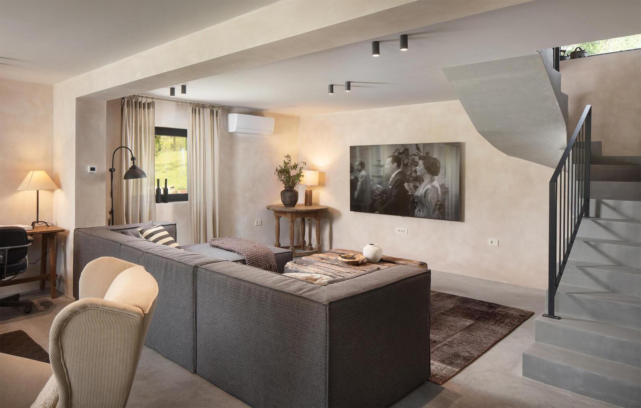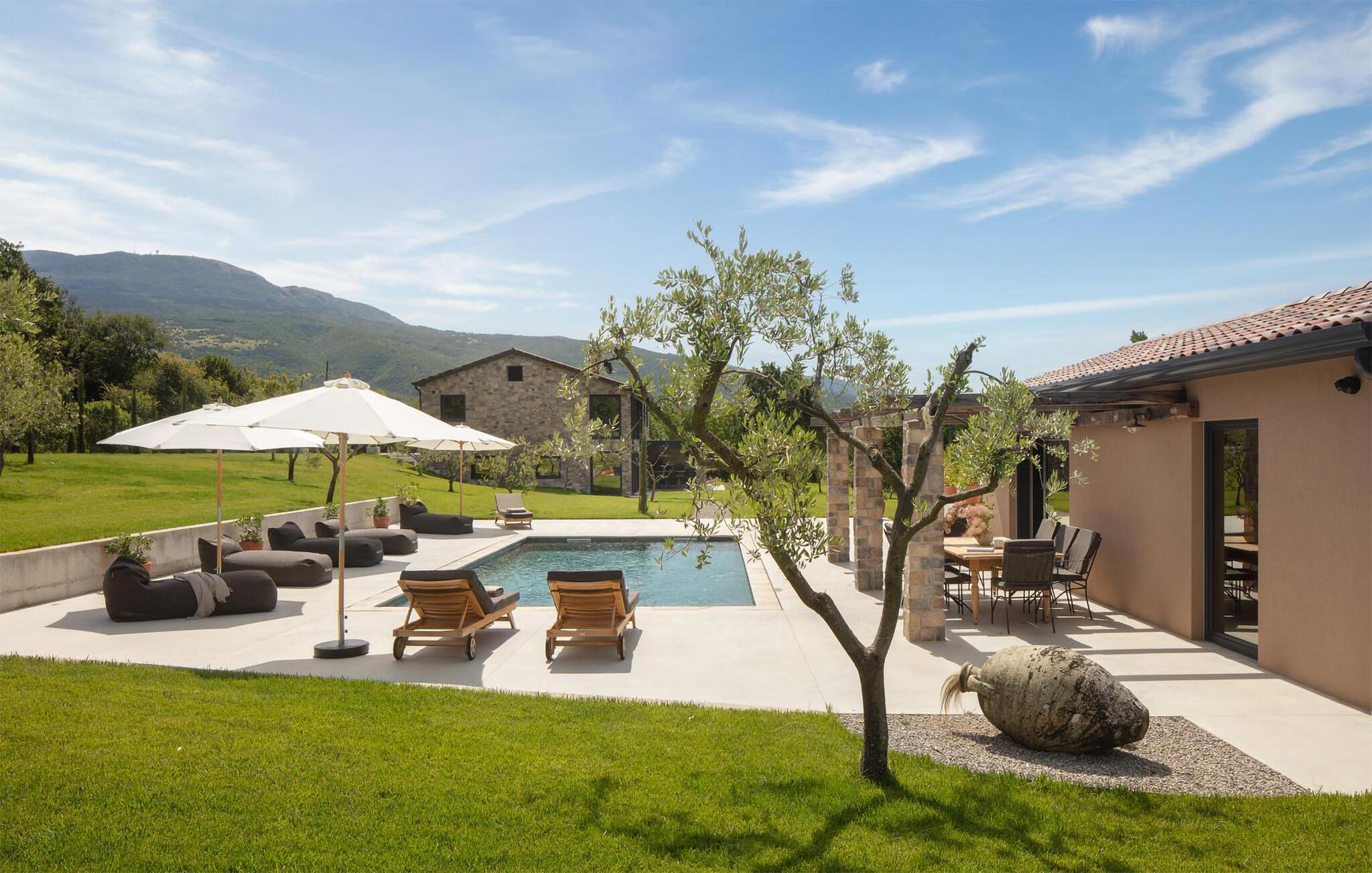 Med sitt private basseng og en terrasse med fantastisk fjellutsikt inviterer overnattingsstedet deg til å slappe av. I de varmere månedene kan du grille i hagen, mens utepeisen sørger for varme etter en dag med fotturer.