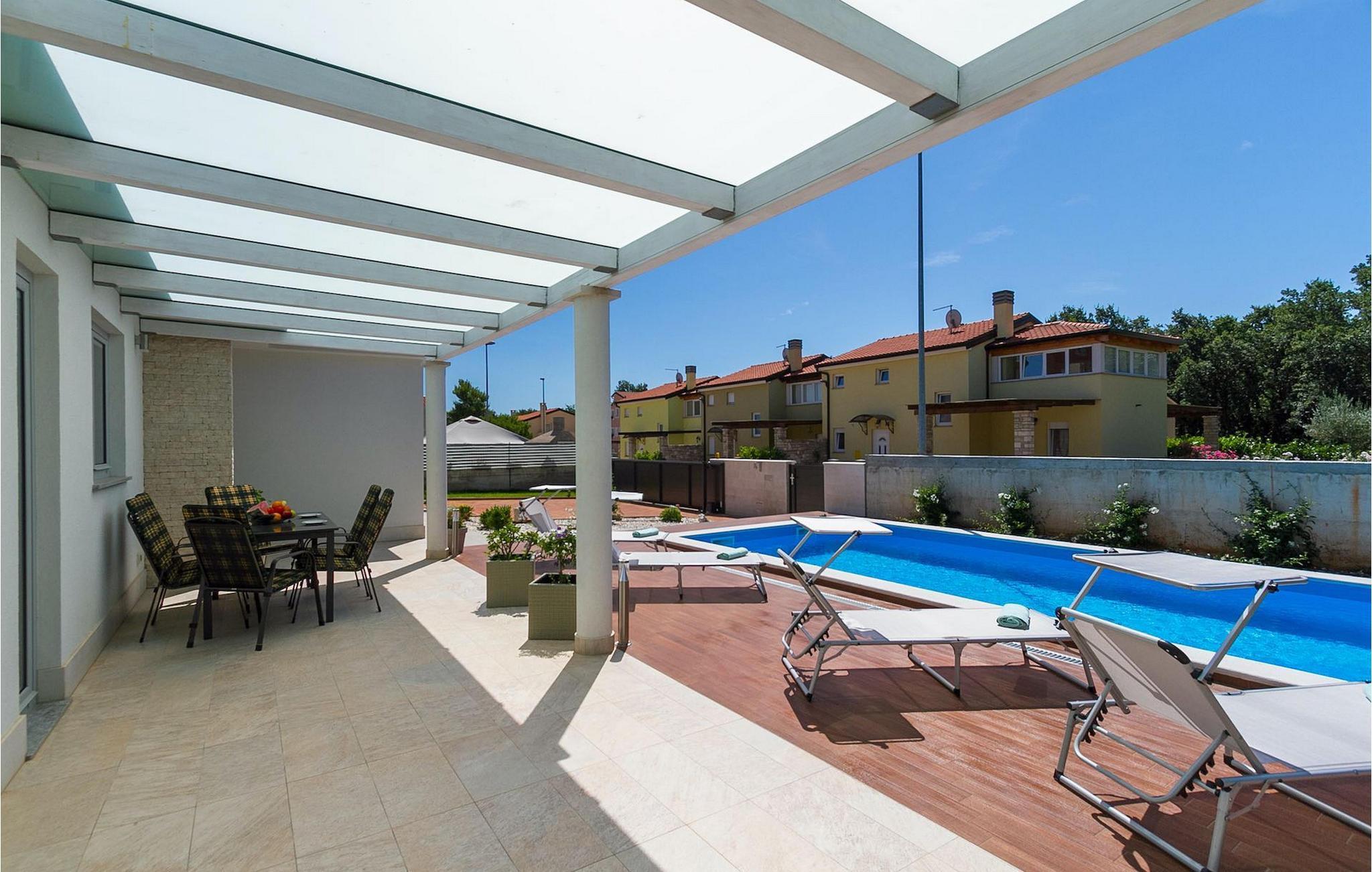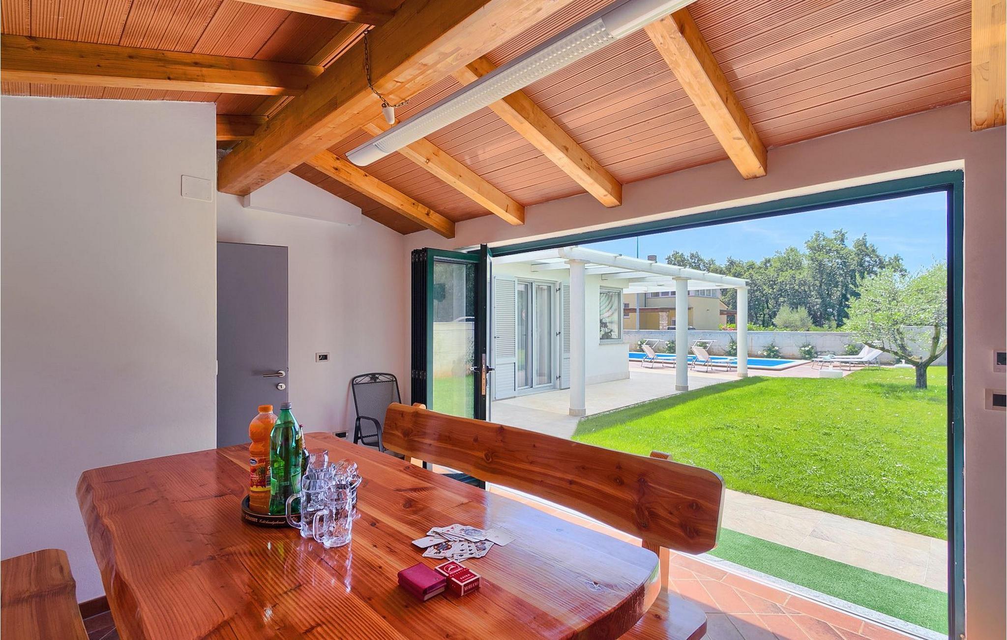 Den vakre familievillaen Paris ligger nær sjøen. Villaen har et areal på 176 m2, og her vil du føle deg som hjemme. Villaens første etasje har en åpen planløsning med et moderne og fullt utstyrt kjøkken, en spisestue og en komfortabel stue. I første etasje er det et soverom med dobbeltseng og eget bad. Alle rommene i første etasje har utgang til villaens vakkert utformede uteområde. I andre etasje er det ytterligere to soverom, begge med dobbeltseng og eget bad. Hagen er et ideelt sted å slappe av og nyte en sommerdag. Villaen har et fullt utstyrt sommerkjøkken hvor du kan tilberede måltider og grille sammen med familie og venner. Forfrisk deg på varme sommerdager ved det 28 m2 store bassenget. Denne vakre villaen er et ideelt valg for deg og din familie. Bestill denne fantastiske villaen og nyt din neste ferie i Istria.villa Paris ligger i den populære kystbyen Umag. Umag tilbyr et bredt utvalg av fritidsaktiviteter og turistfasiliteter, samt en liten havn. Du finner utmerkede restauranter, barer og kafeer i de vakre brosteinsbelagte gatene. Hvert år i juli arrangeres ATP Croatia Open, med mange av de største navnene fra herretennisverdenen. Det prisbelønte badelandet Istralandia ligger også like i nærheten, perfekt for en morsom dag i solen med hele familien. Det magiske landskapet i det sentrale Istria, som er kjent for sine fortryllende middelalderbyer på bakketopper og gastronomiske herligheter, er lett tilgjengelig langs gode veier.