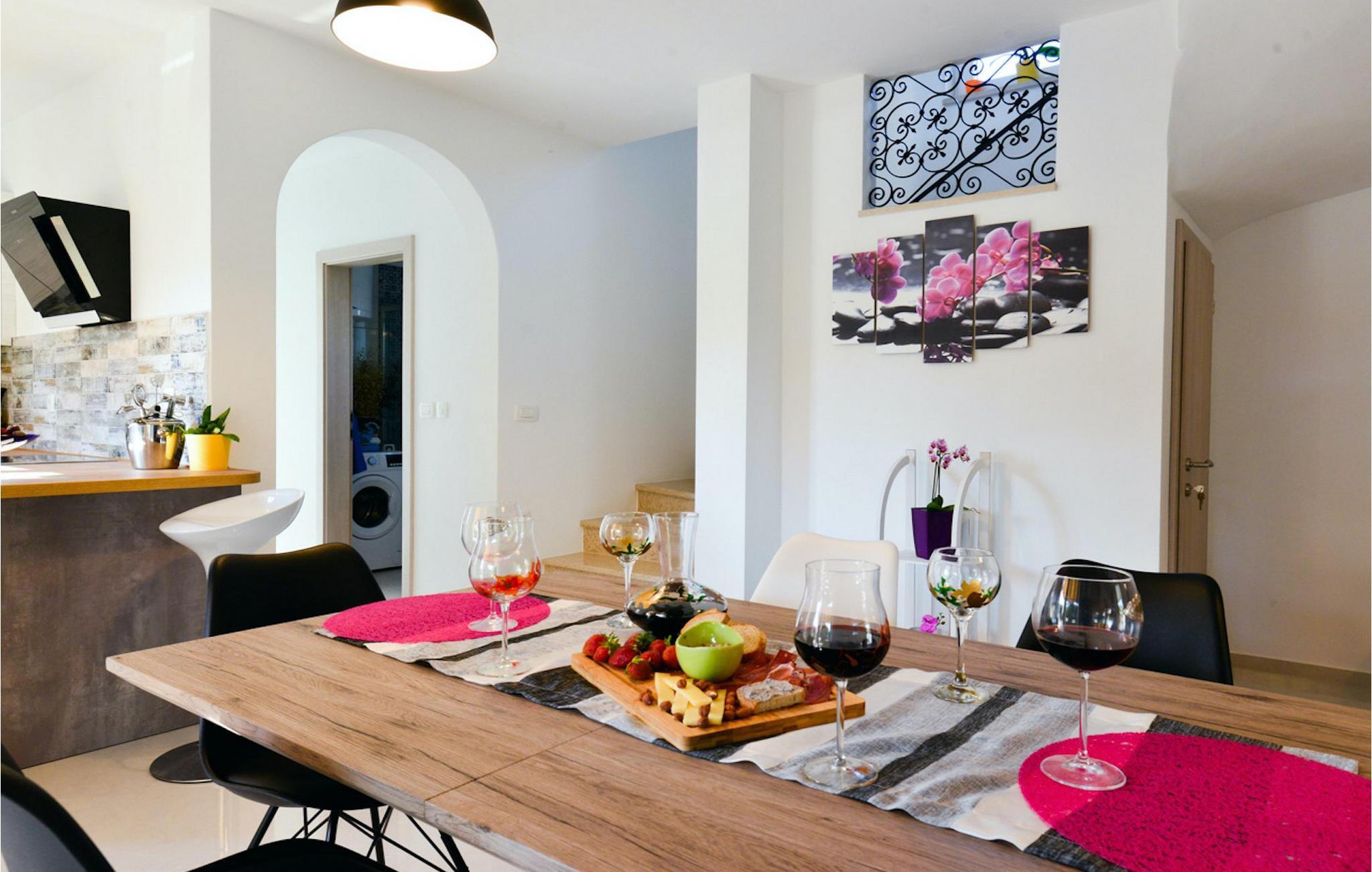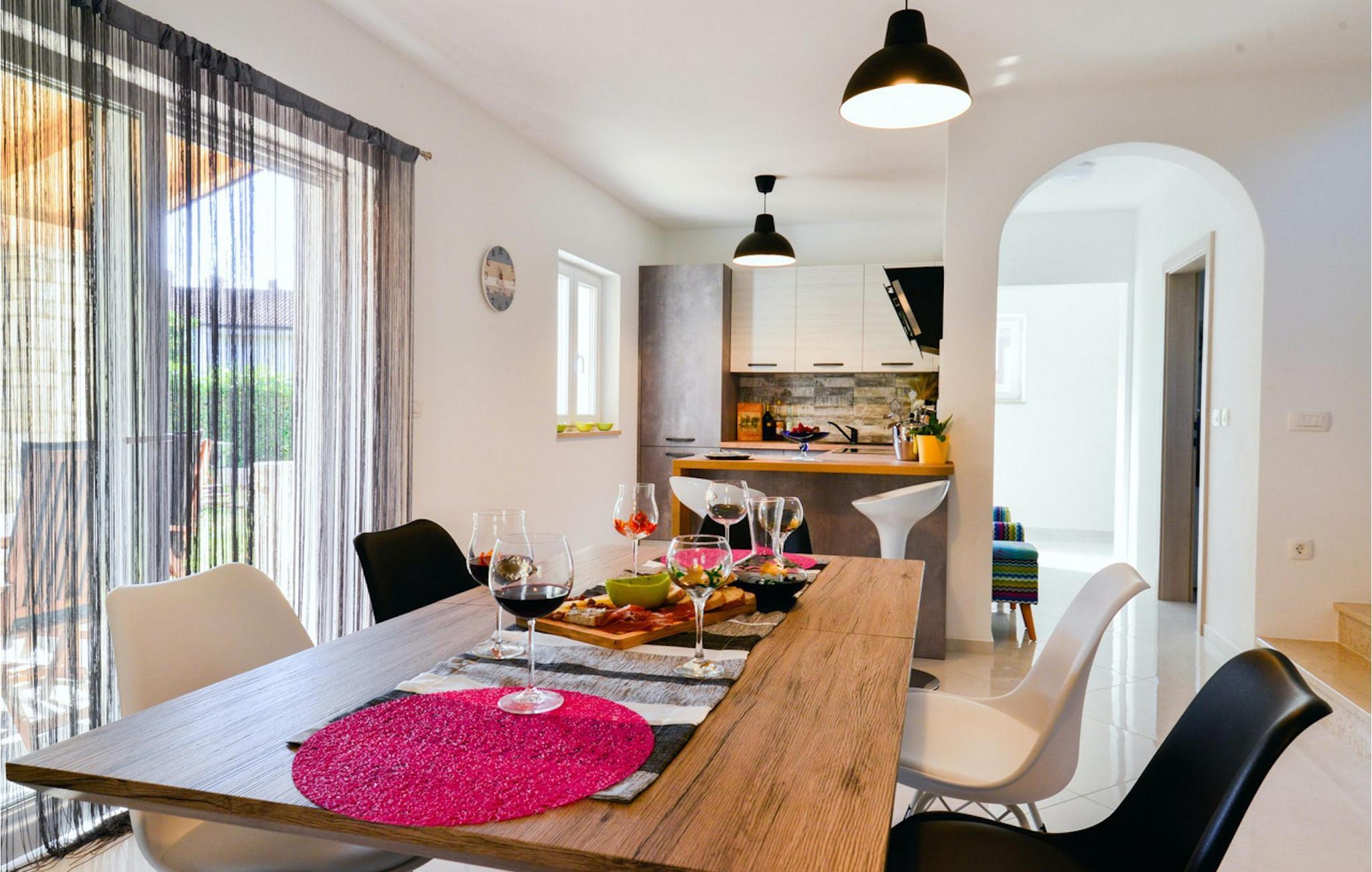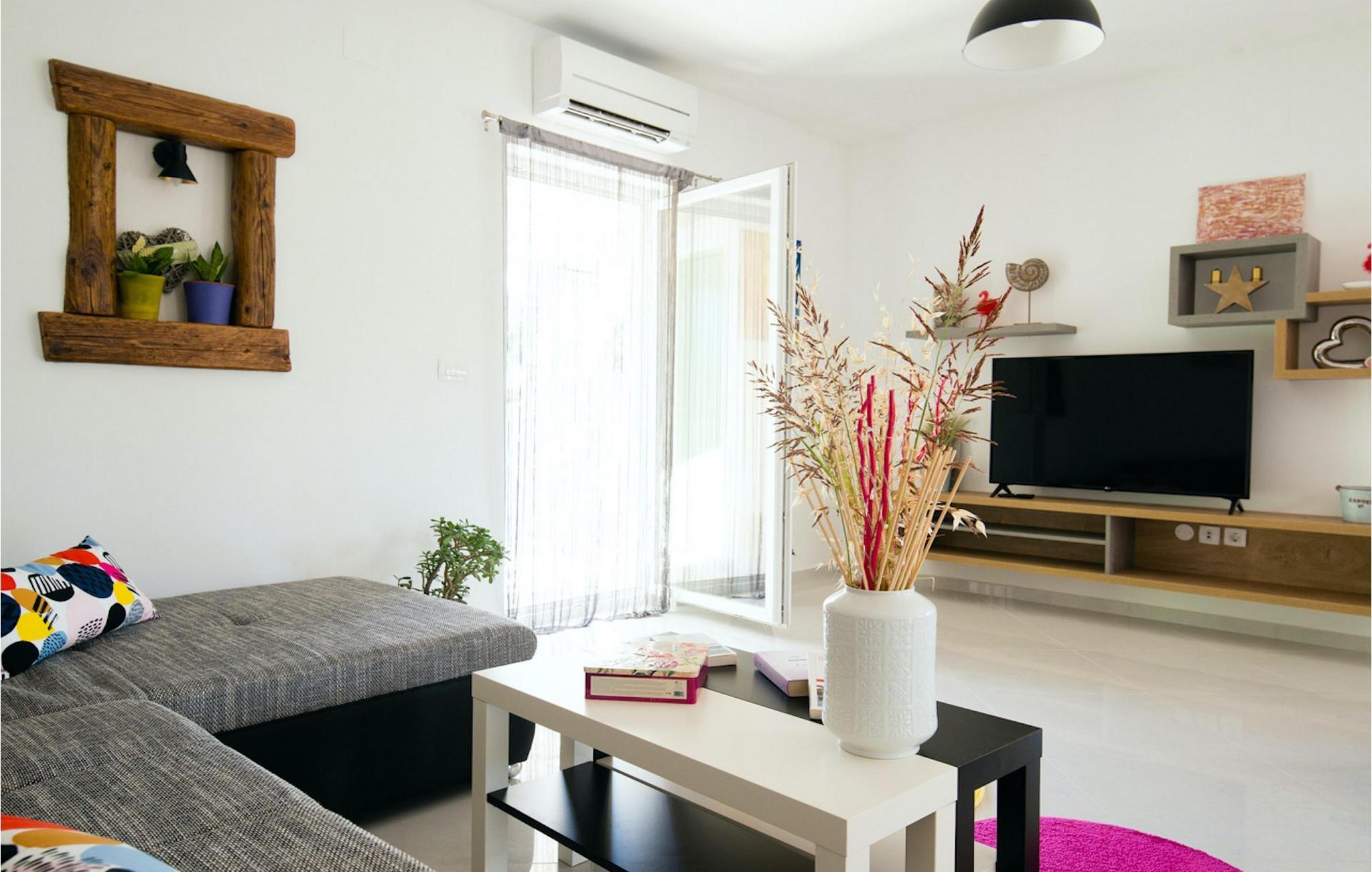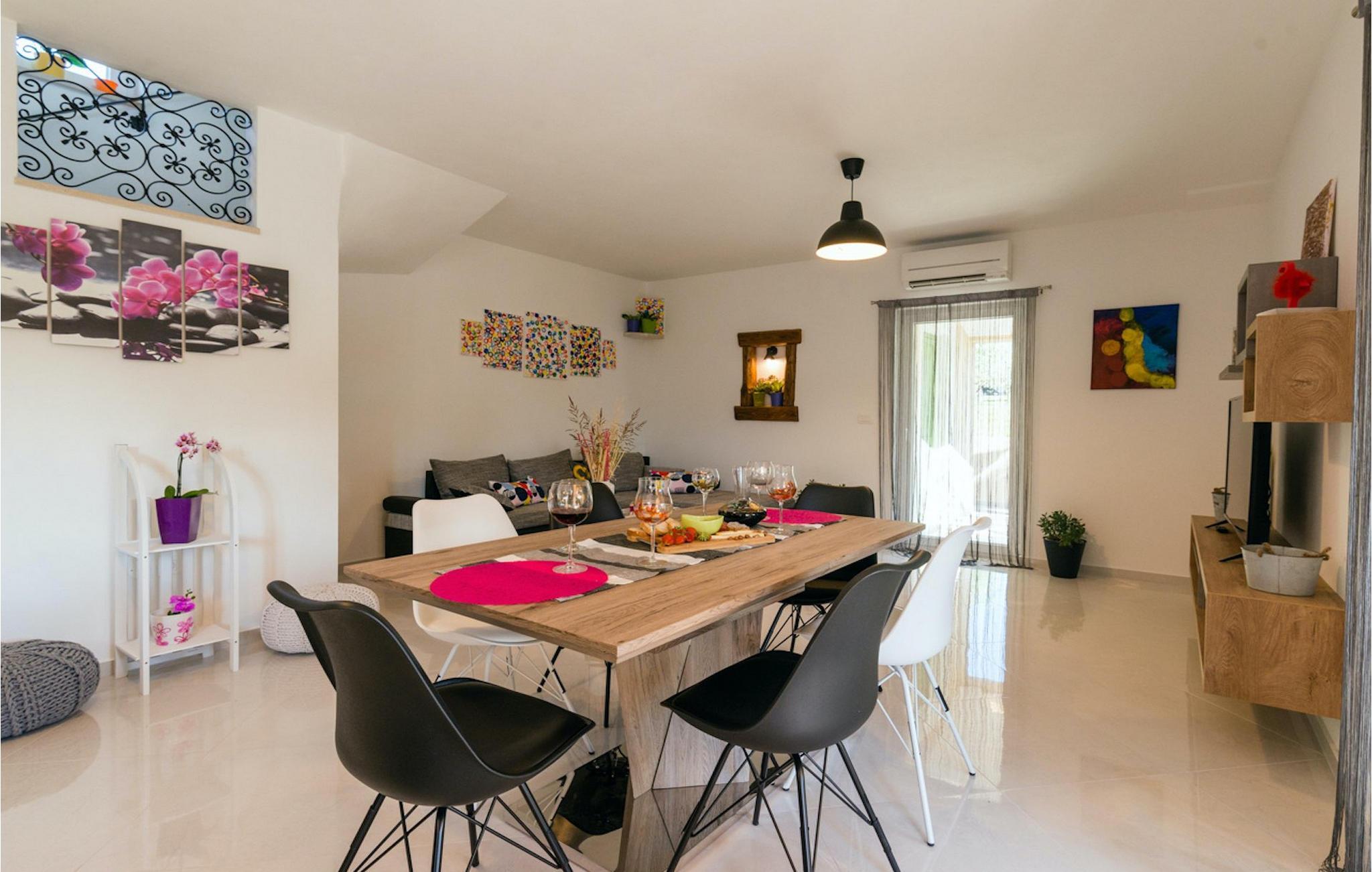 Villa Stella Juricani er et godt valg for en familieferie, men også for en ferie med venner. Villaen har 2 bad, 3 soverom og plass til totalt 6 gjester. I første etasje ligger kjøkkenet med stue, bad og en skyggefull uteservering. Spisebordet med stoler og utsikt over olivenlunden i nærheten av villaen er det beste stedet å samles med venner eller familie. Alle soverommene og et bad ligger i første etasje. To av soverommene har dobbeltsenger og ett soverom har to enkeltsenger. Det ene soverommet har en skyggefull balkong med utsikt over nabolaget. Alle rommene i villaen har klimaanlegg. Hele villaen er koselig innredet, noe som gjør den svært hjemmekoselig.