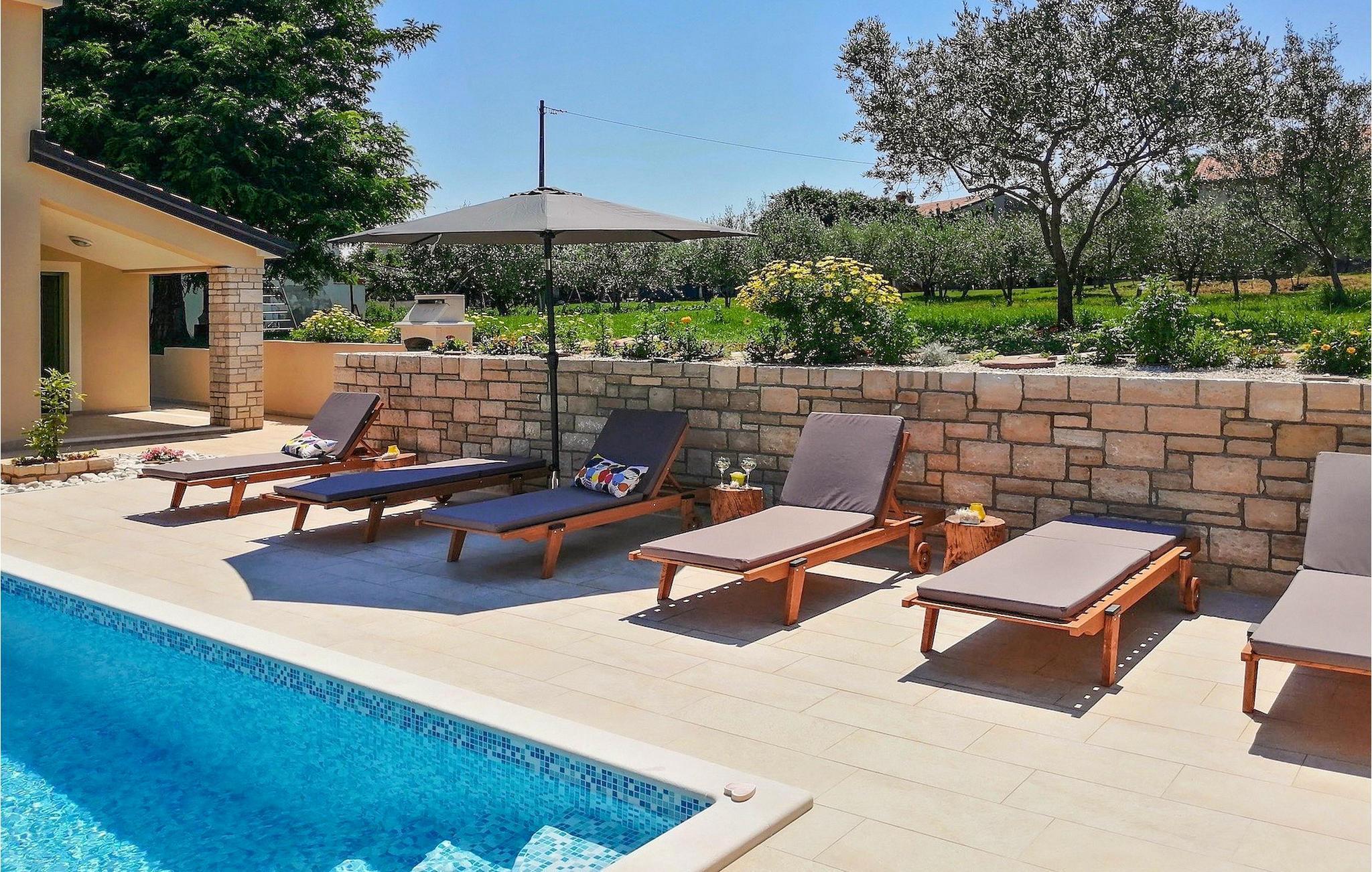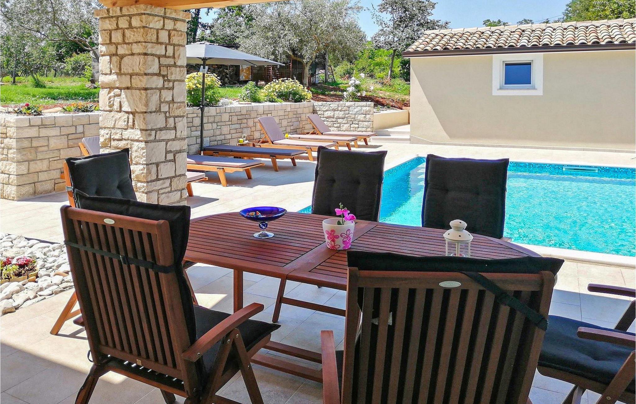 Villa Stella Juricani har et privat basseng og 6 solsenger hvor du kan slappe av etter en svømmetur. Det er også 2 parasoller på terrassen ved siden av solsengene, slik at du kan lene deg tilbake og nyte dagen mens du soler deg, lytter til musikk eller leser en bok. På terrassen er det en kullgrill hvor du kan tilberede et godt måltid for familie og venner. Villaen er omgitt av en typisk istrisk steinmur. Bak steinmuren ligger den store olivenlunden, slik at du kan nyte utsikten og ta en spasertur og utforske området.