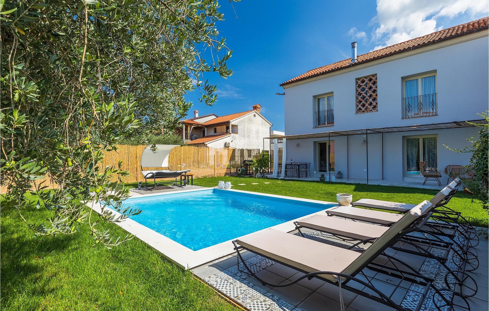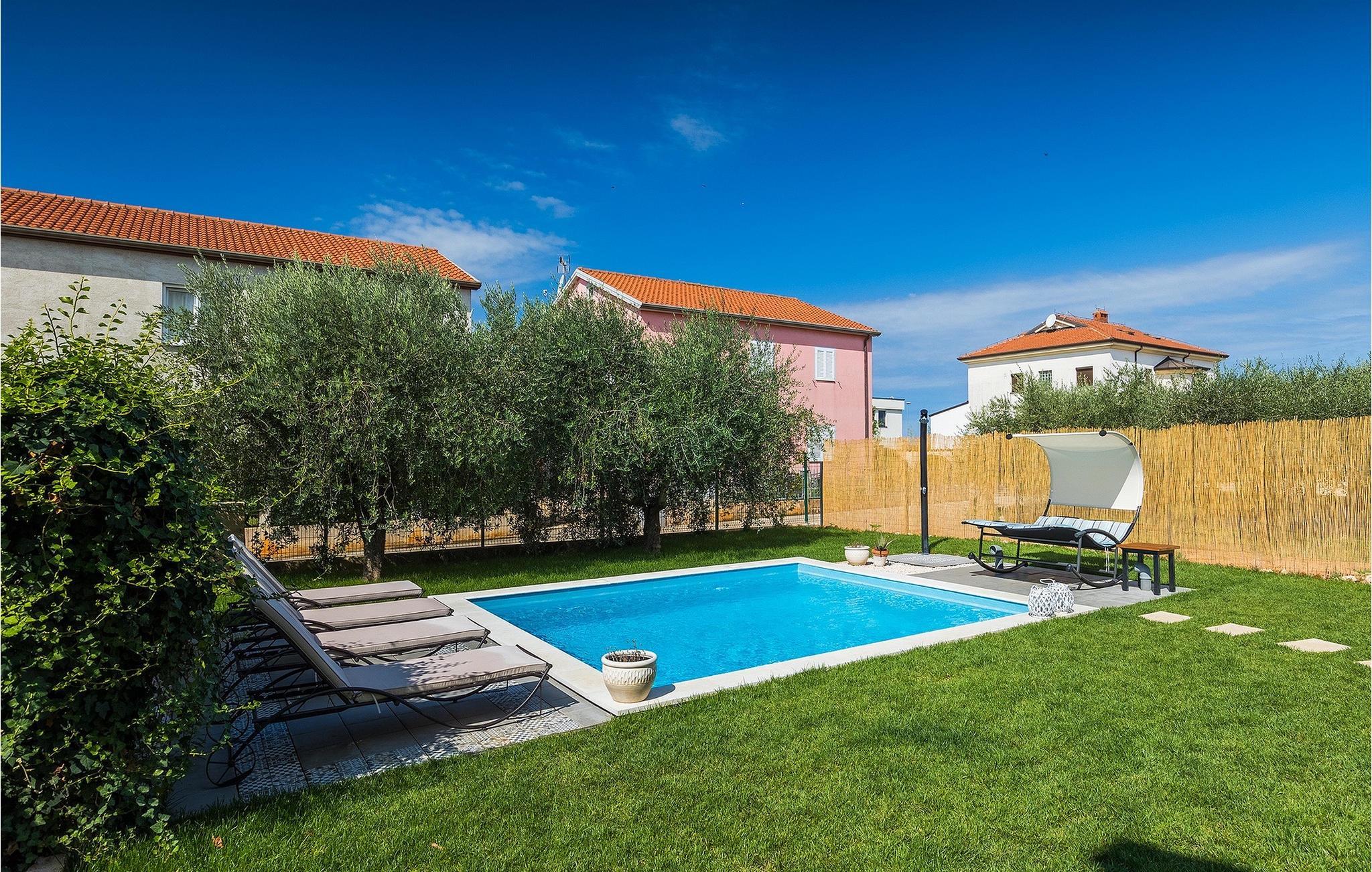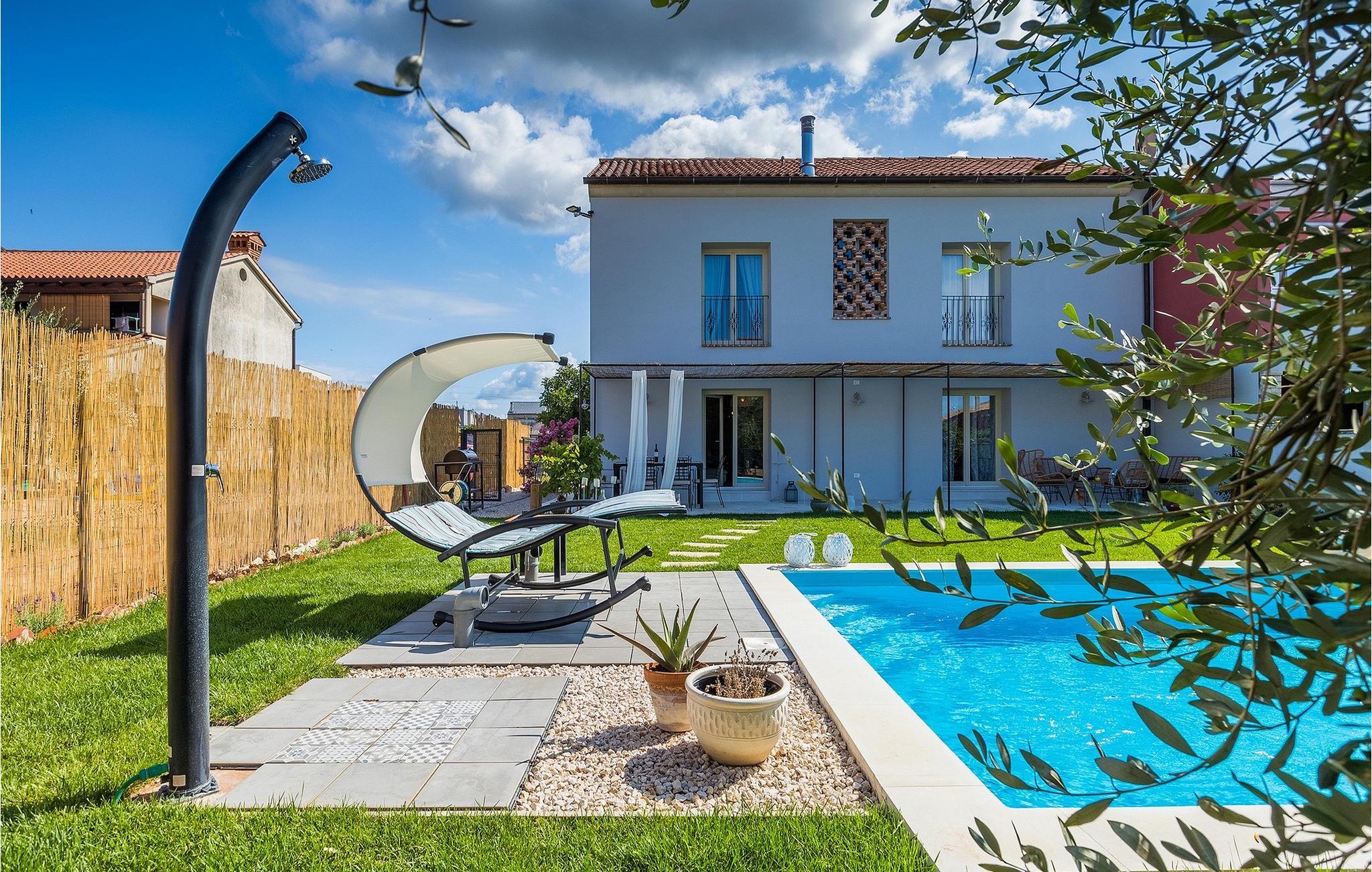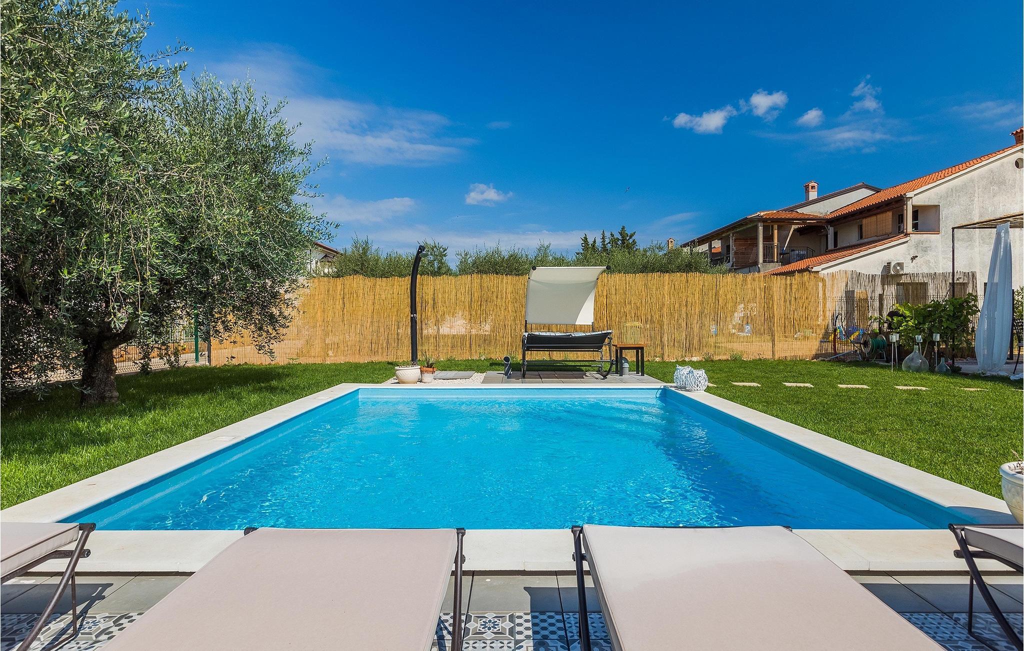 Villa Mediteranea er perfekt for deg som ønsker å tilbringe en rolig og avslappende ferie nær sjøen. Villaen har 3 soverom og har plass til opptil 8 personer. Det er et privat utendørsbasseng på den velholdte eiendommen, som inviterer deg til å kjøle deg ned på varme sommerdager. Slapp av på solsengene rundt bassenget. En kullgrill står til din disposisjon for å tilberede deilige måltider. Villaens første etasje består av en spisestue, et fullt utstyrt kjøkken med utgang til terrassen, et soverom med utgang til terrassen og hagen og et bad. Terrassen er det perfekte stedet å nyte morgenkaffen. I første etasje er det to komfortable soverom med hvert sitt bad. Privat parkering for opptil 2 biler er også tilgjengelig. Bestill Villa Mediteranea og oppdag Istrias skjønnhet! Villa Mediteranea ligger bare noen få minutters kjøring fra den berømte byen Umag. Umag og omegn er kjent for sin produksjon av vin og olivenolje. På kysten av Umag finner du et bredt utvalg av fritidsaktiviteter, turistfasiliteter og en liten havn. I de sjarmerende brosteinsbelagte gatene i byen finner du utmerkede restauranter, barer og kafeer. I dag er Umag mest kjent for sin sport: Hvert år i juli arrangeres ATP Croatia Open med mange store navn fra herretennisverdenen. I nærheten av byen ligger det prisbelønte badelandet Istralandia - ideelt for en dag med moro for hele familien. I tillegg til sportsaktiviteter må du ikke gå glipp av det indre Istria, som er kjent for sin utmerkede gastronomi, og de mange små bakketoppbyene med unik utsikt over Mirna-elvedalen. Kystbyer som Pula med sitt berømte romerske amfiteater, Rovinj med sine fargerike hus og trange gater og Pore med den Unesco-vernede Eufrasius-basilikaen er også verdt et besøk!